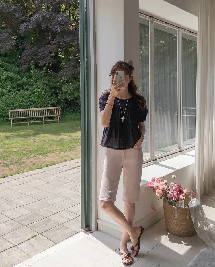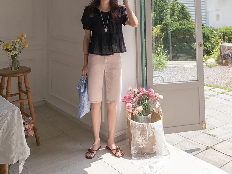 打造纖細腿部線條下擺側開衩粉色五分修身短褲
