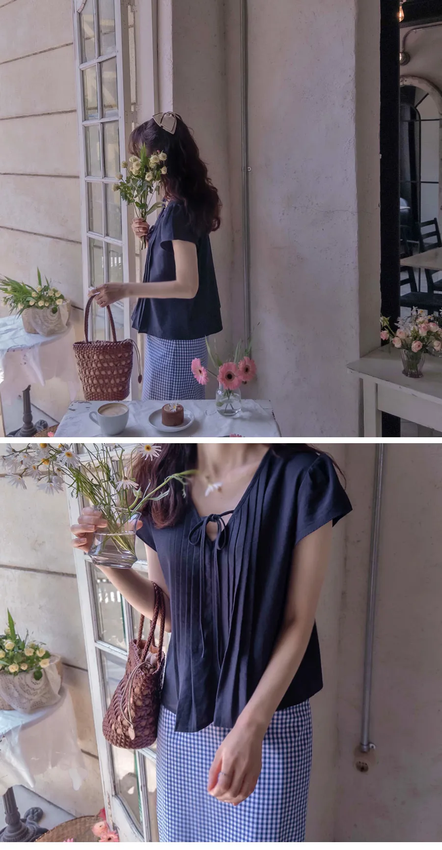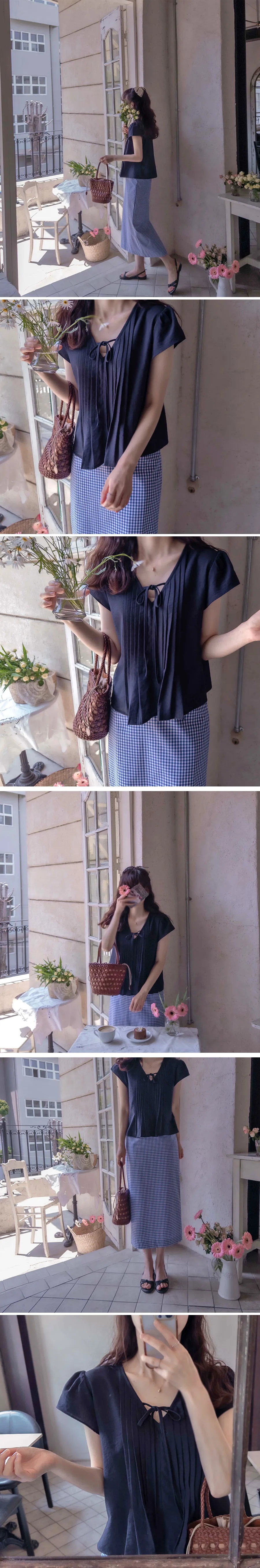 優雅輪廓後開衩修身格紋中長裙