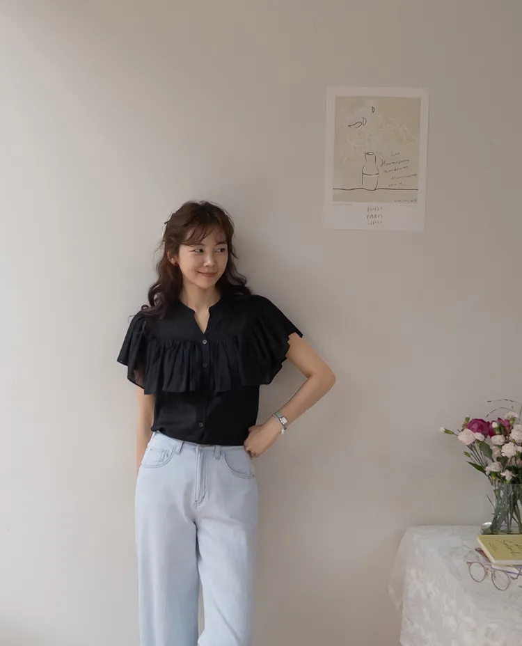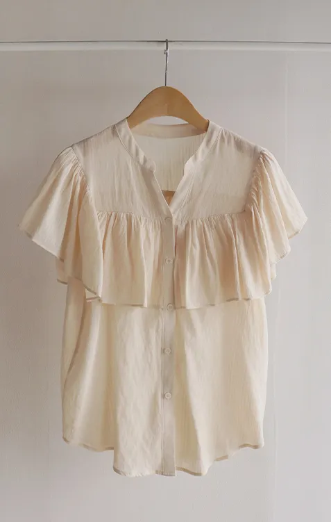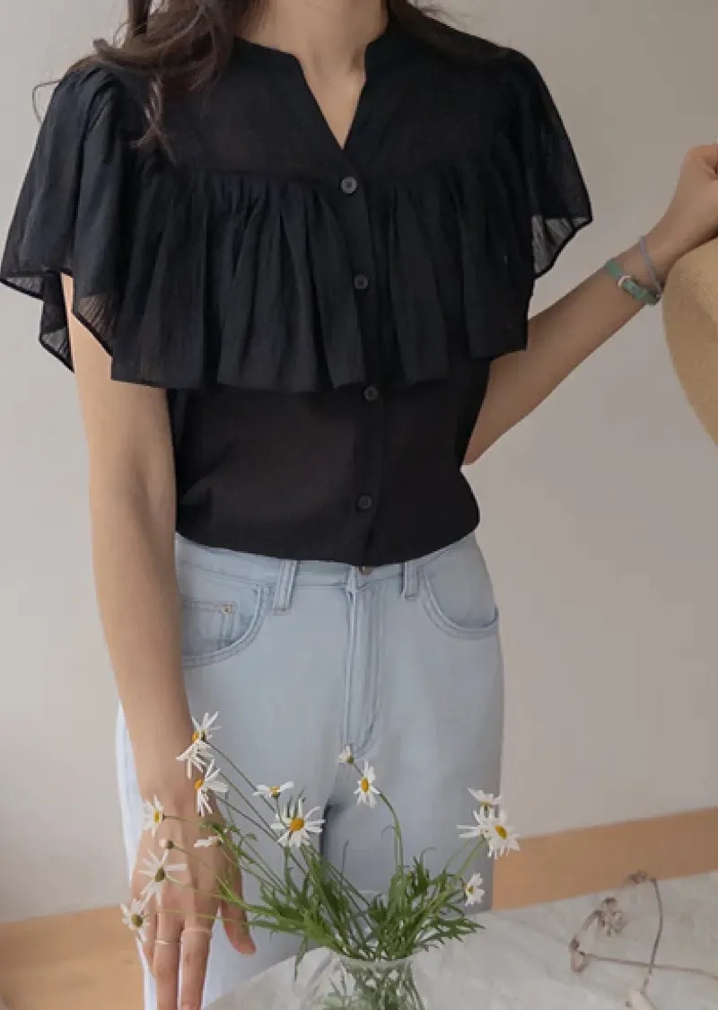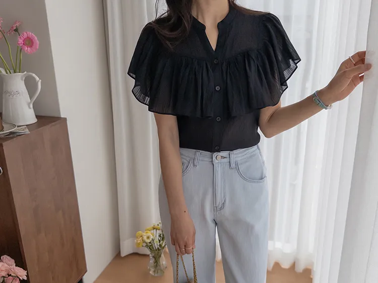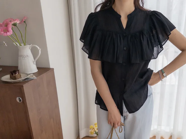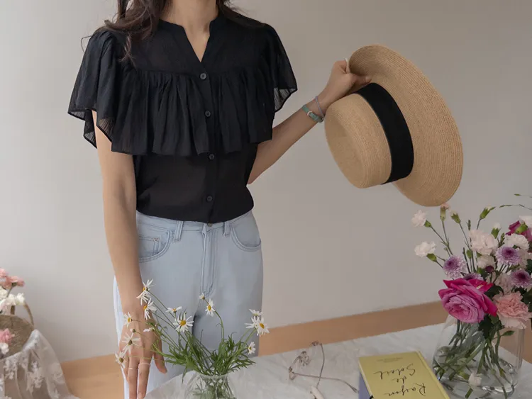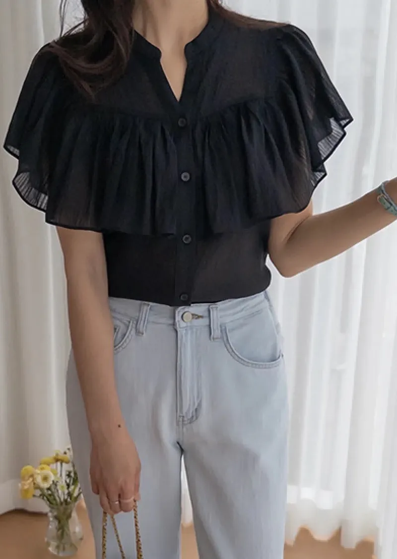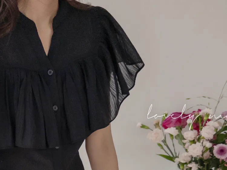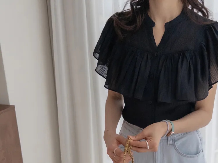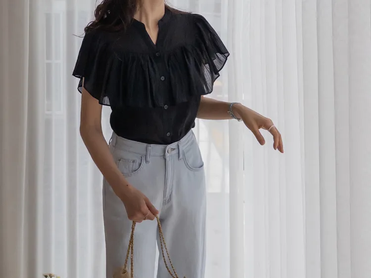 漂亮飄逸摺邊柔美排扣上衣