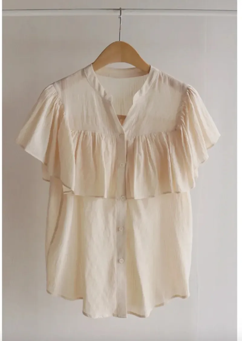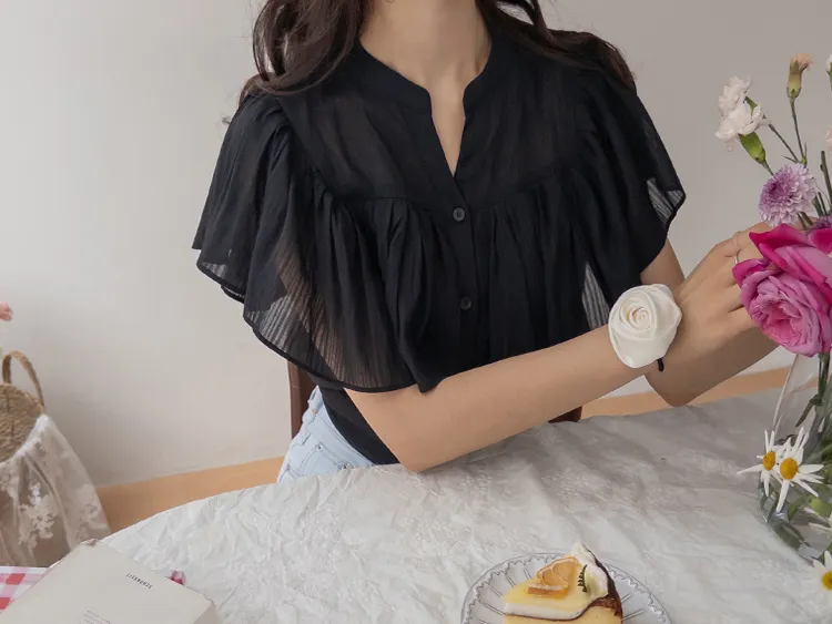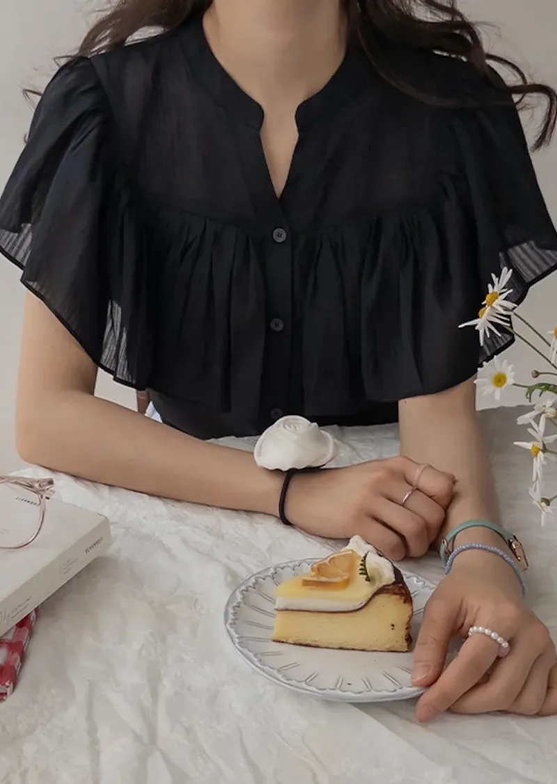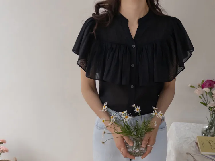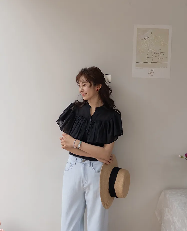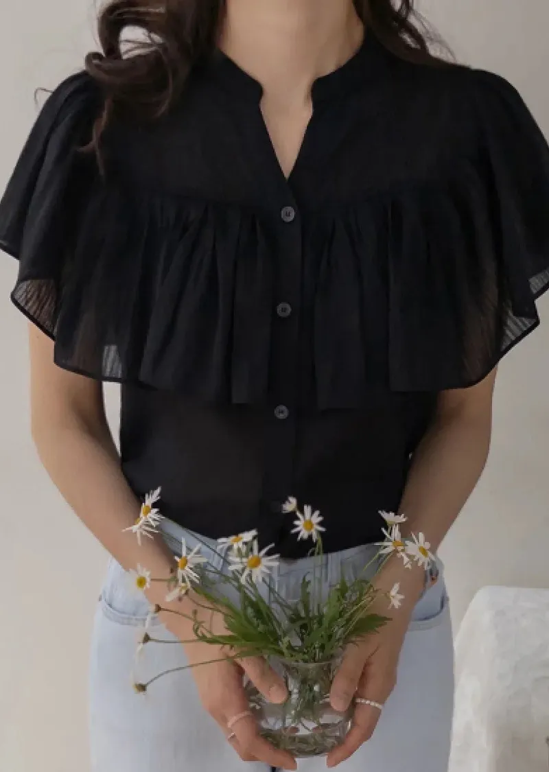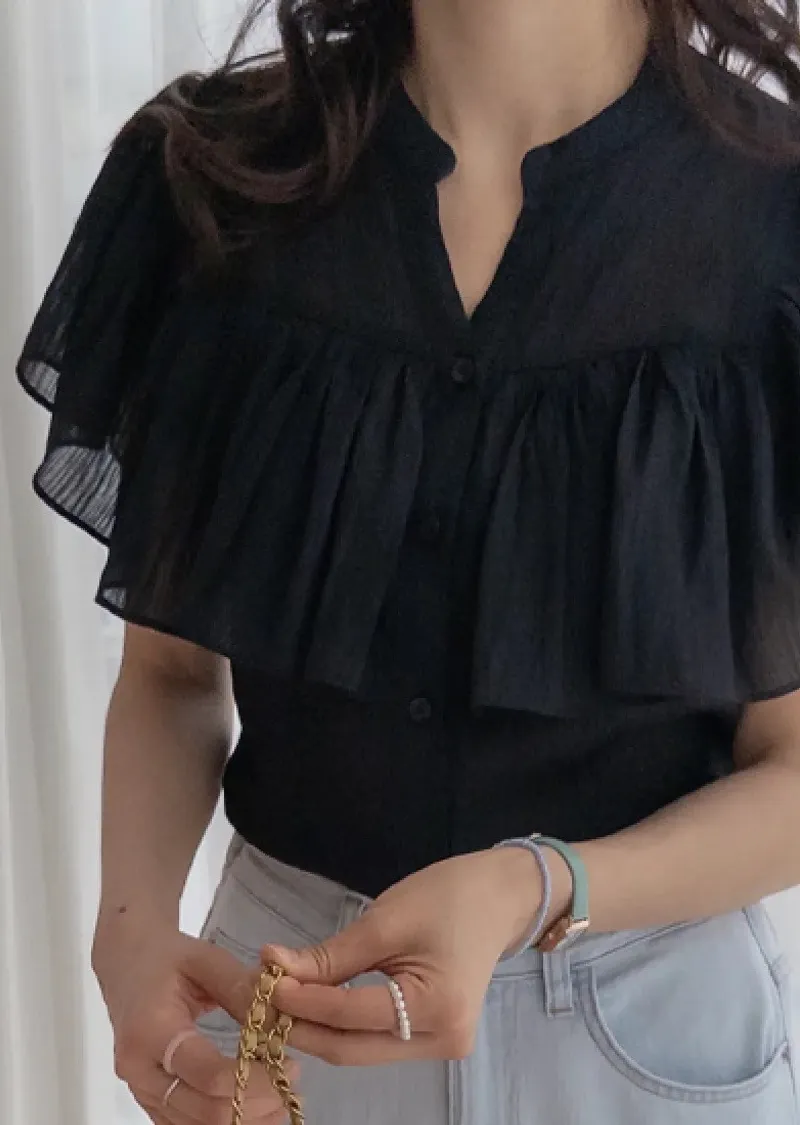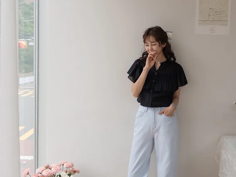 漂亮飄逸摺邊柔美排扣上衣