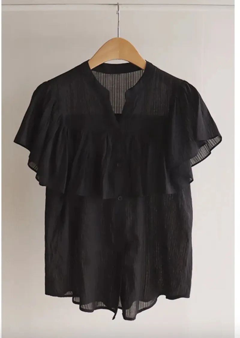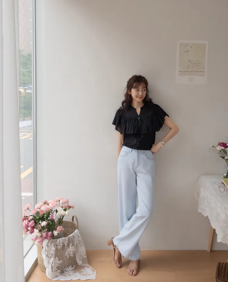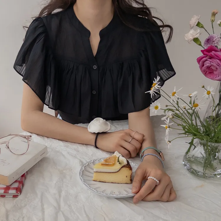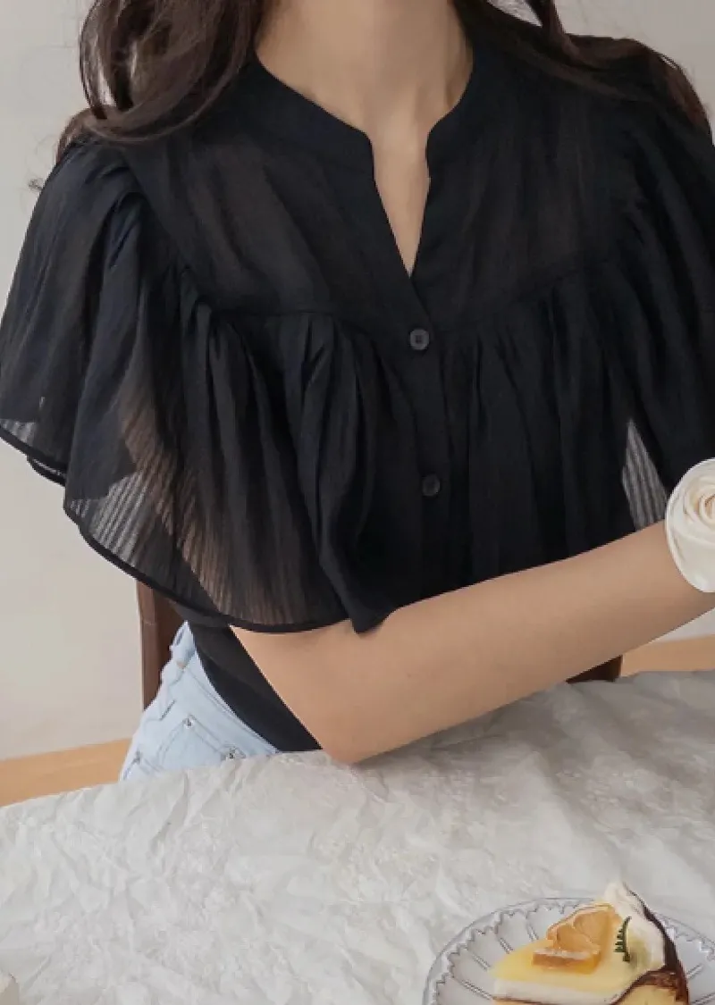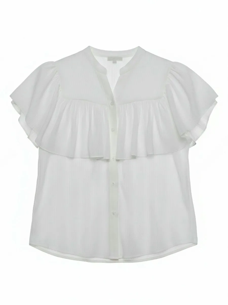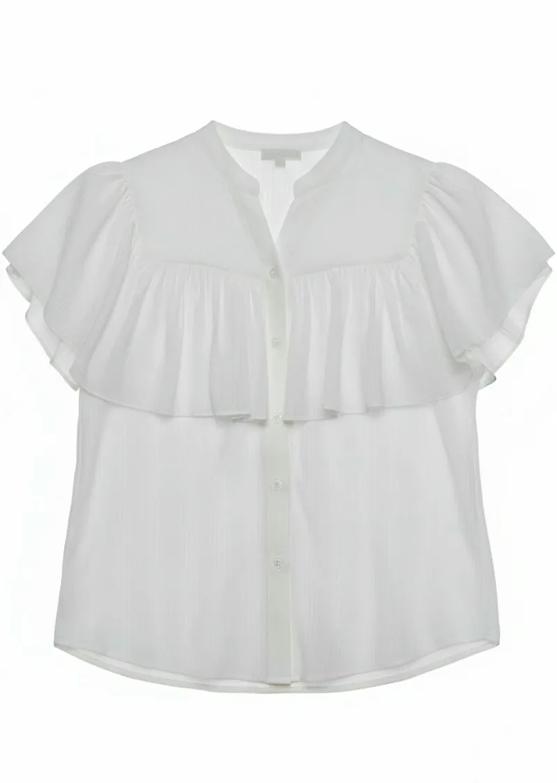 漂亮飄逸摺邊柔美排扣上衣