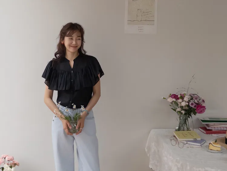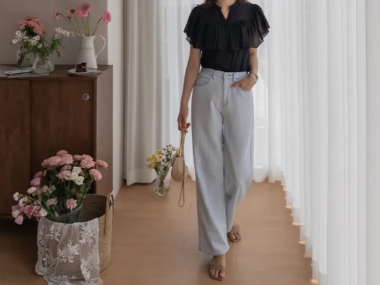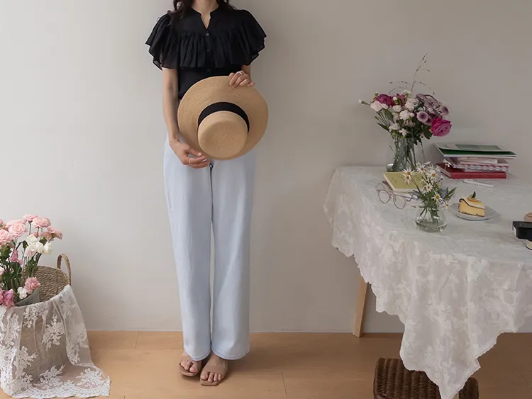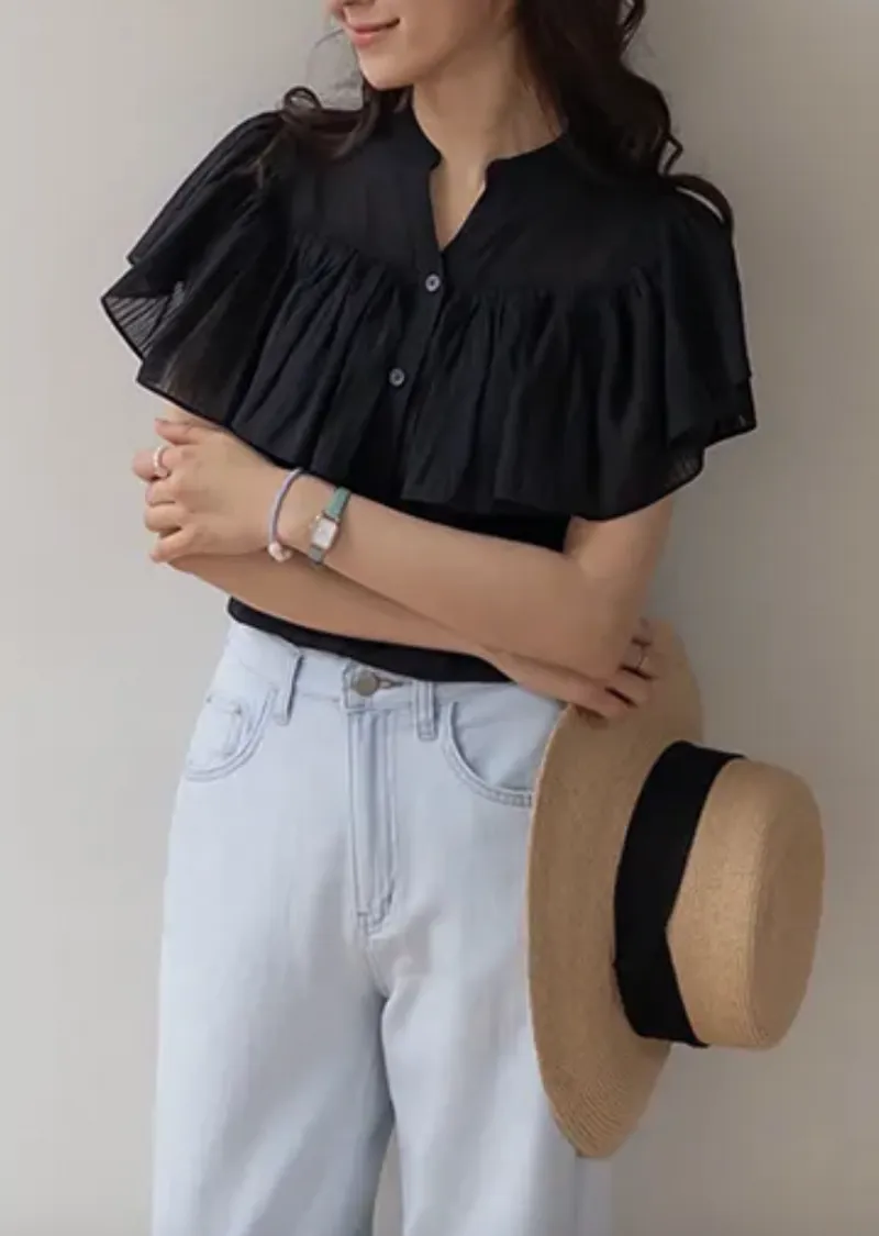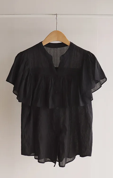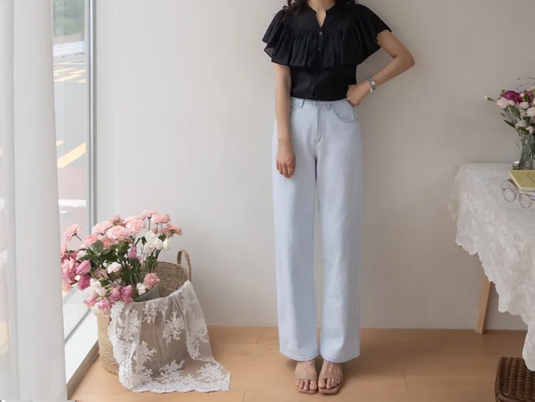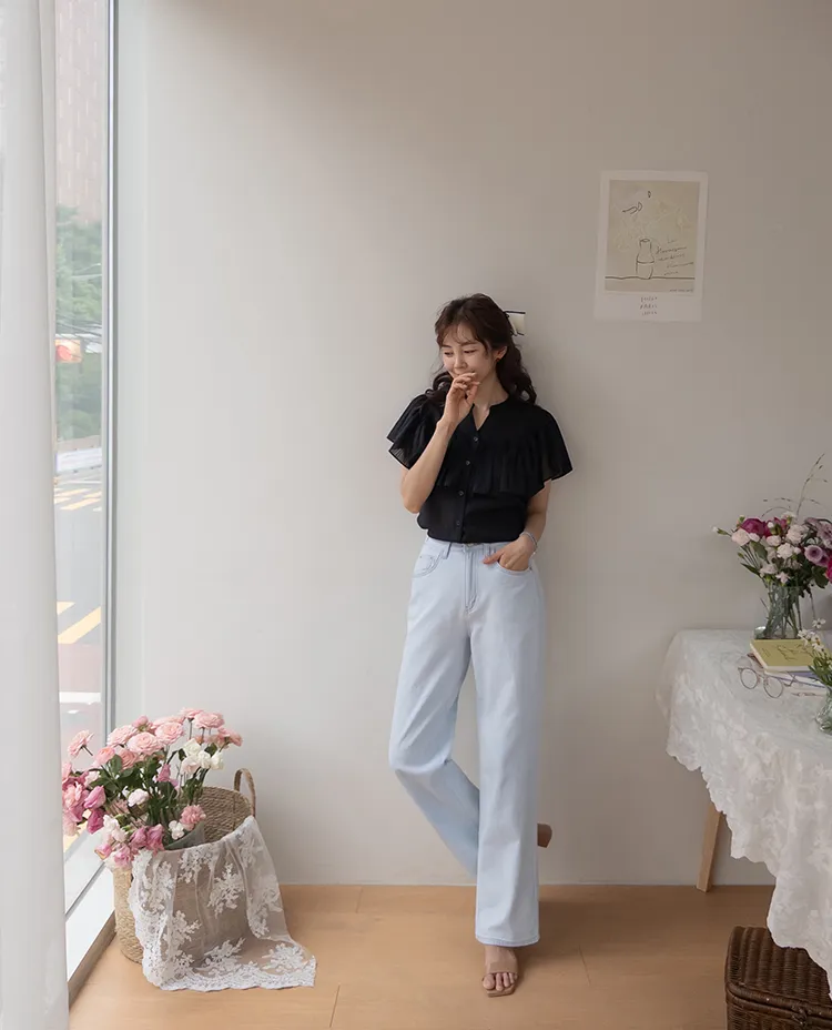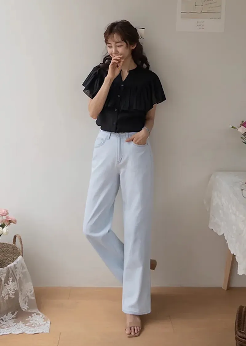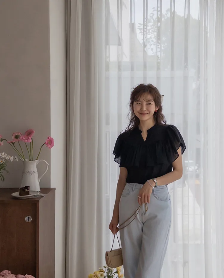 漂亮飄逸摺邊柔美排扣上衣