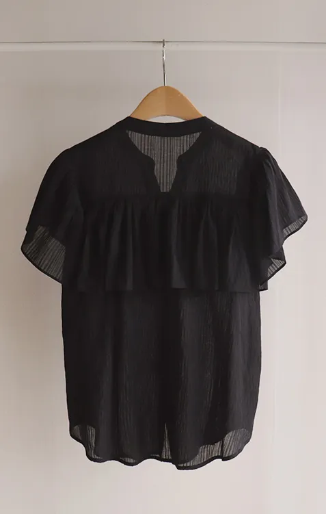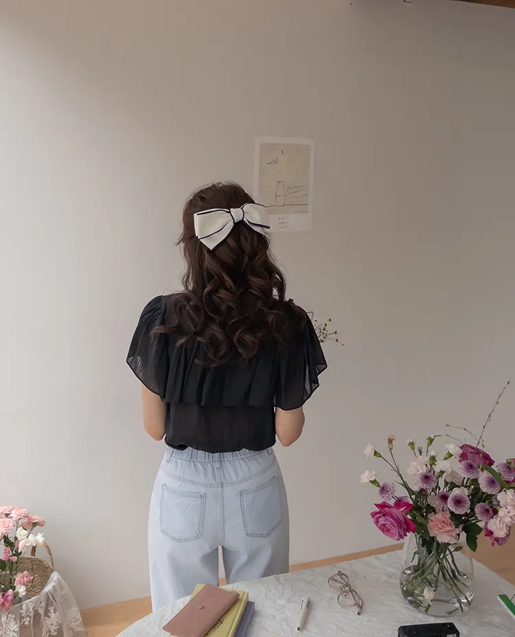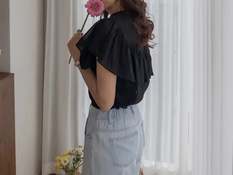 [漂亮帶有褶邊細節的女性化上衣♥] [帶有微妙光澤的純真心情] [飄動~輕盈] [零皺紋! ! ]