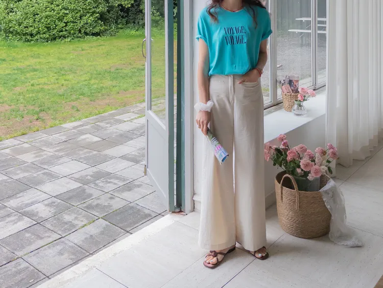 俐落直筒獨特口袋設計寬鬆版型休閒褲