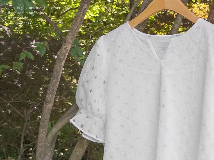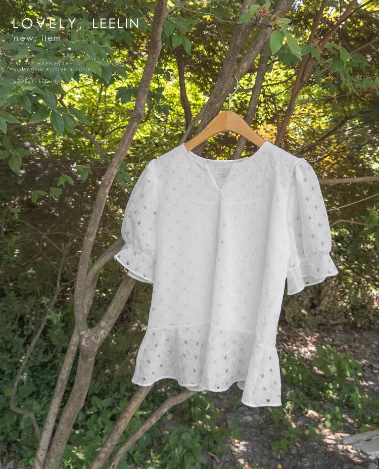 【領口設計顯瘦上衣♥】【輕款不易起皺】【透視三葉草圖案】【凸顯線條A字輪廓】