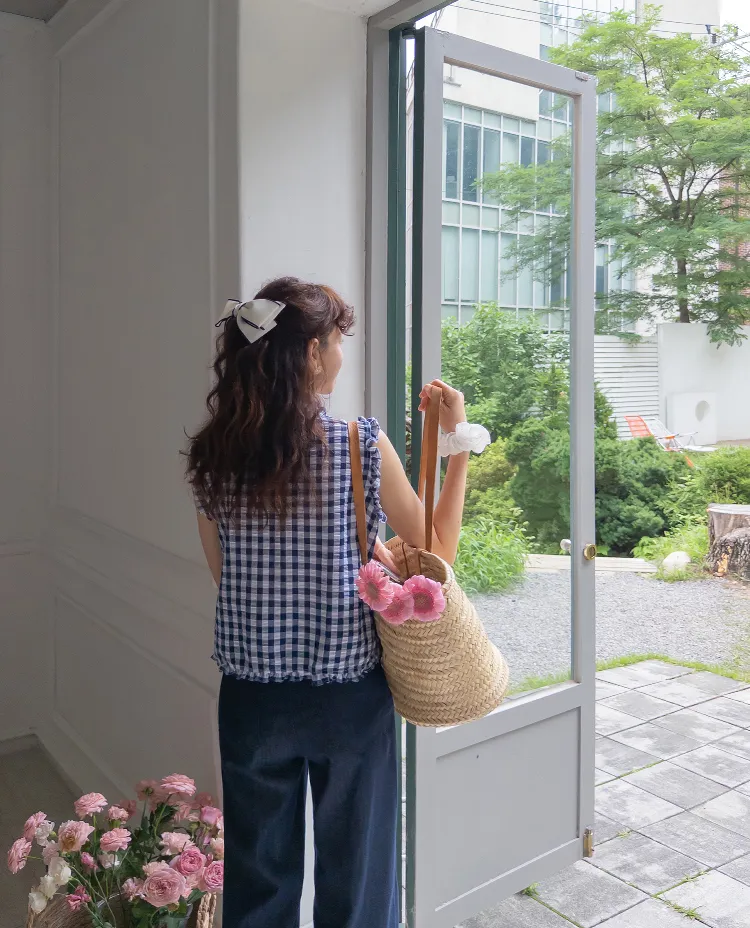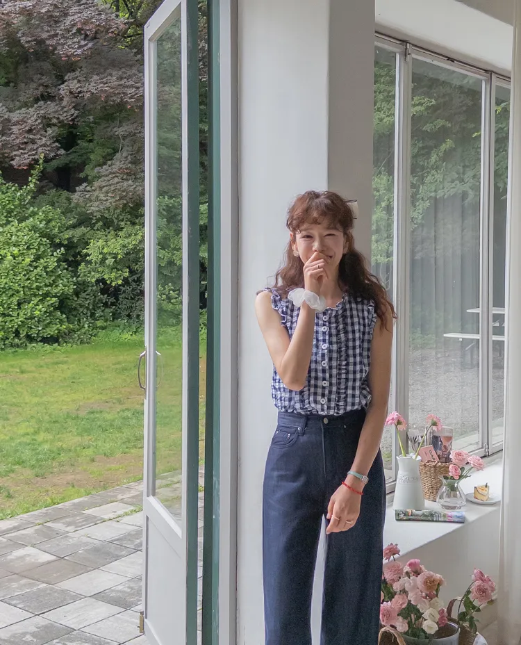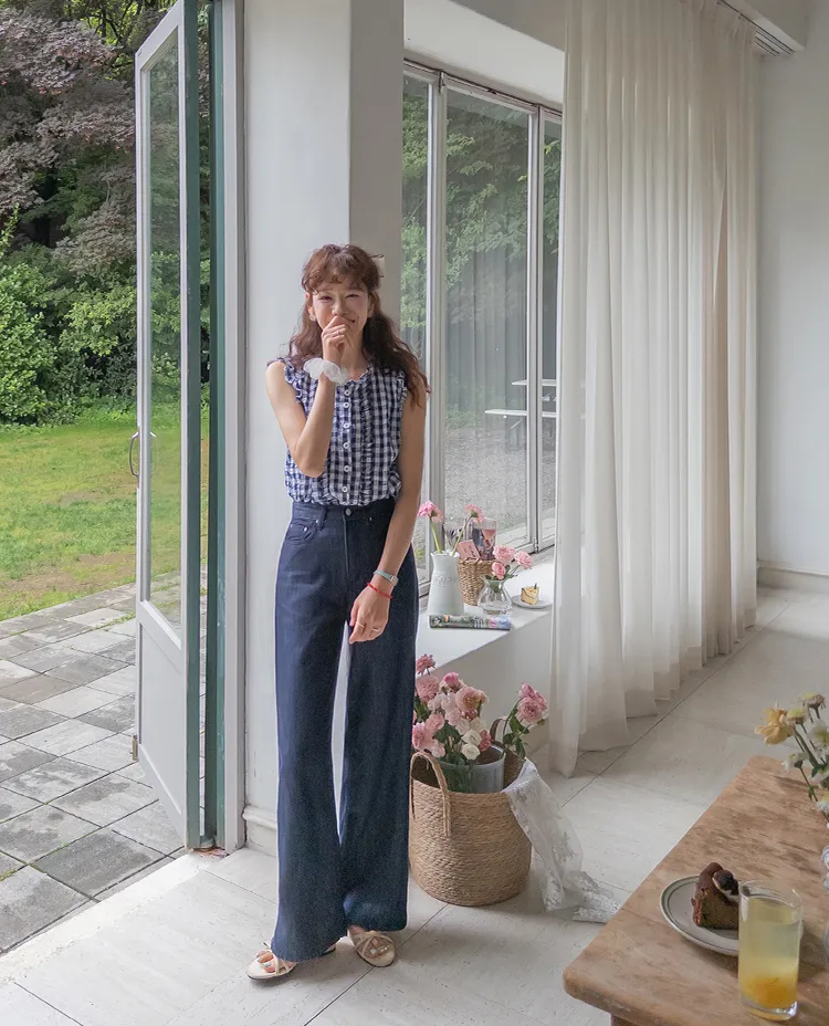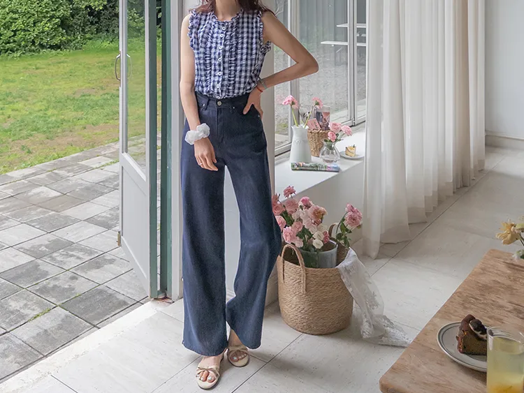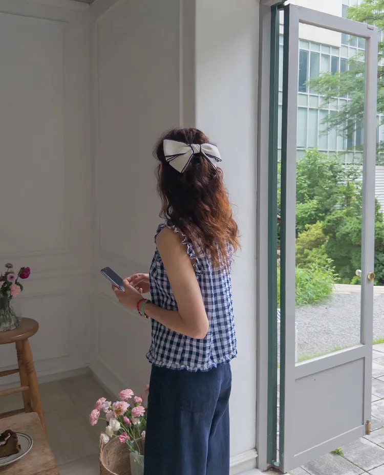 【充滿可愛氣息的荷葉邊無袖上衣~✿】 【帥氣的高腰格紋♥】 【不用擔心起皺】 【作為吸睛的單品】