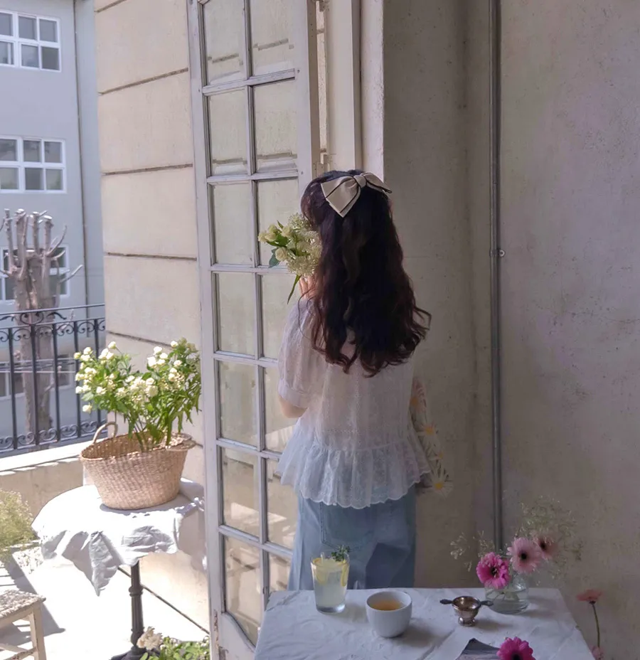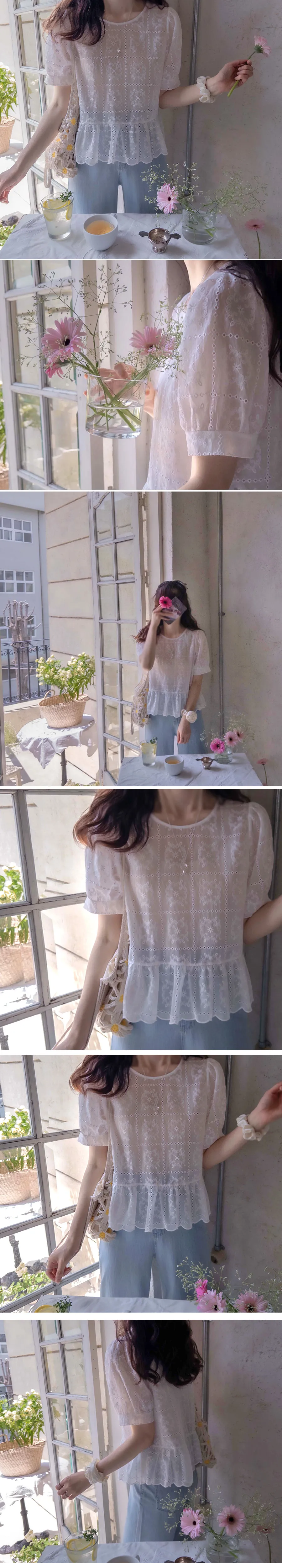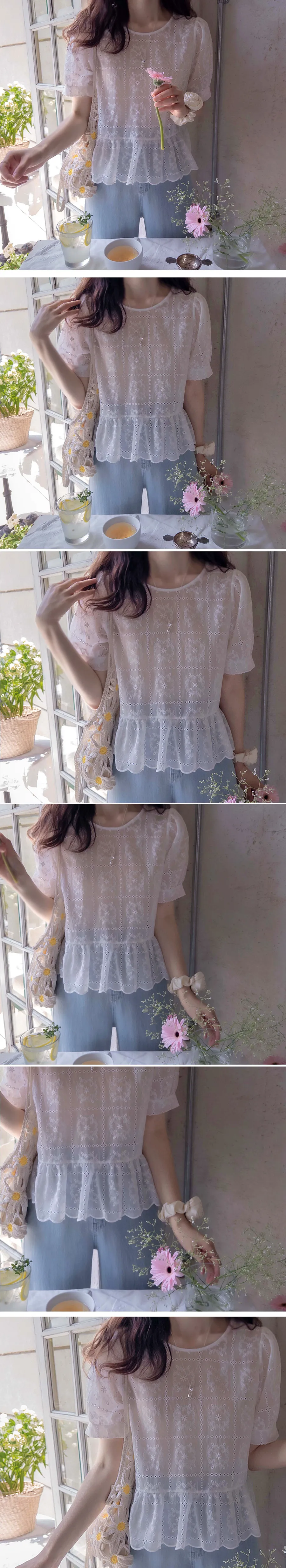 【柔軟輕盈的蕾絲上衣】 【夏季的精緻修身上衣】 【鏤空和花朵刺繡的設計非常可愛】 【袖子和下擺的波浪紋非常漂亮】 【夏季清涼優雅的刺繡上衣】