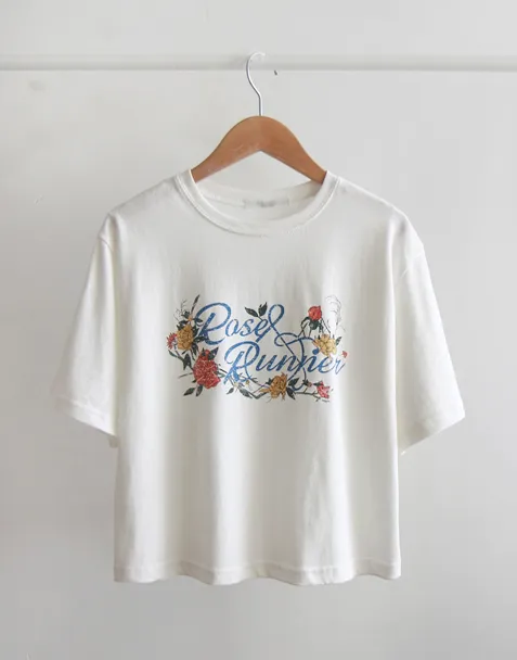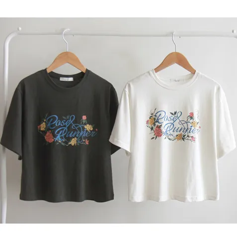 [花朵印花短版上衣] [舒適棉質T卹] [帶有字母印花的T卹,非常適合增添色彩] [適合日常穿著的基本顏色]