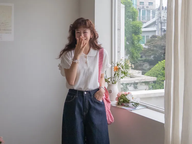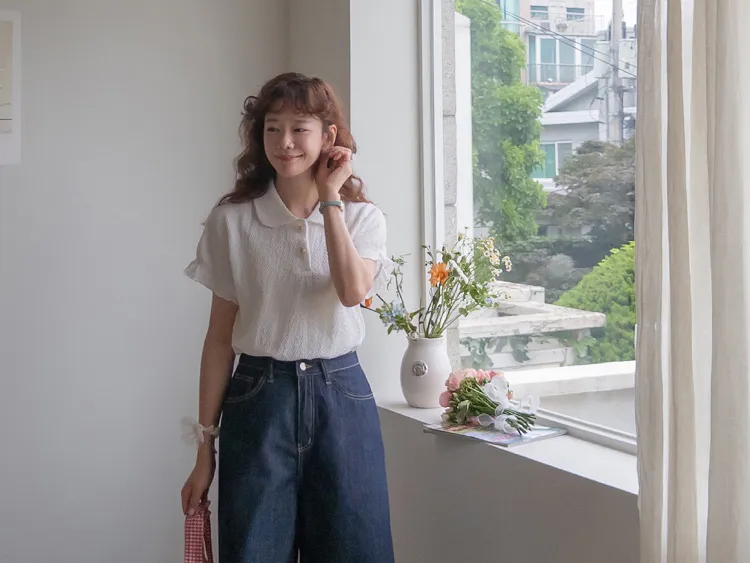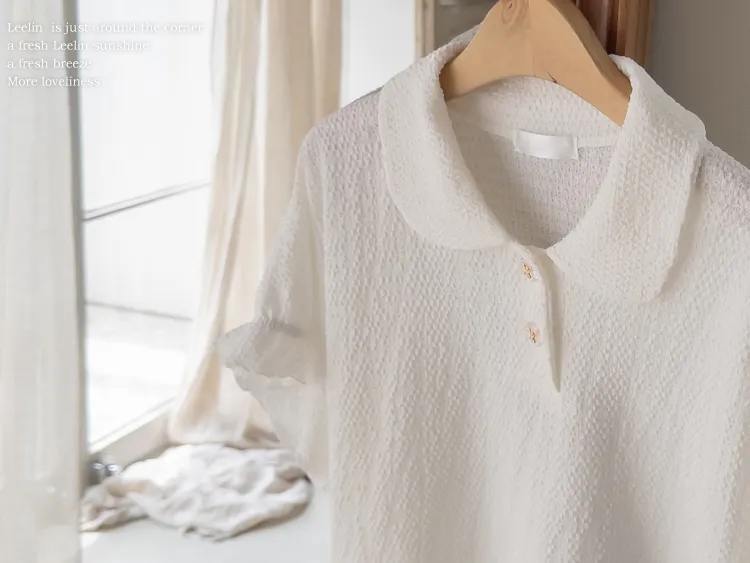 【好穿搭上衣♥】【涼爽的防皺布料,不用擔心起皺! ! ! 】【四葉草鈕扣+袖口彈性帶設計】