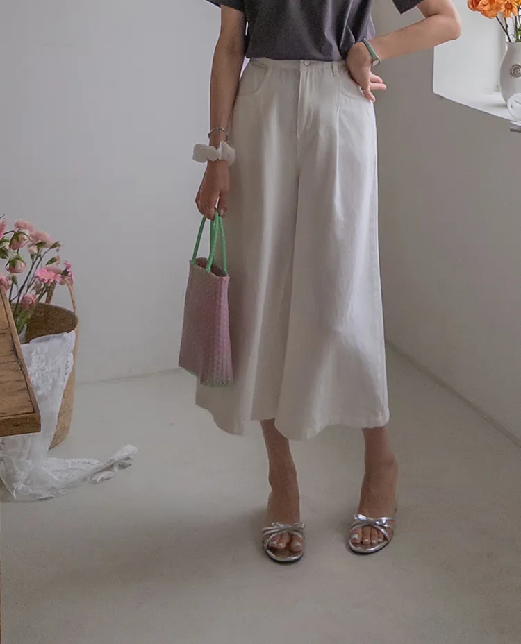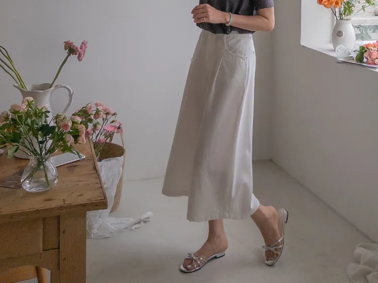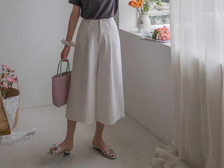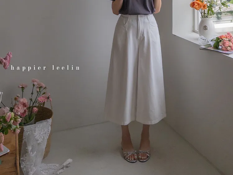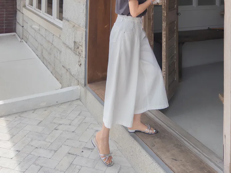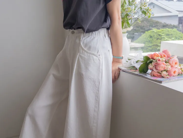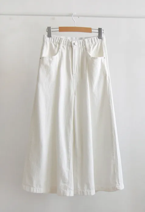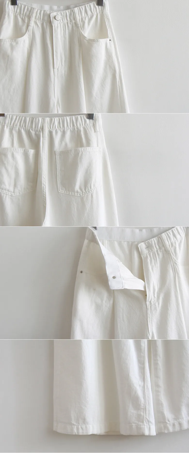 夏日漂亮褶襉線條舒適寬鬆版型白色牛仔褲裙
