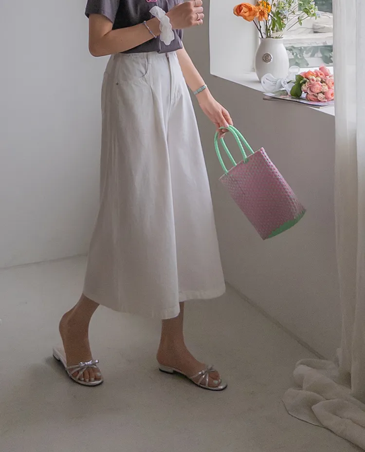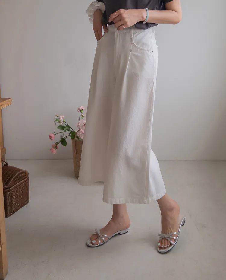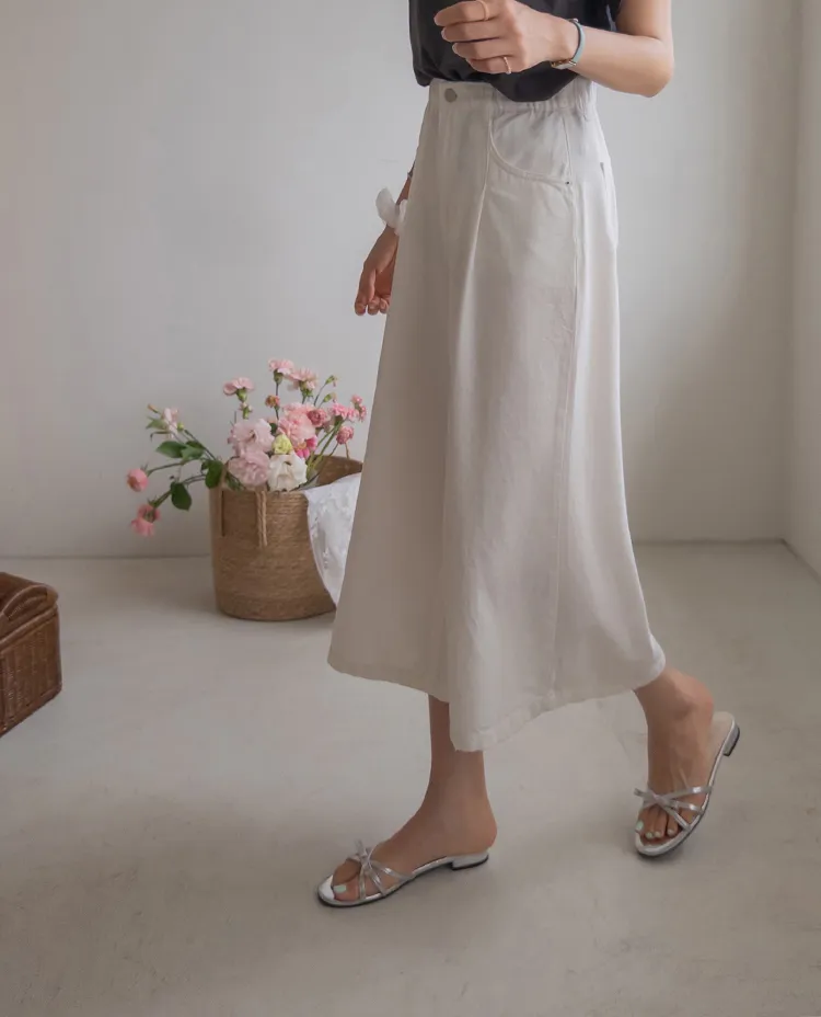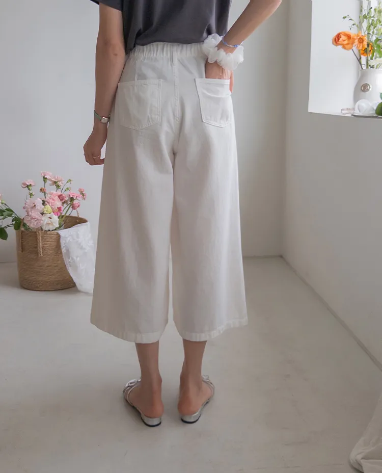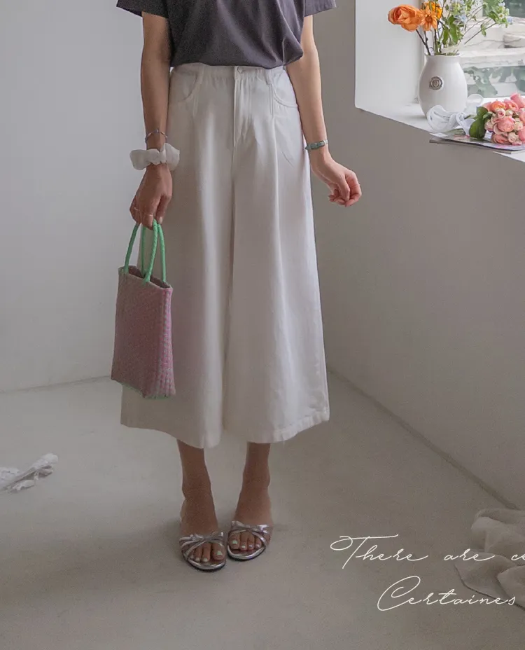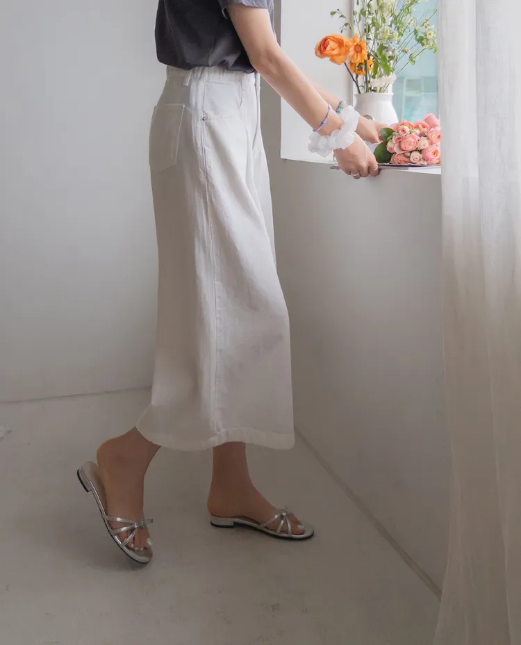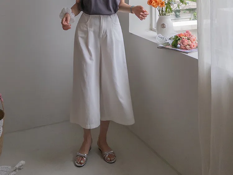夏日漂亮褶襉線條舒適寬鬆版型白色牛仔褲裙