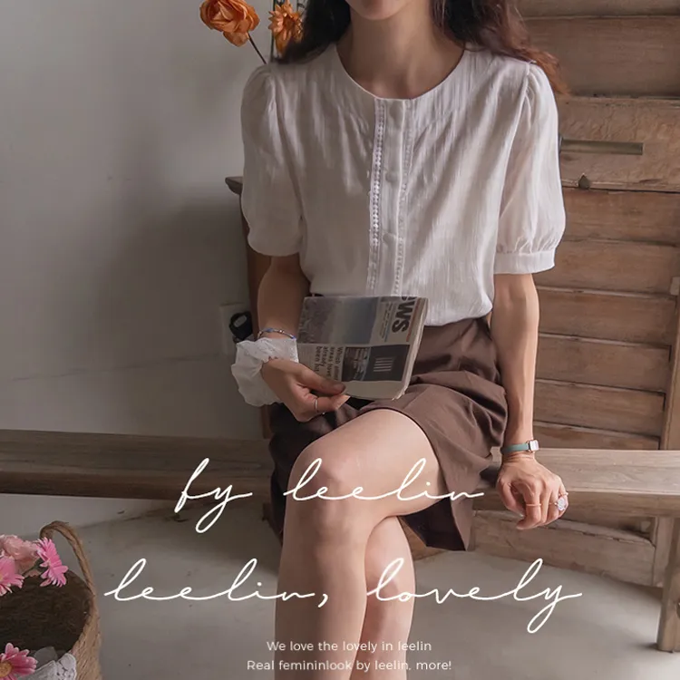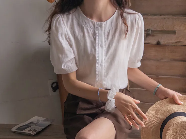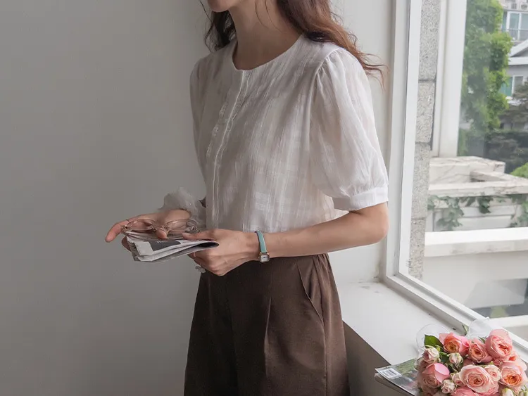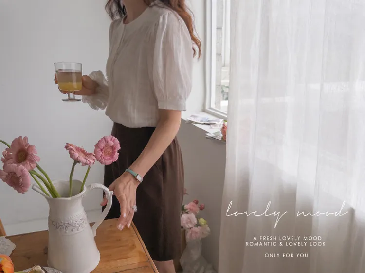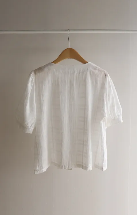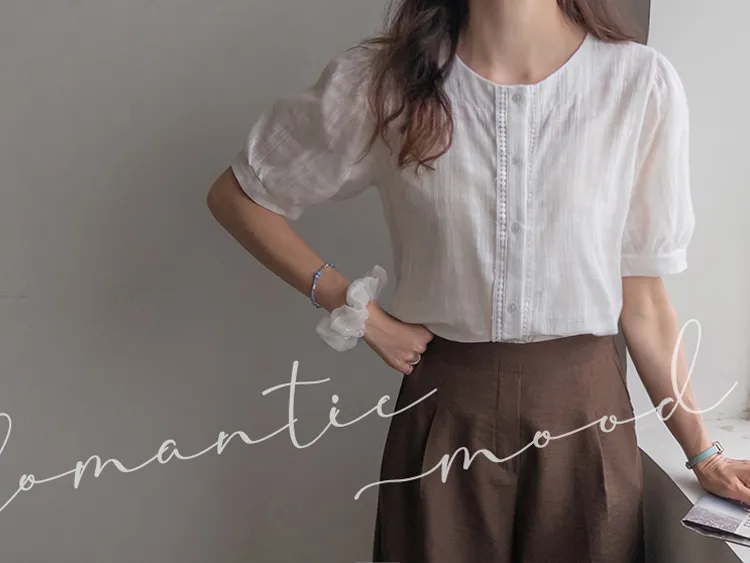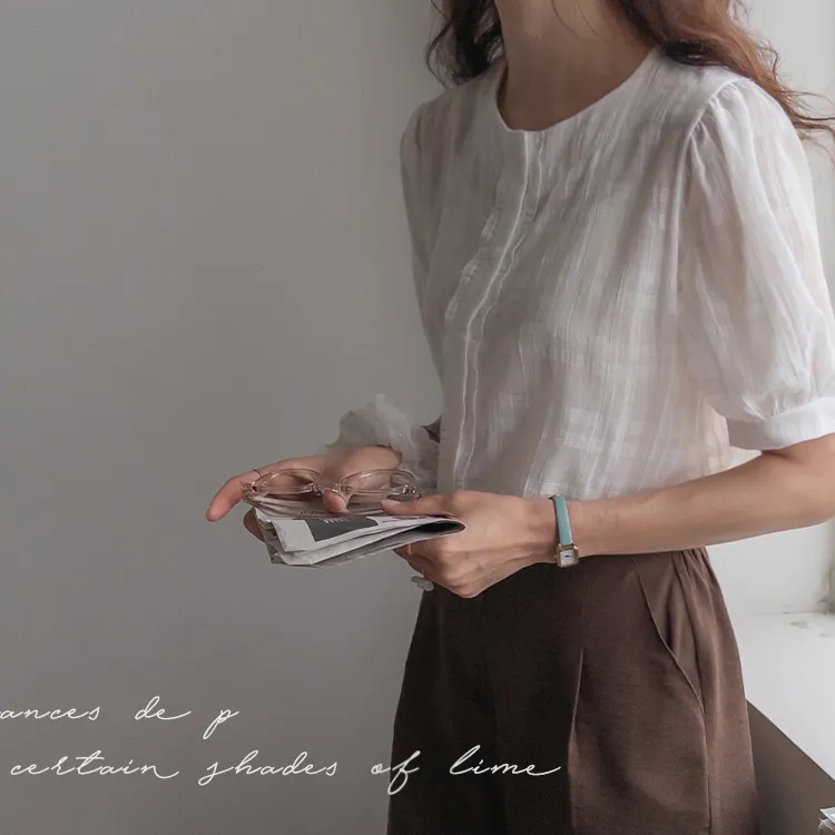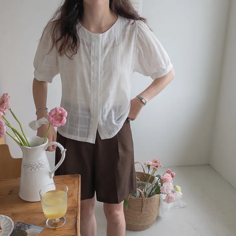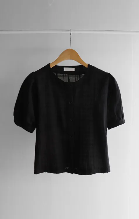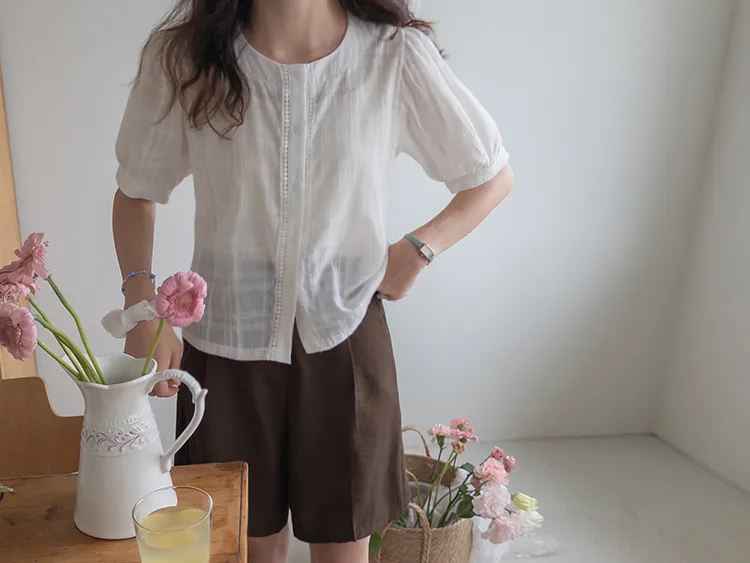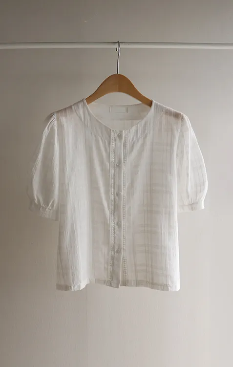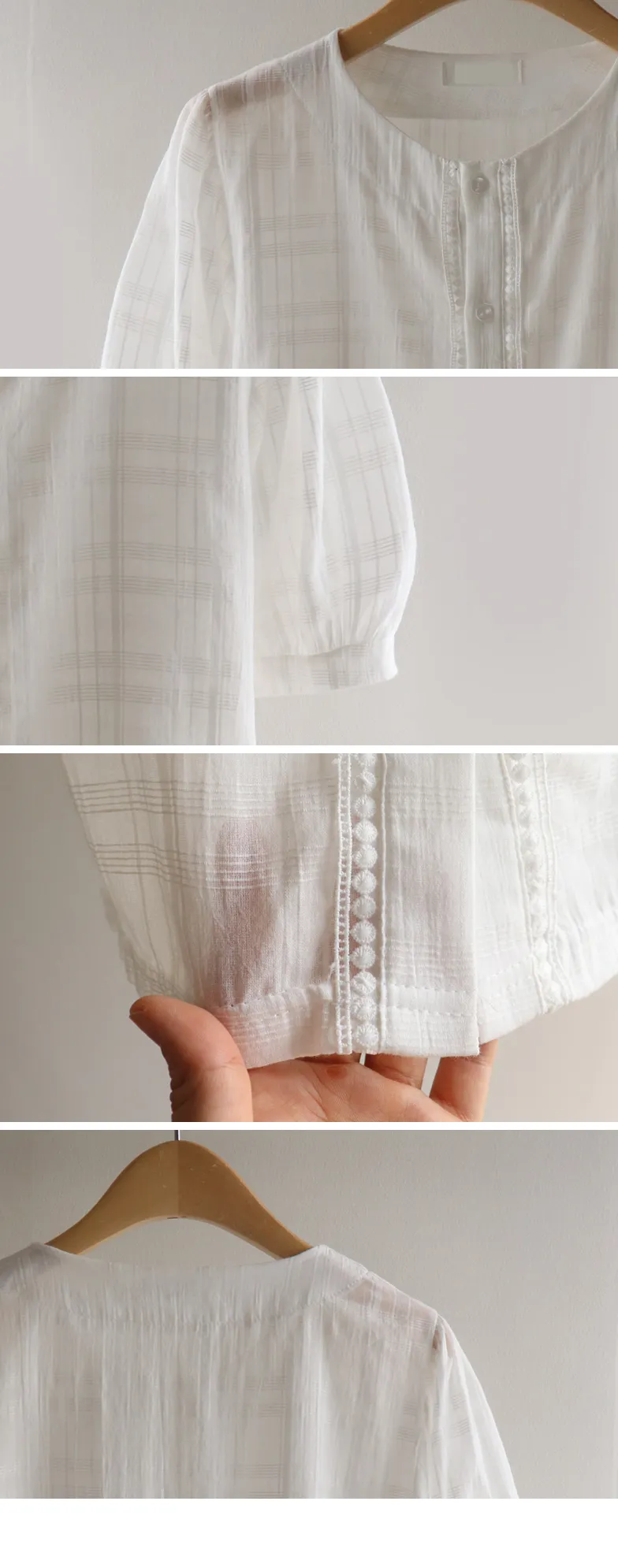 【透視&低調的格紋圖案,展現精緻感~✿】 【浪漫情調的蕾絲線條♥】 【輕盈飄逸的布料,打造清涼感! 】 【泡泡袖更添蓬鬆感】