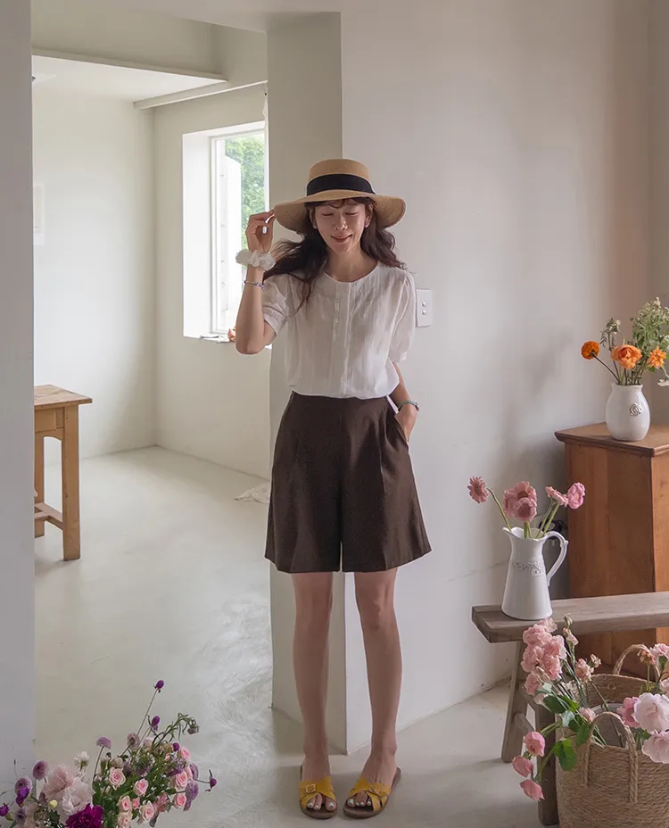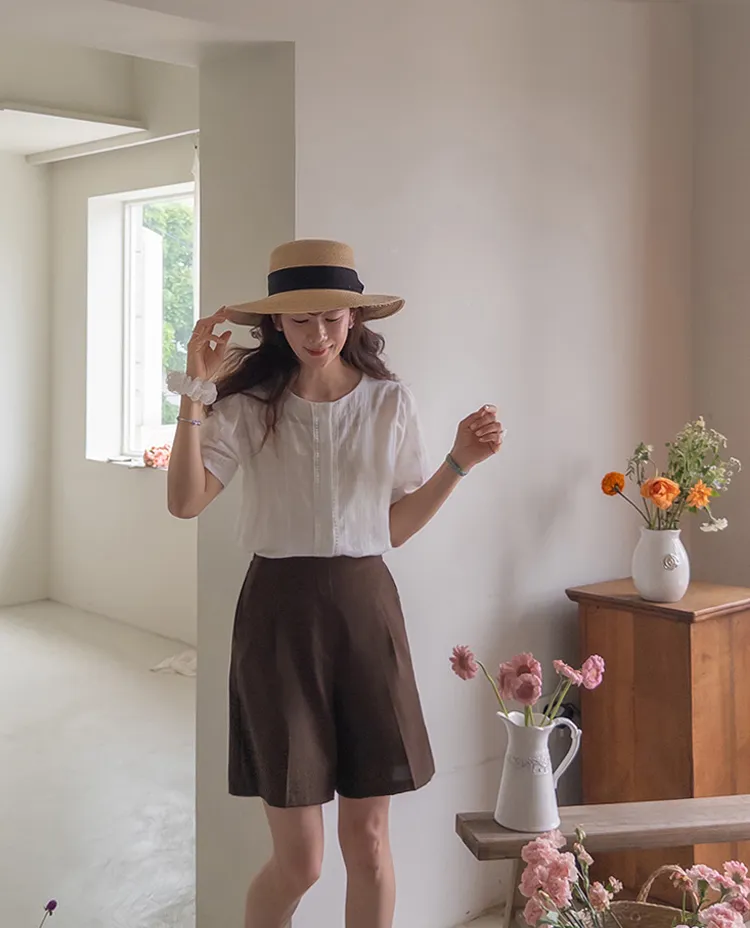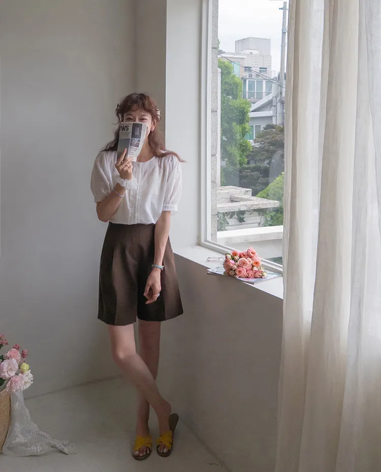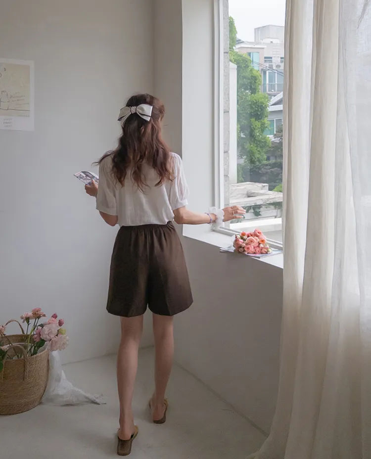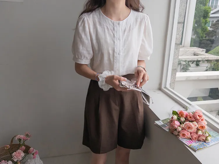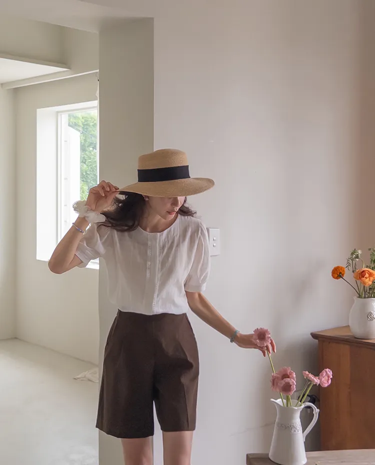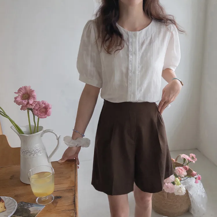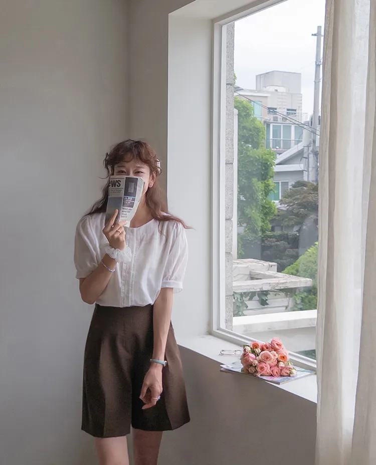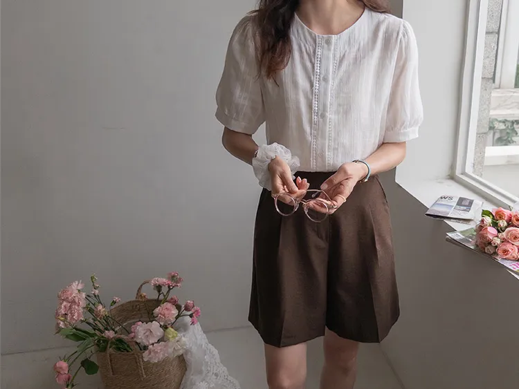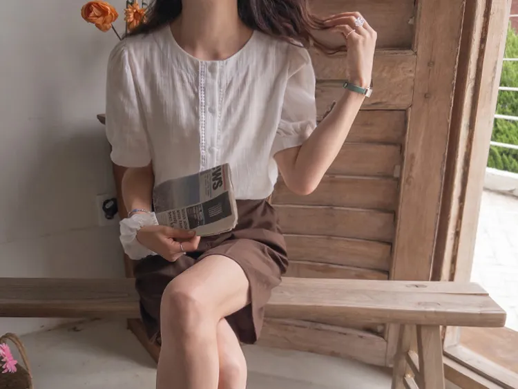 【透視&低調的格紋圖案,展現精緻感~✿】 【浪漫情調的蕾絲線條♥】 【輕盈飄逸的布料,打造清涼感! 】 【泡泡袖更添蓬鬆感】