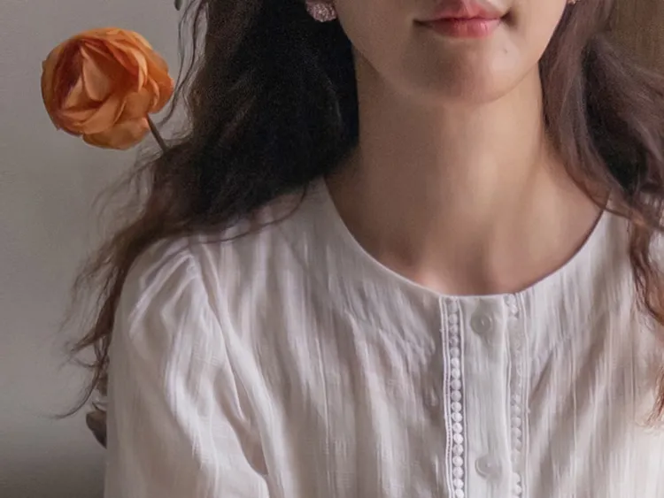 可愛魅力精緻格紋點綴蕾絲襯邊排扣上衣