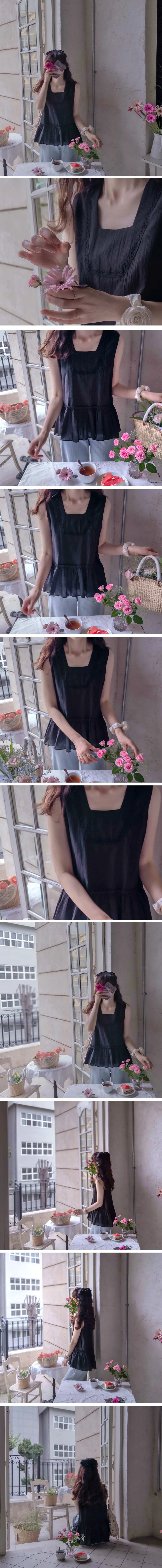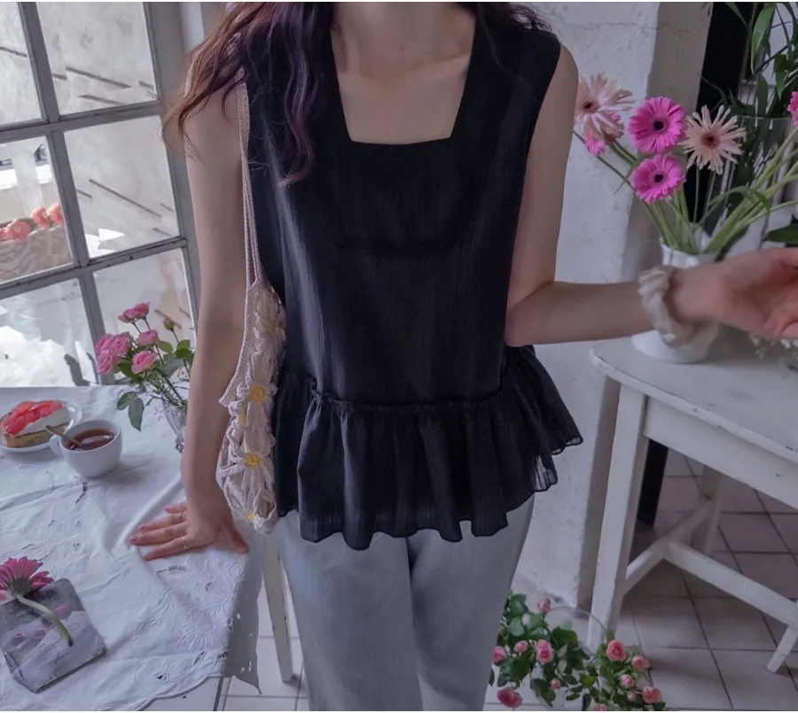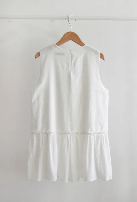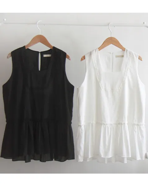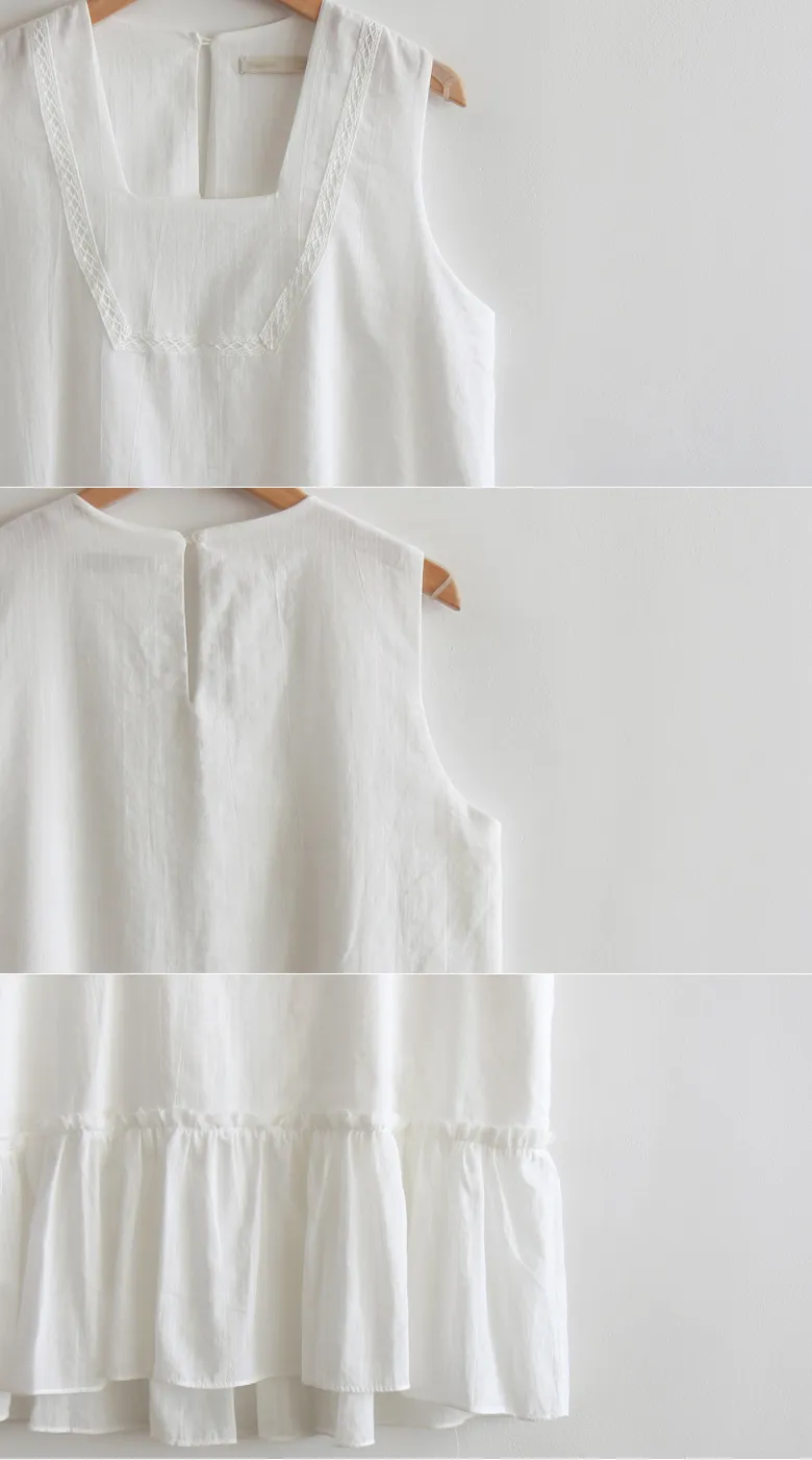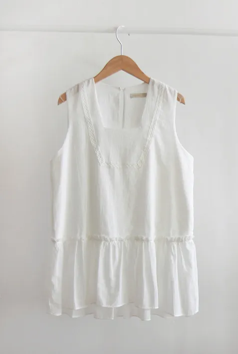 清新漂亮蕾絲飾邊腰線剪裁線條無袖上衣
