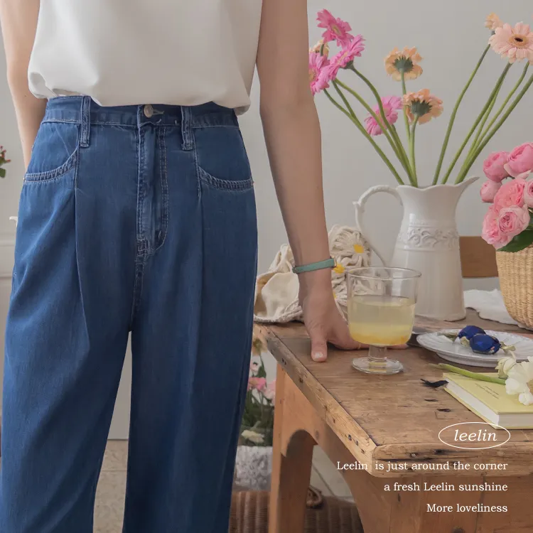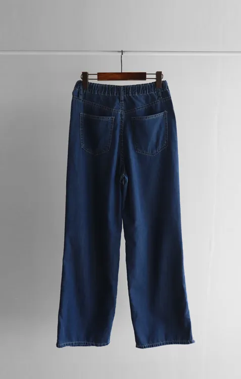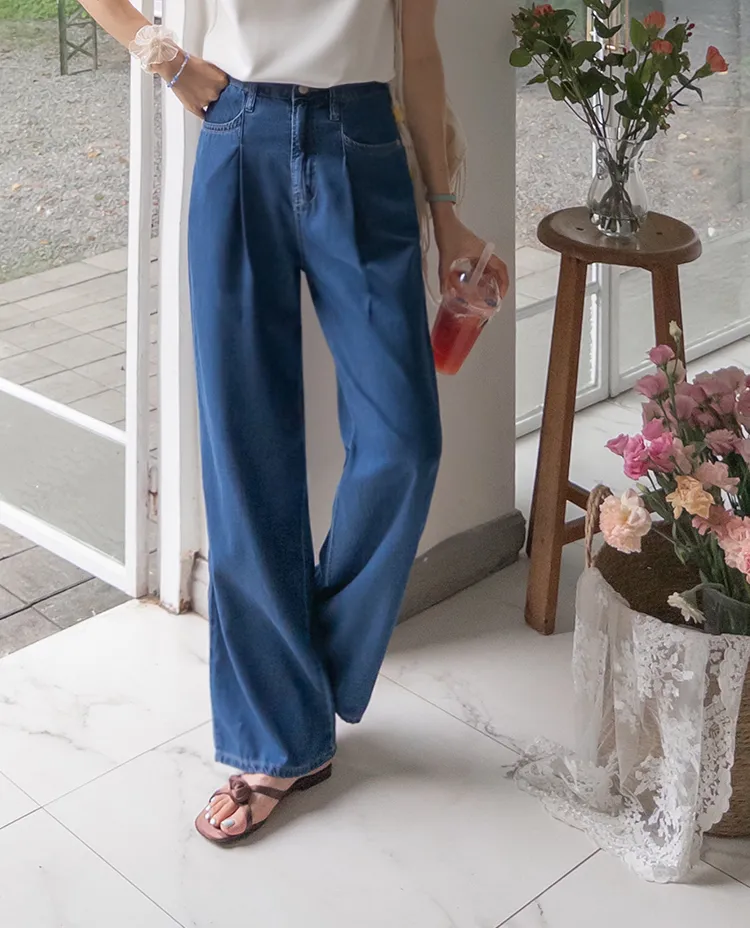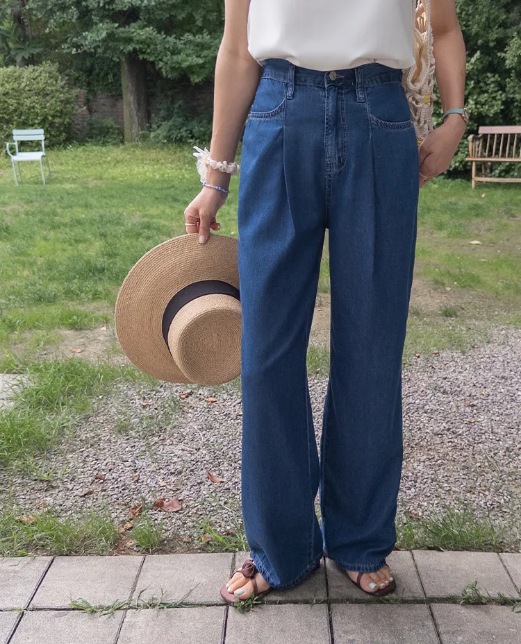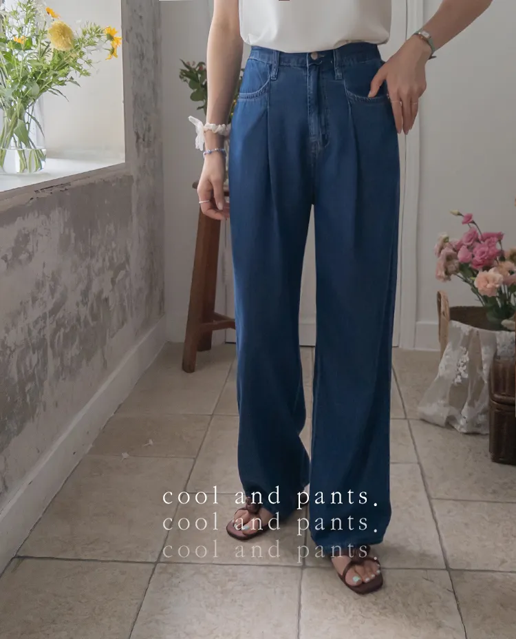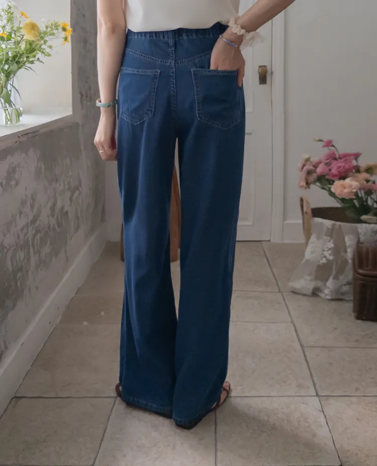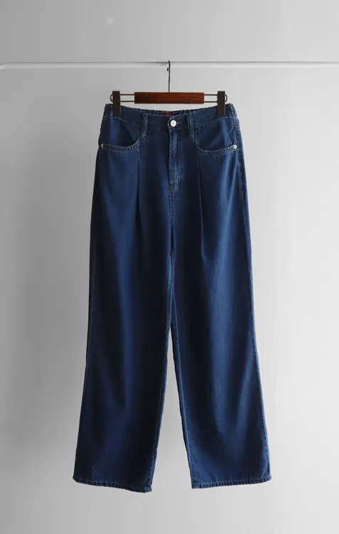 【清涼天絲寬版牛仔褲♥】【天絲布料,感覺就像沒穿一樣~又輕又軟! 】【輕量】【腰部有褶襉設計,獨具特色】