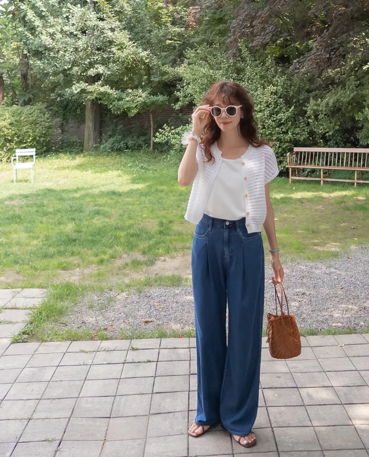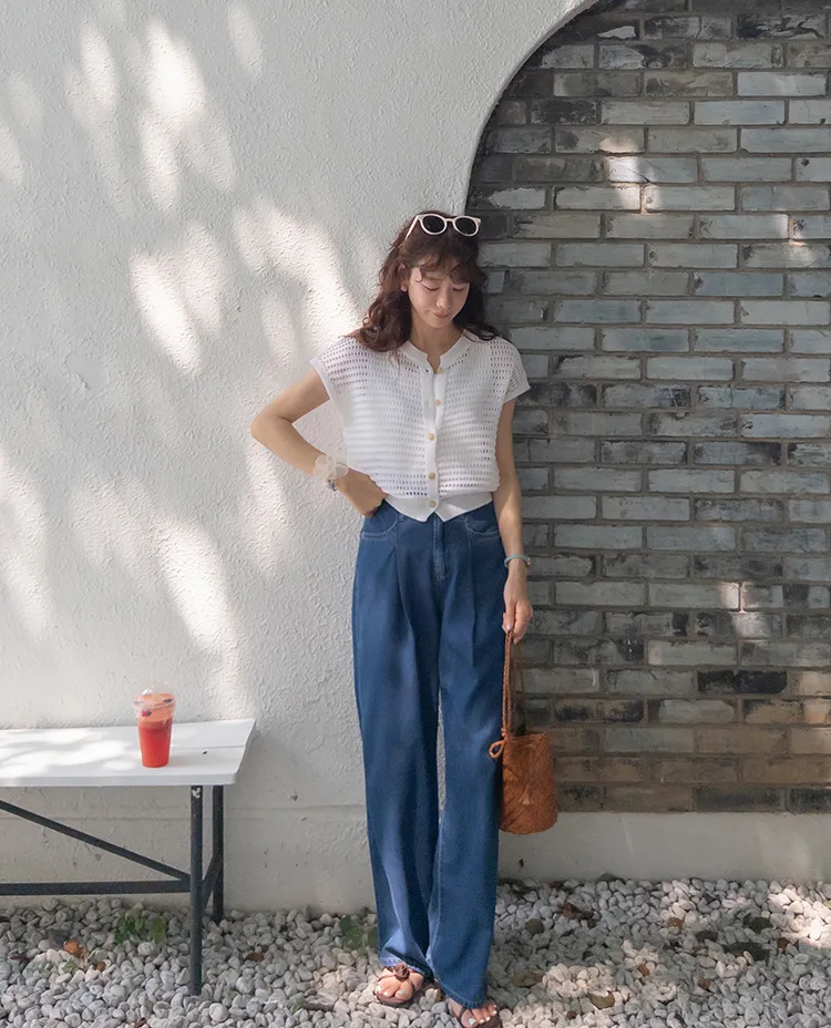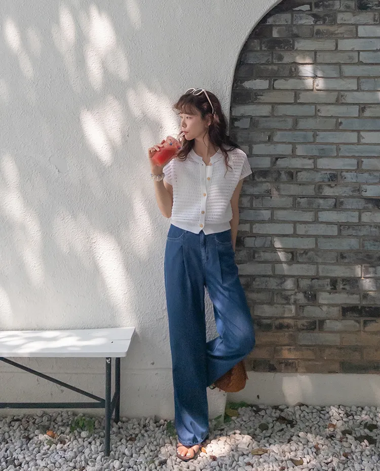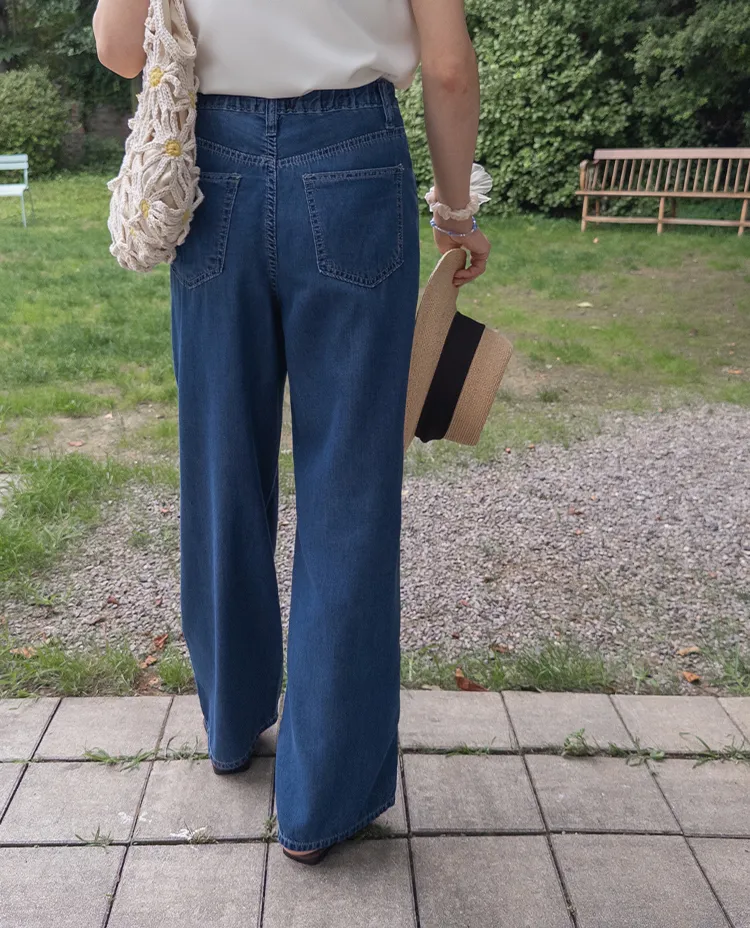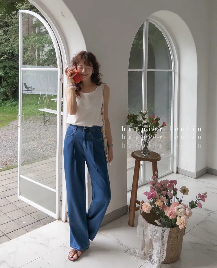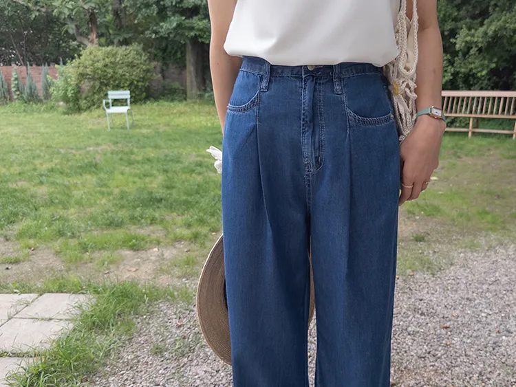 【清涼天絲寬版牛仔褲♥】【天絲布料,感覺就像沒穿一樣~又輕又軟! 】【輕量】【腰部有褶襉設計,獨具特色】