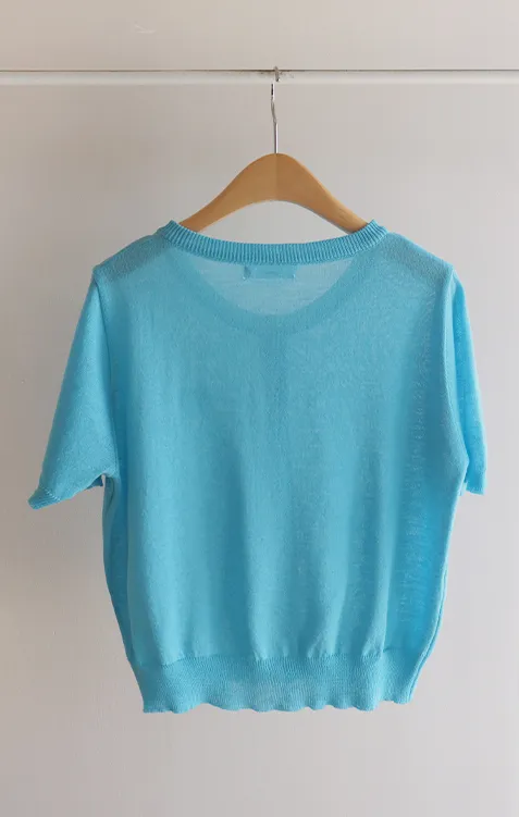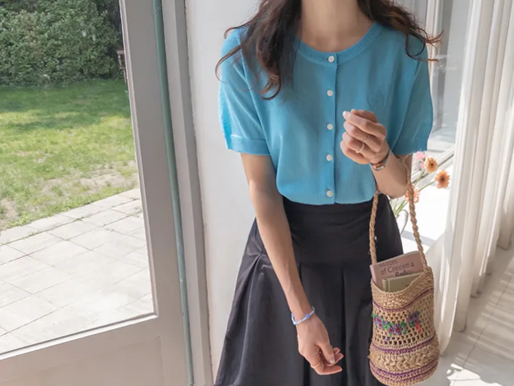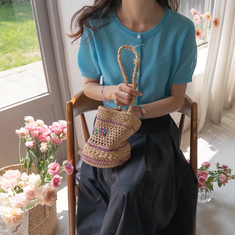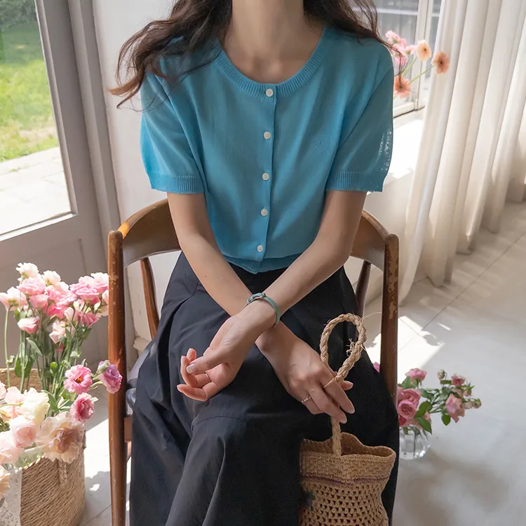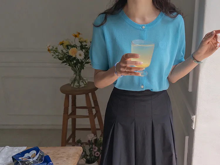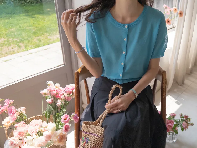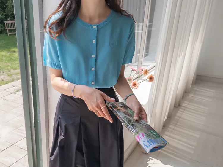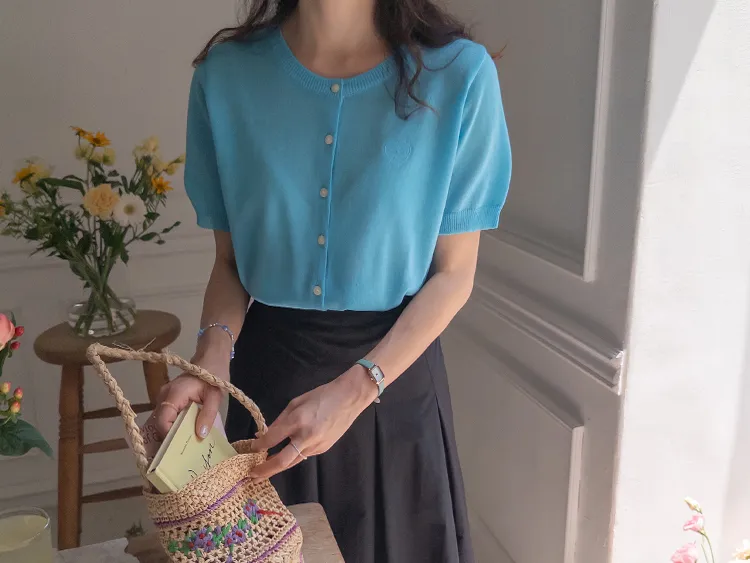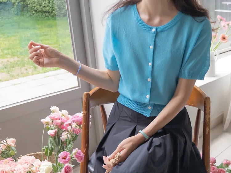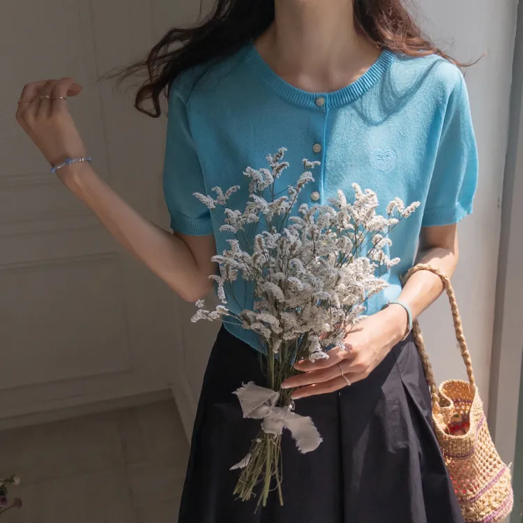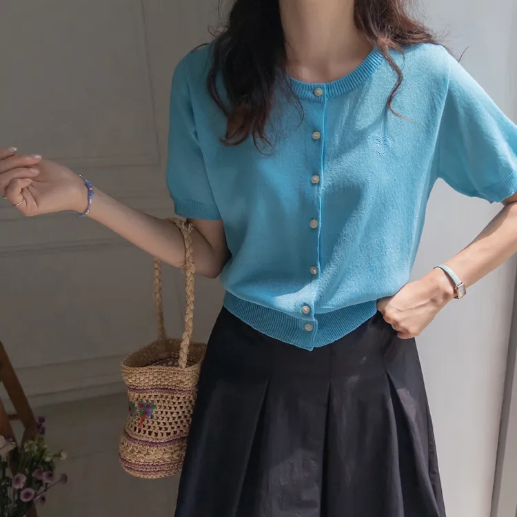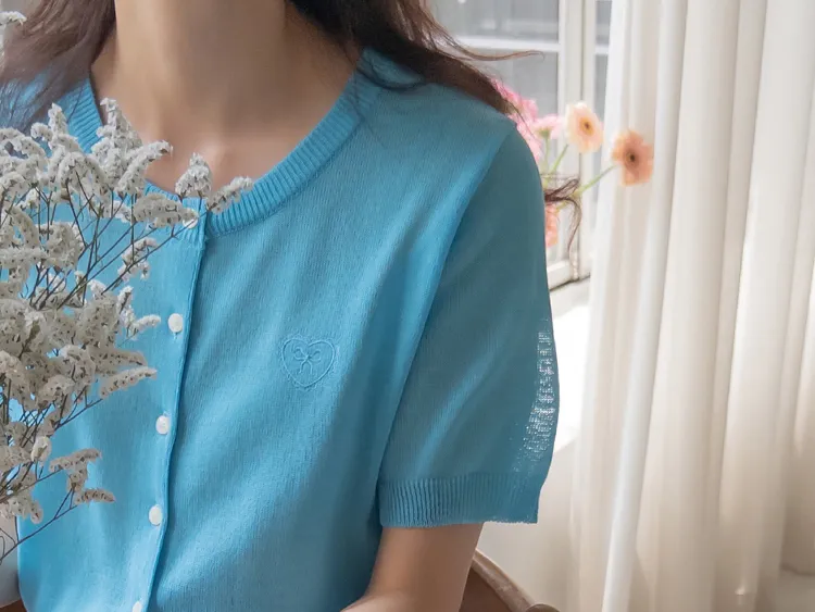 夏日明亮色彩點綴心形蝴蝶結刺繡短袖開衫