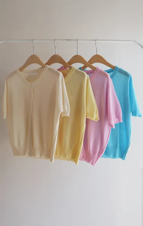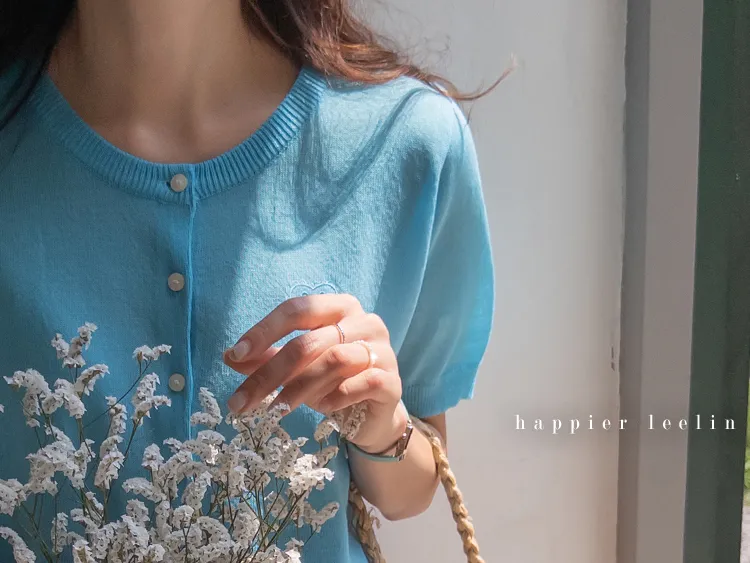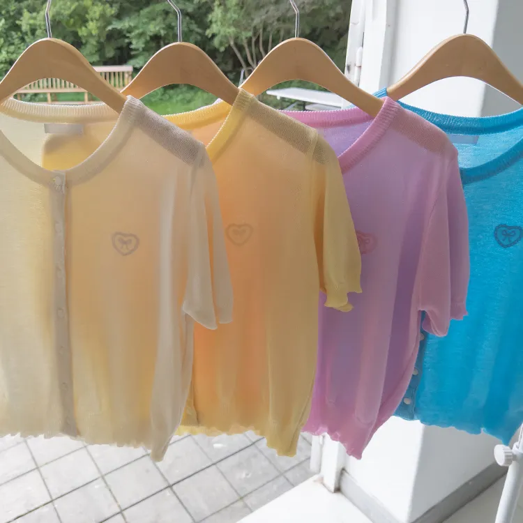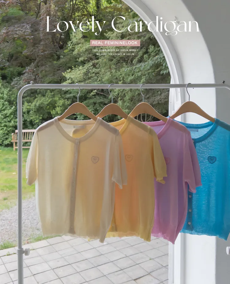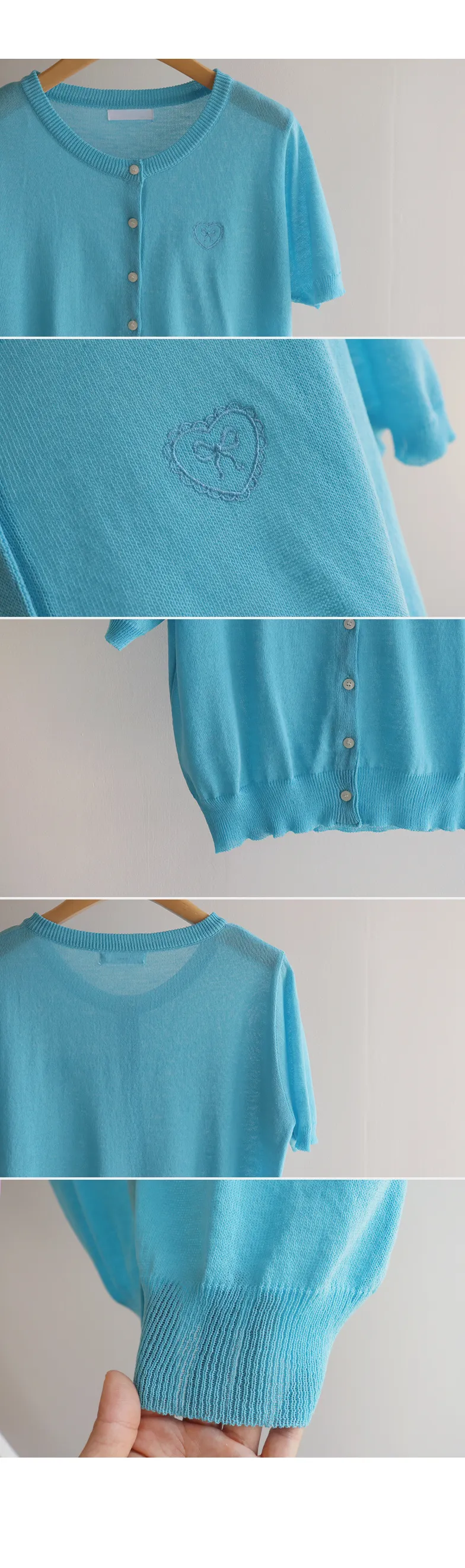 【心型蝴蝶結刺繡可愛夏日開衫♡】【舒適乾爽的觸感! 】【透氣布料】【色彩明亮漂亮】