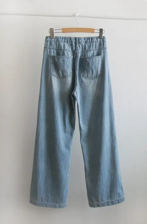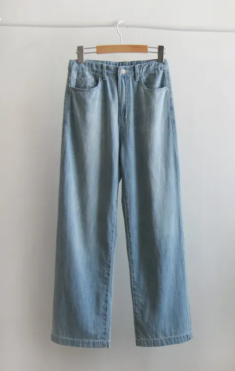 [腰部採用彈性帶設計] [採用柔軟有彈性的牛仔製成的寬鬆褲子] [穿著舒適] [採用適合夏季穿著的涼爽面料製成的牛仔褲] [適合日常穿著且四季皆宜的褲子]