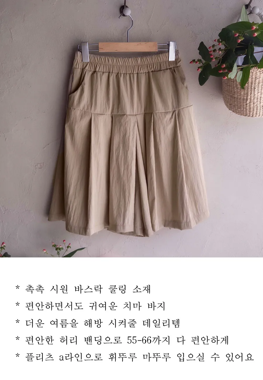 【舒適的腰部彈性帶設計】 【適合夏季的長度】 【遮蓋身形,穿著舒適的裙褲】 【夏季涼爽的面料,穿著舒適】 【作為時尚清涼的A字裙褲】