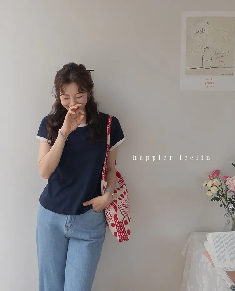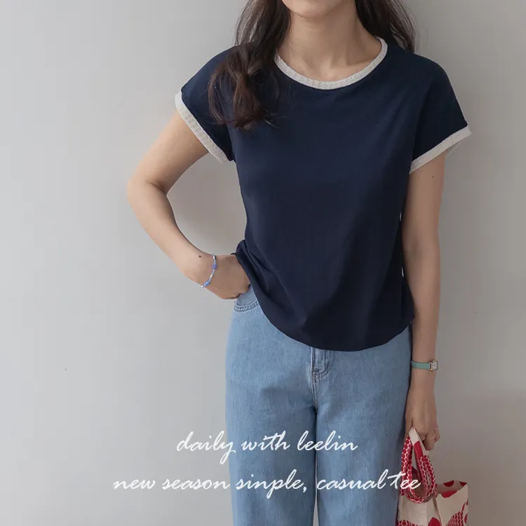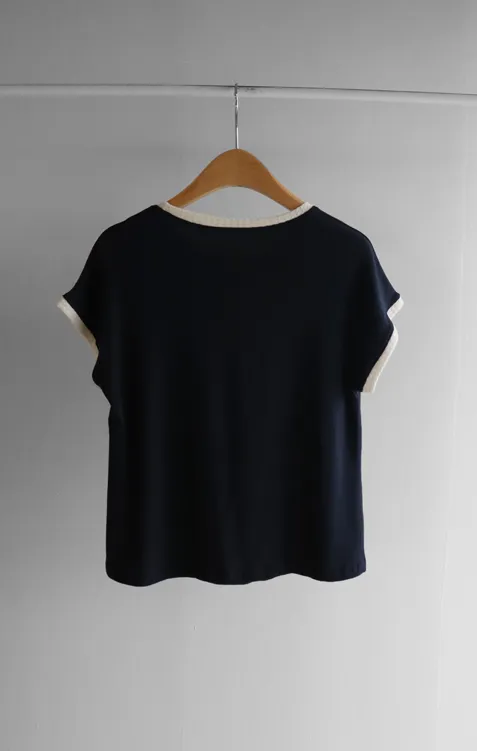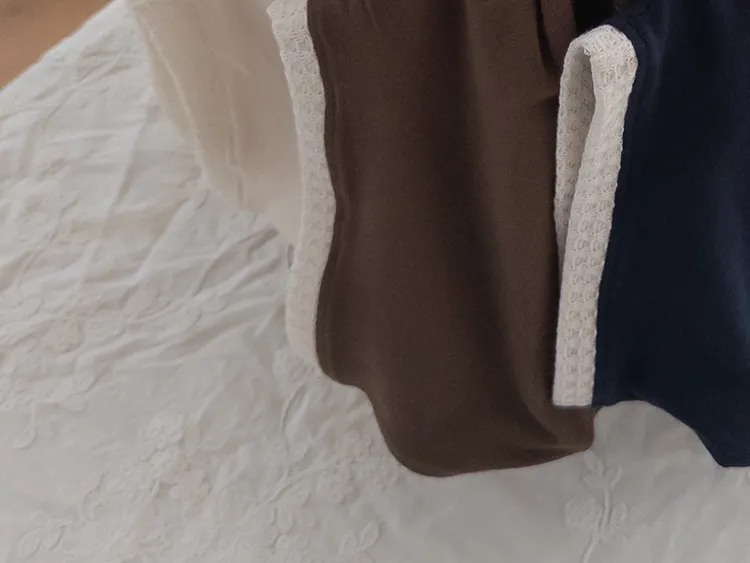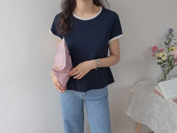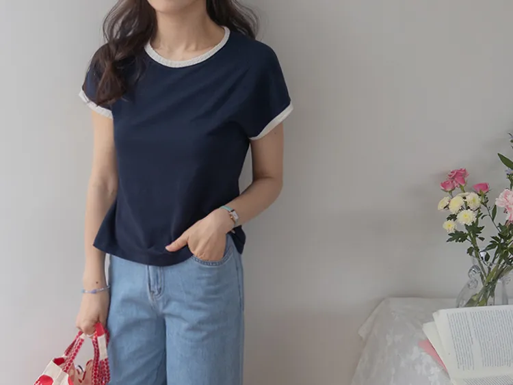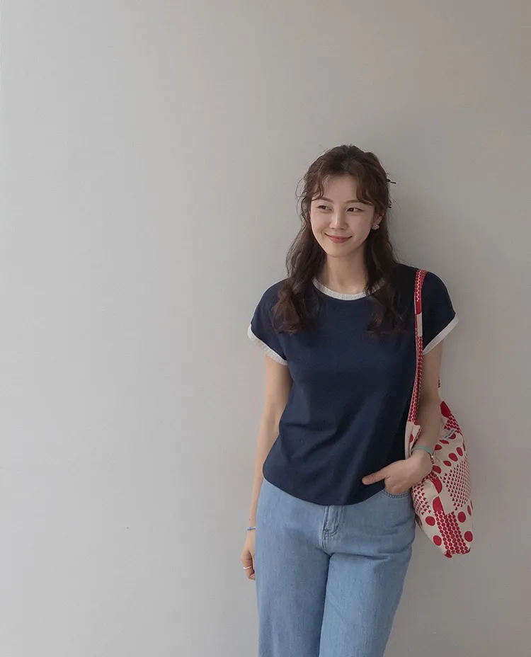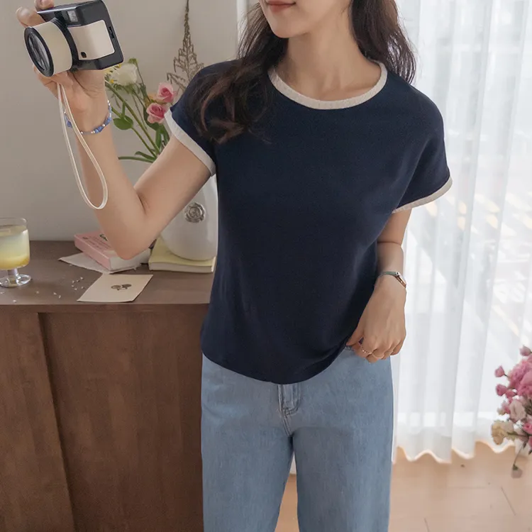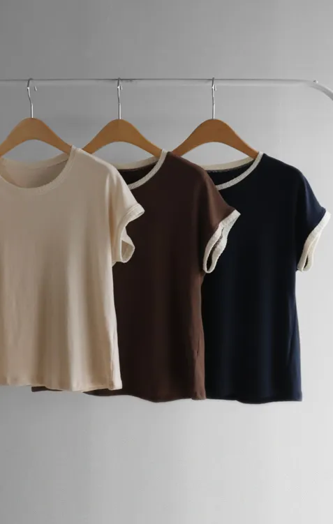 點綴末端花呢色邊莫代爾彈性舒適上衣