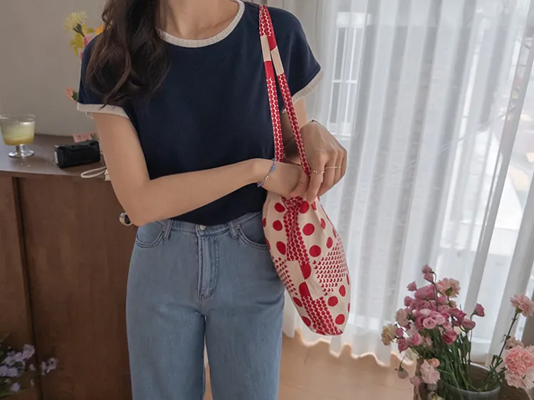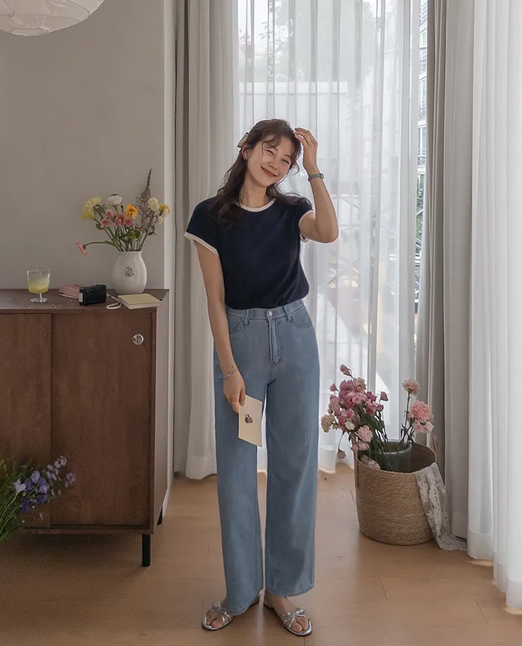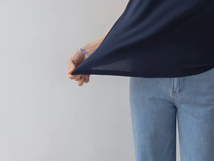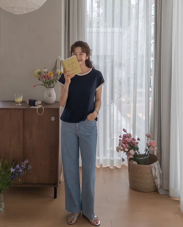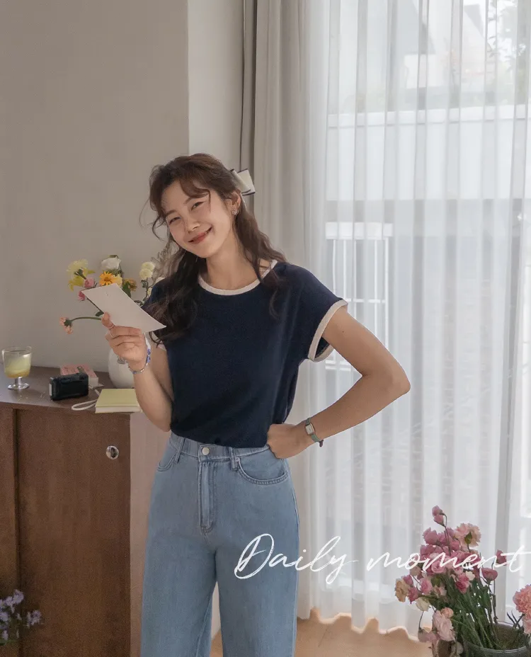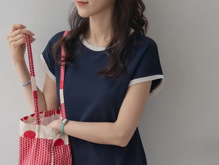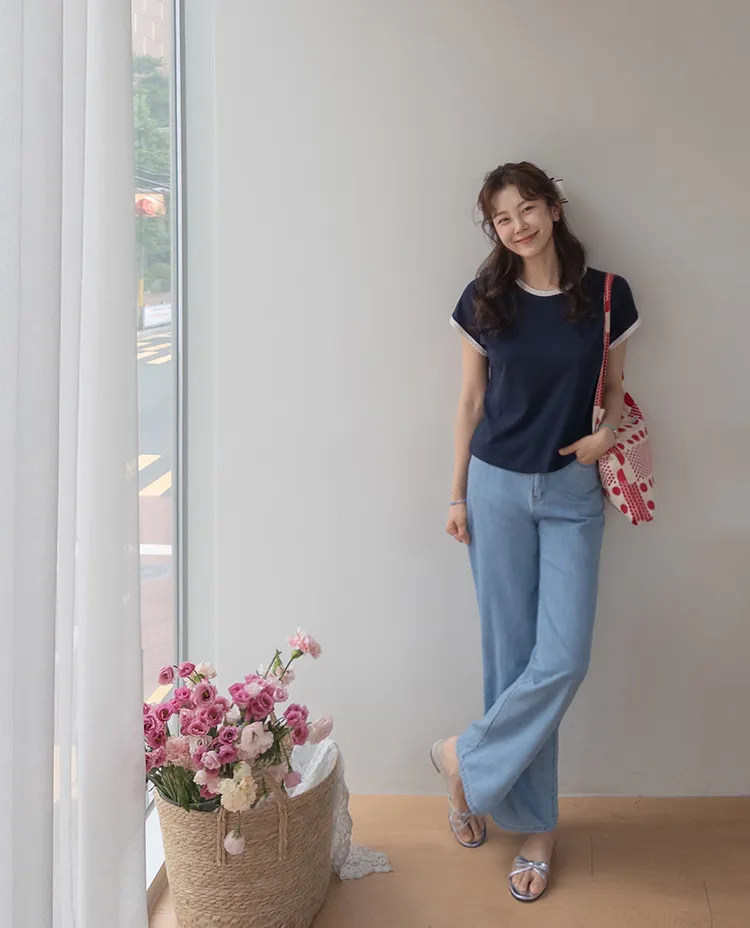 點綴末端花呢色邊莫代爾彈性舒適上衣