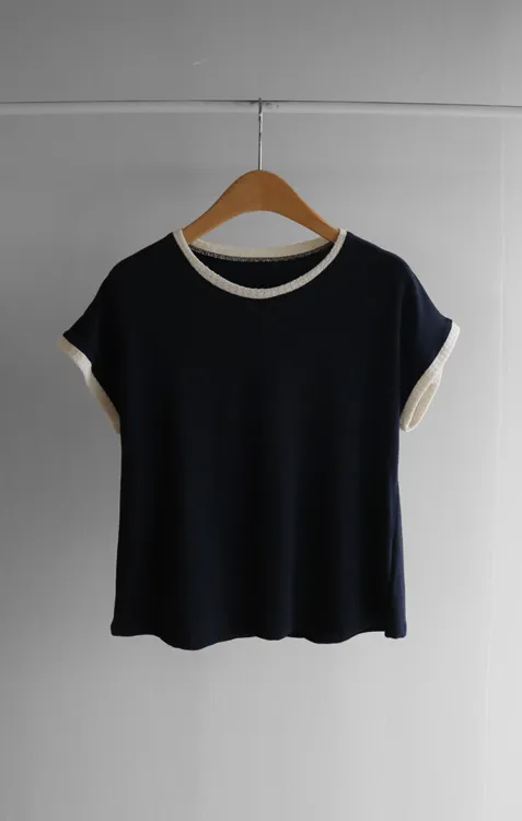 【花呢般的色彩線條】【40%莫代爾,柔軟有嚼勁的貼身感! ! 】【嚼勁十足~起司般的彈性】【短袖設計,展現精緻感】