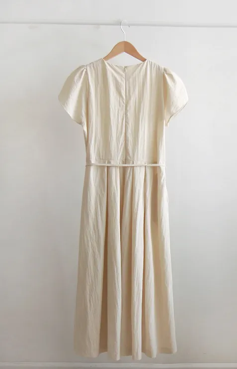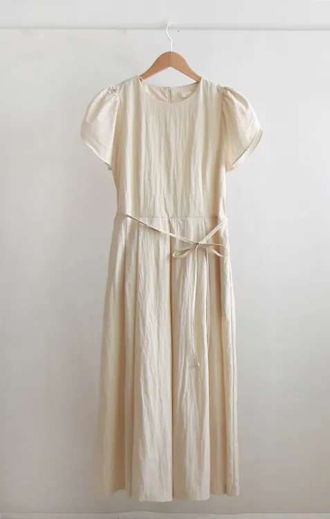 [棉80%、尼龍20%的涼爽布料] [後拉鍊結構] [繫腰帶,時尚合身:可拆卸] [柔和色彩的時尚連身裙] [適合夏季日常穿著] [優雅設計,優雅的袖子剪裁] [推薦作為涼爽邊緣的連身裙]