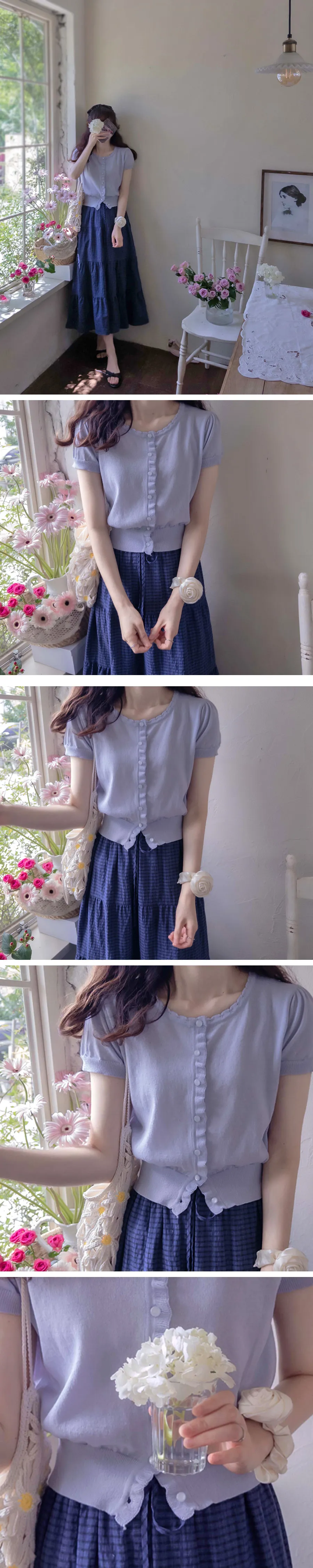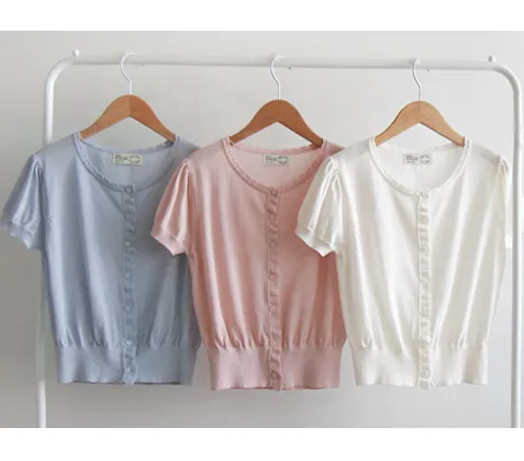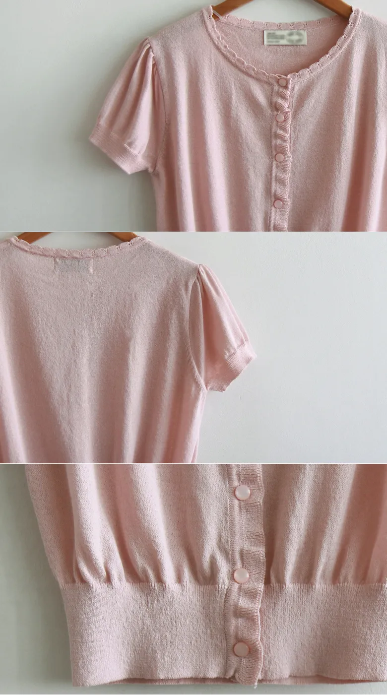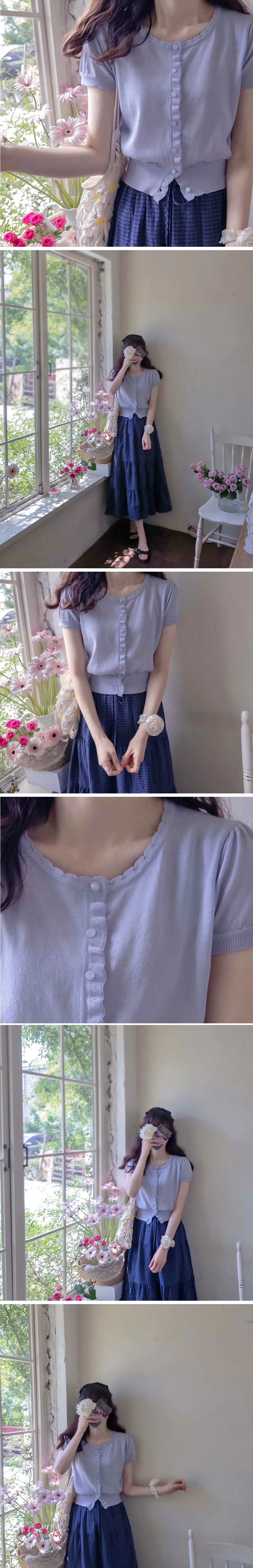 可愛波浪領口鈕扣襯邊柔軟舒適開衫