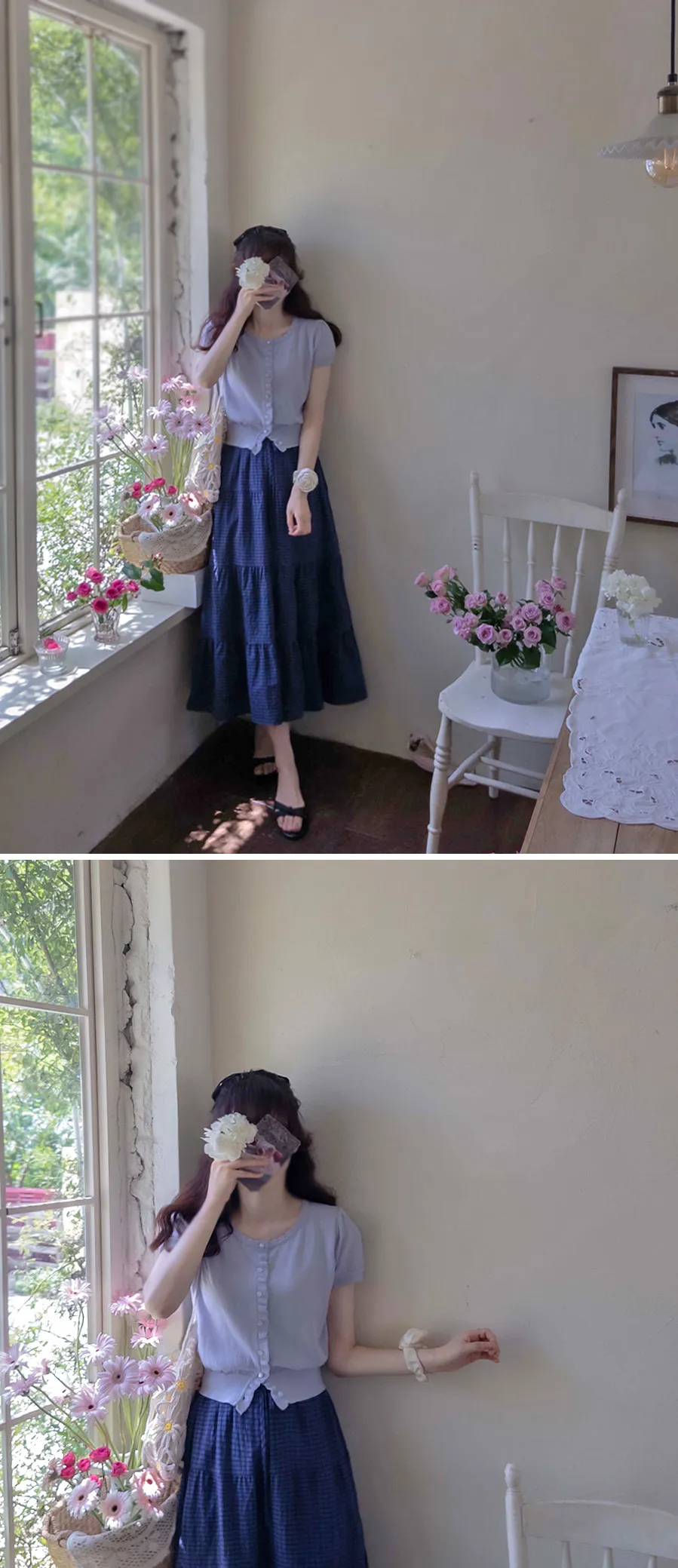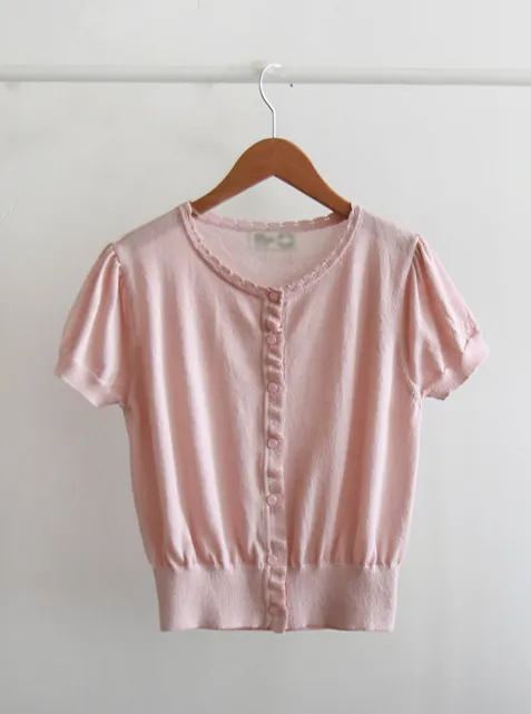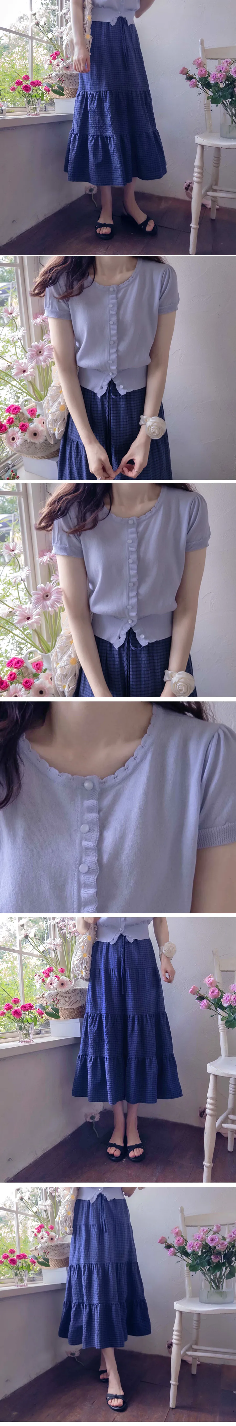可愛波浪領口鈕扣襯邊柔軟舒適開衫