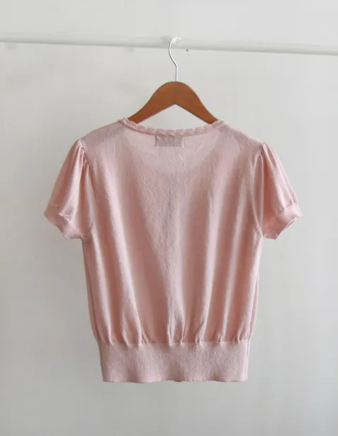 【可愛的波浪領口是亮點】【帶有紐帶和細膩縫線的針織衫增添可愛感】【非常適合穿出明亮的感覺】【舒適優雅的夏季清涼針織衫】