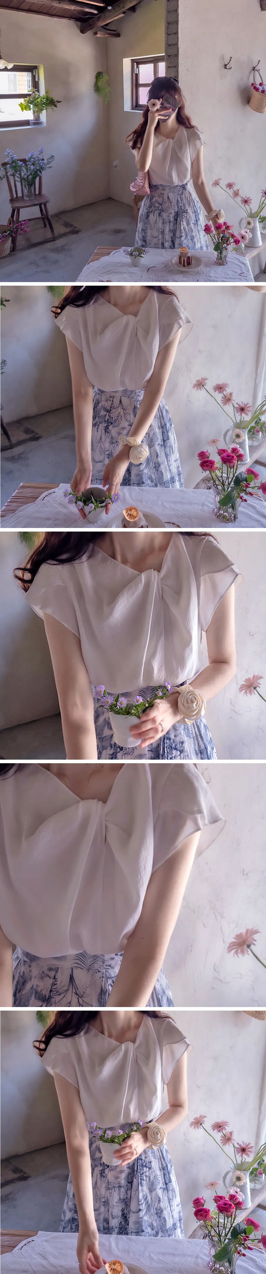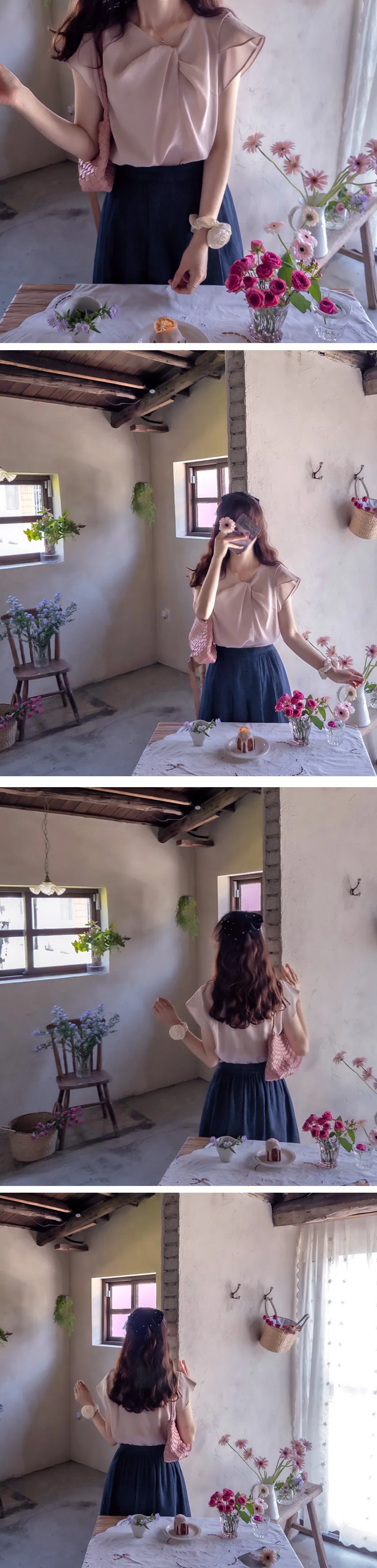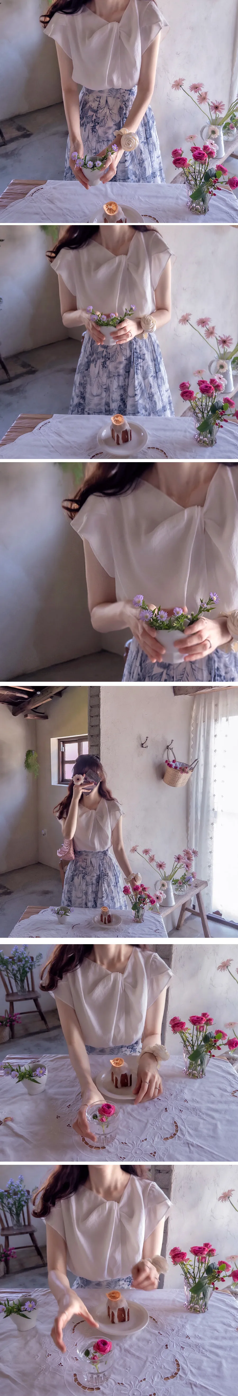 明亮精緻領口扭結設計柔軟輕盈上衣