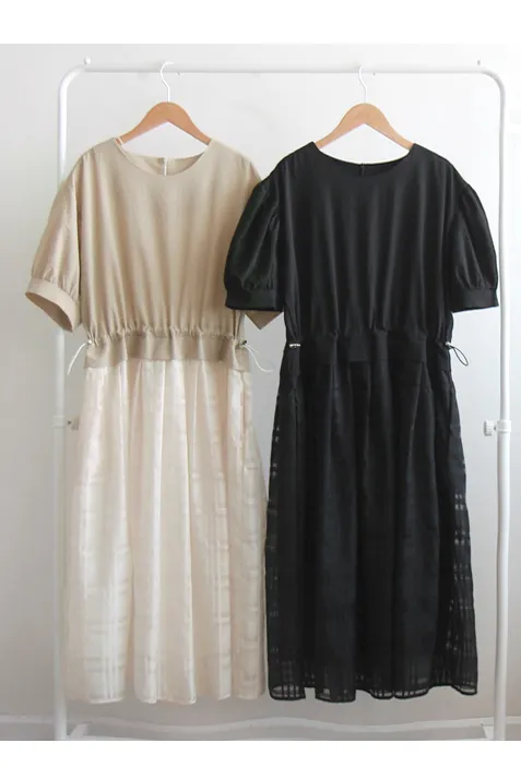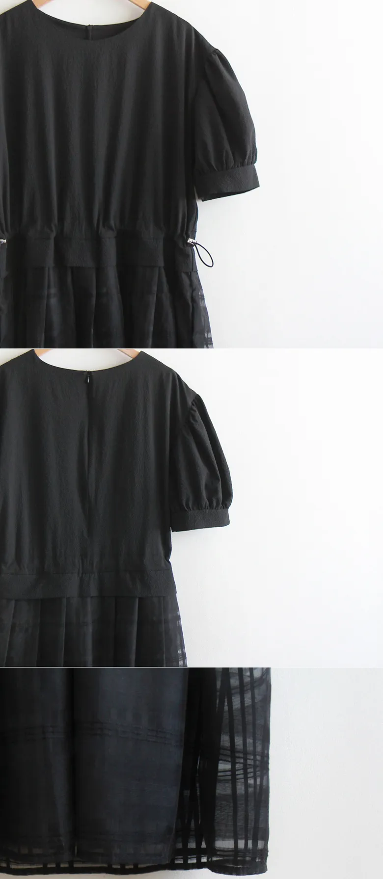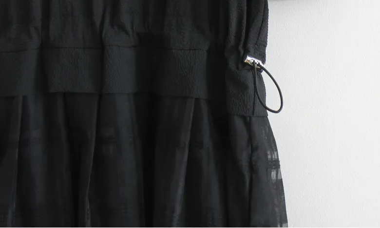 夏日獨特透膚格紋裙擺抽繩收腰連身裙