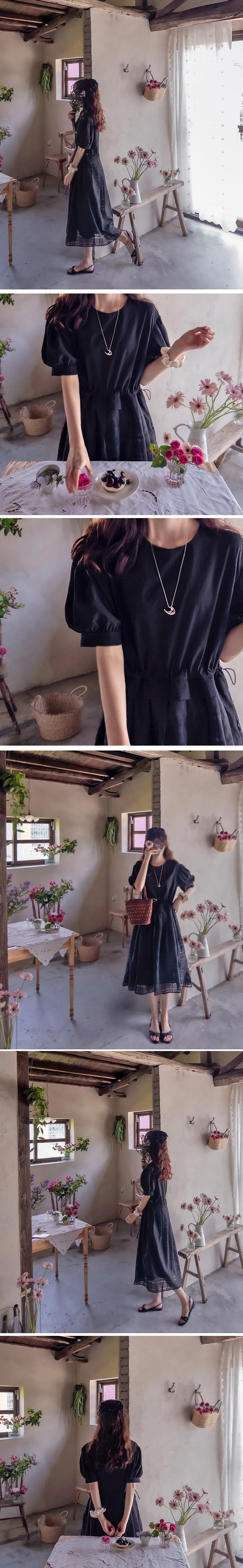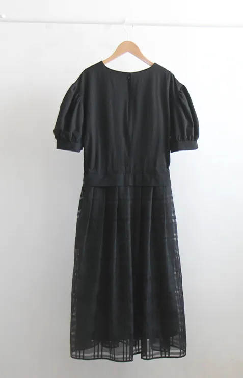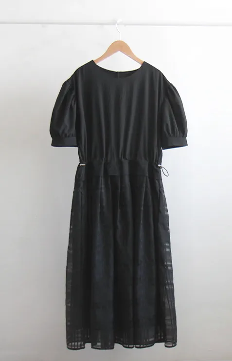 【後拉鍊結構】【僅裙子內襯:聚酯纖維】【腰部採用綁帶調節,展現完美曲線】【夏季專用面料,穿著涼爽】【裙擺部分採用透視格紋,展現幹練氛圍】【作為夏季優雅修身連身裙】