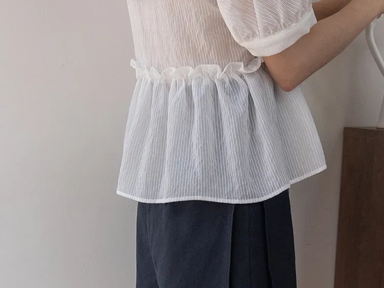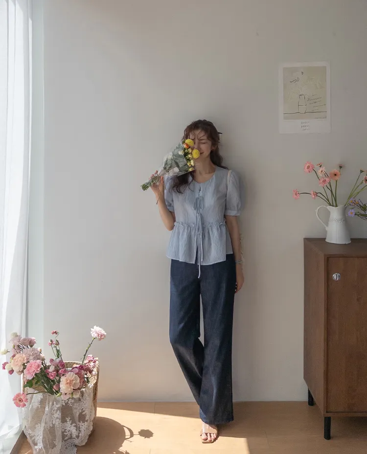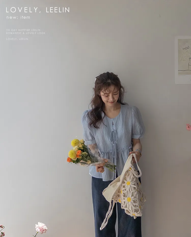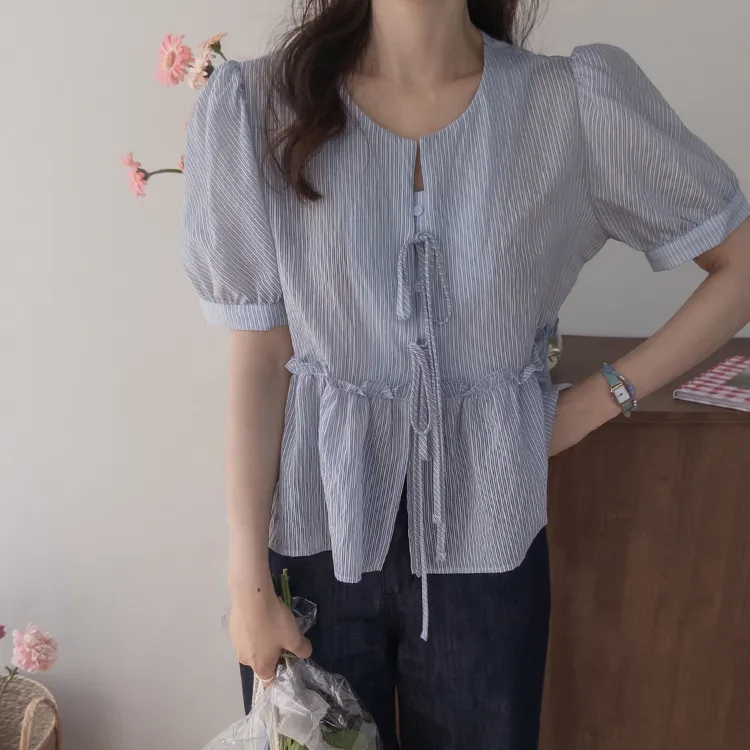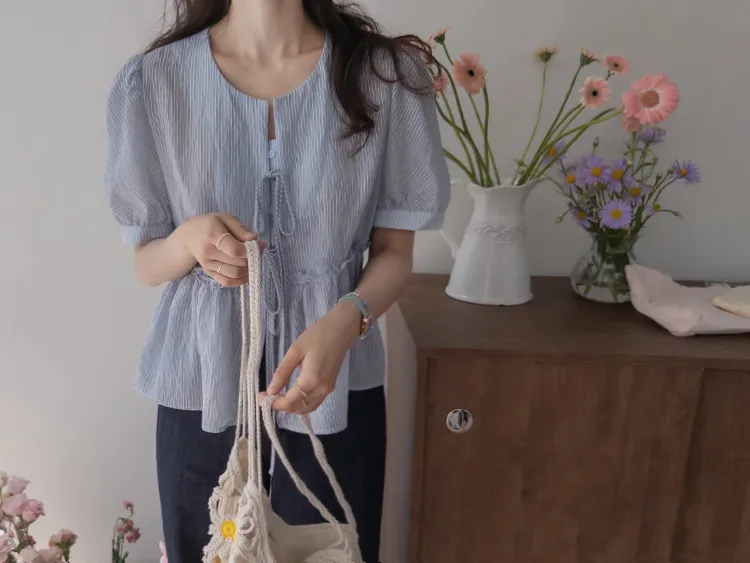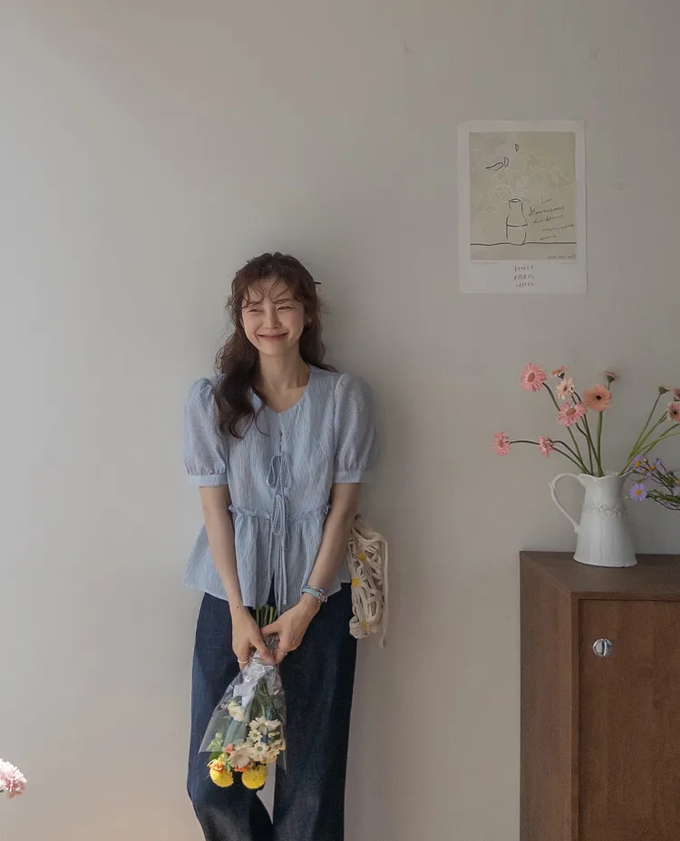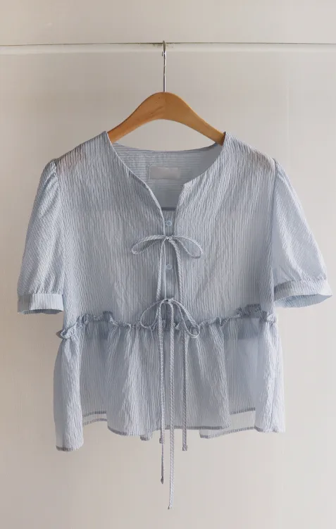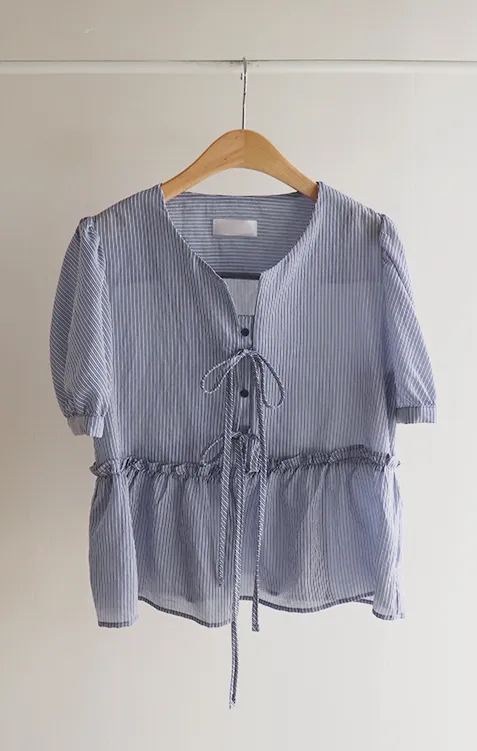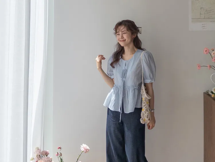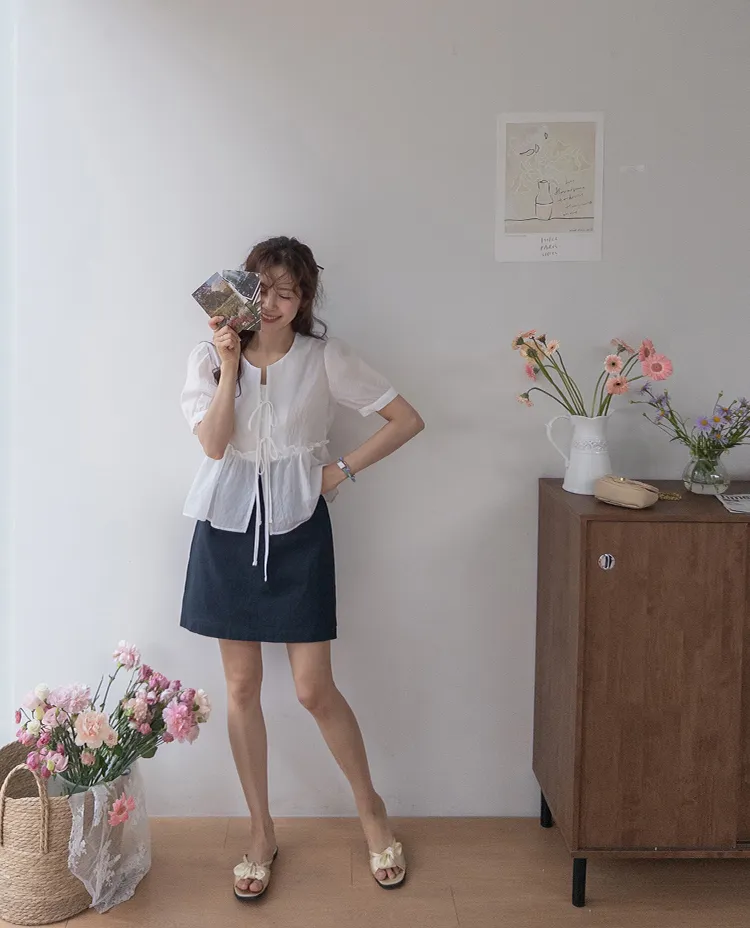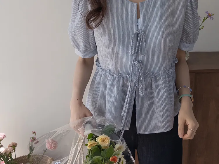 可愛綁帶點綴腰線褶邊穿搭上衣