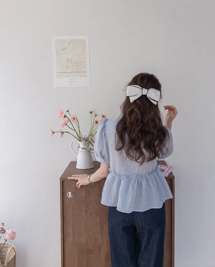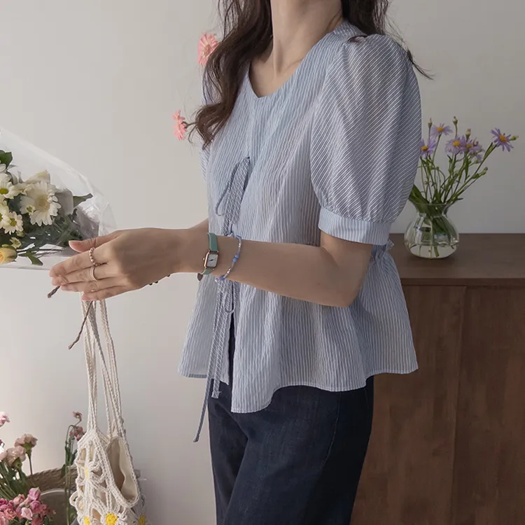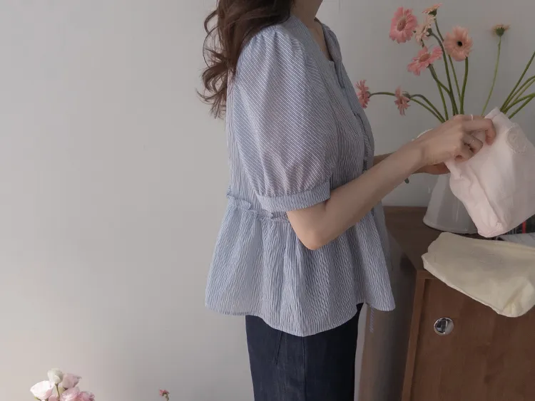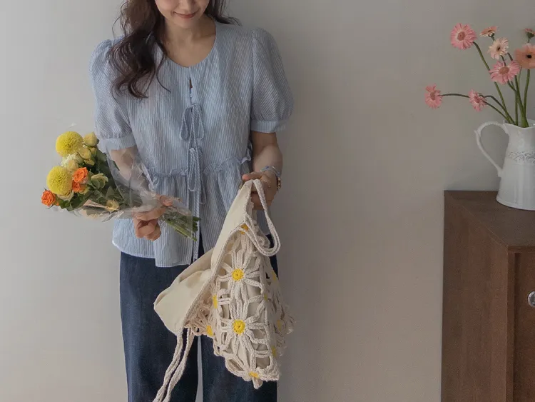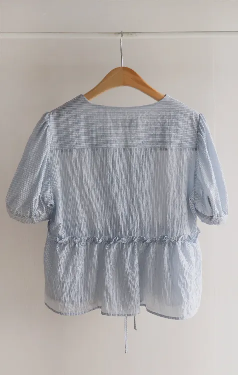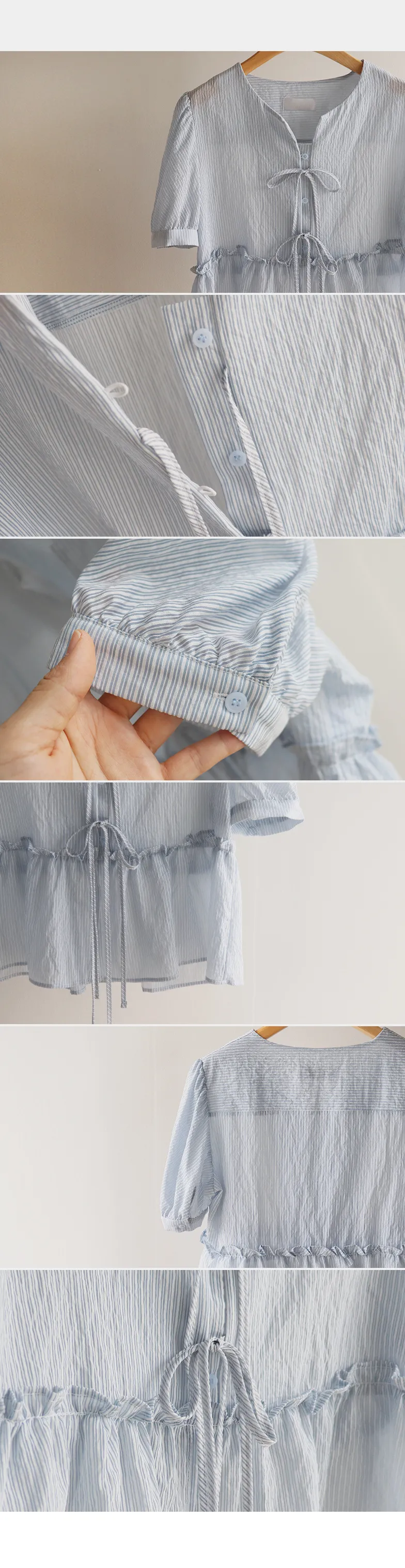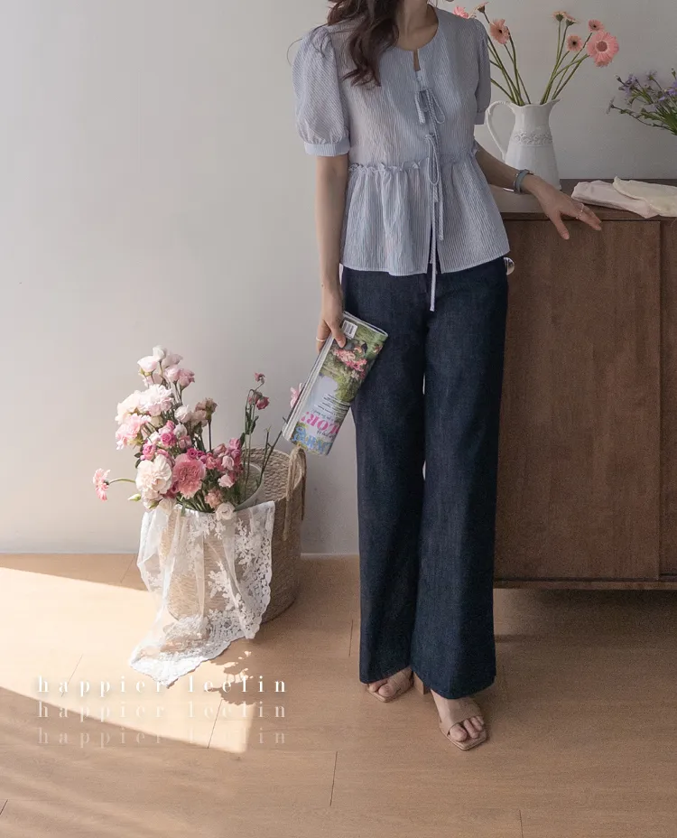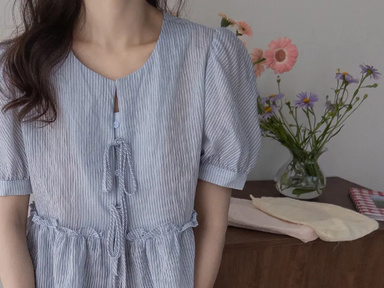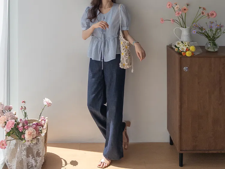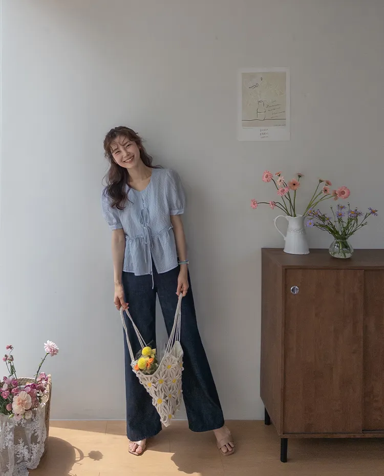 可愛綁帶點綴腰線褶邊穿搭上衣