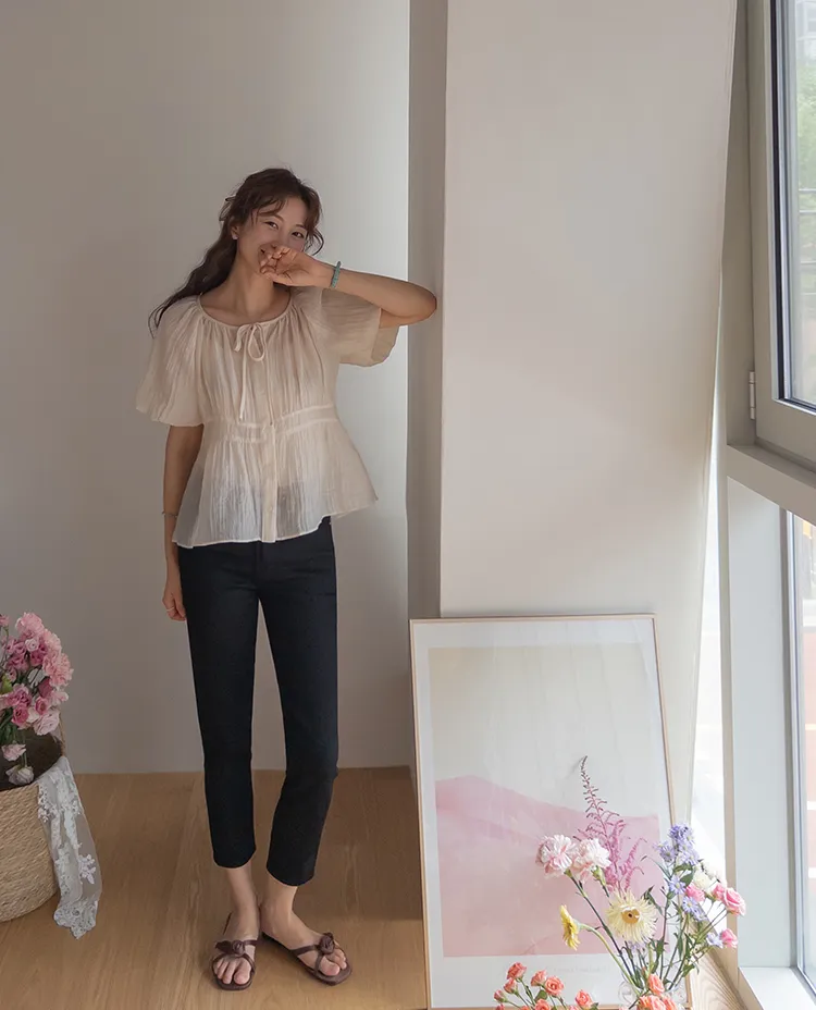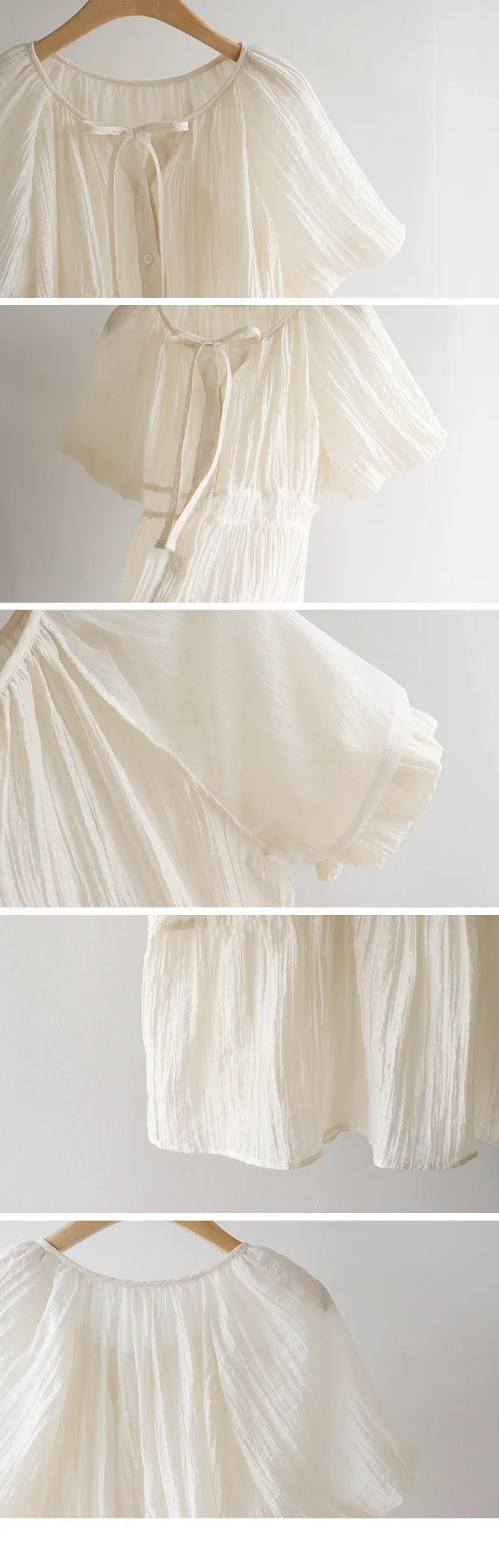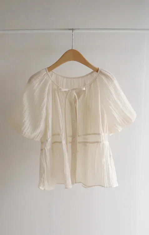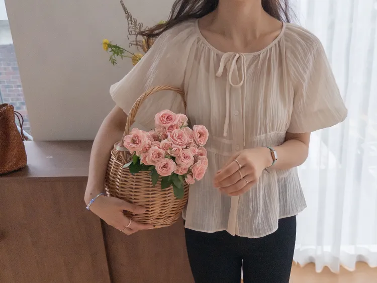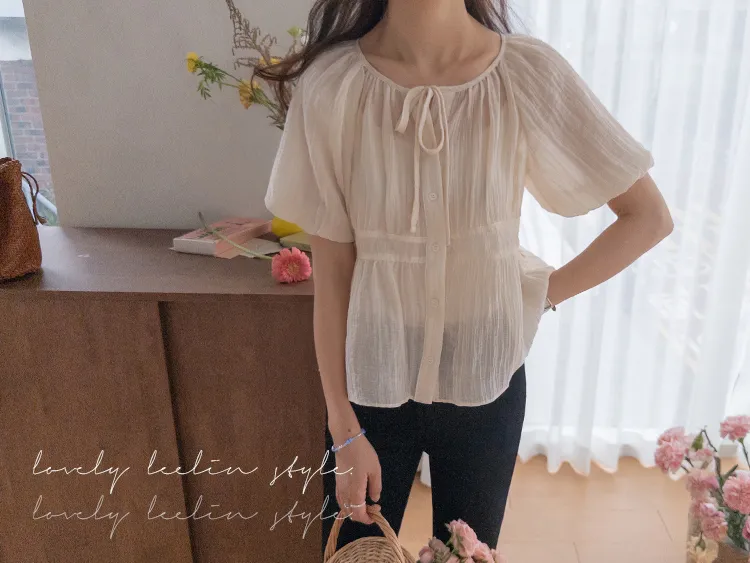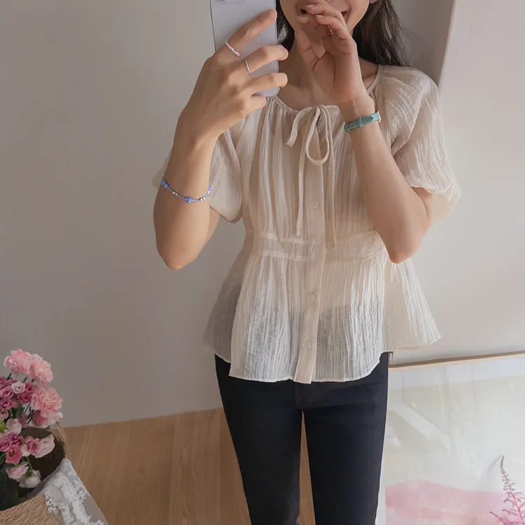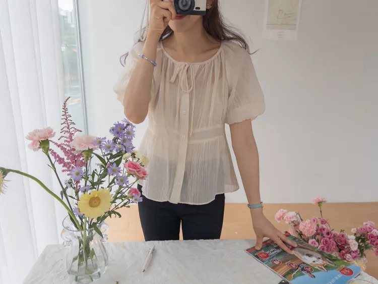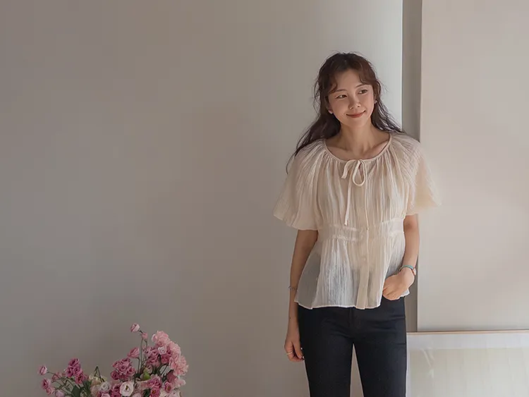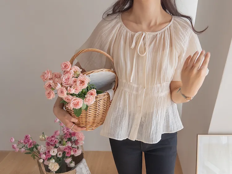 柔美領口綁帶傘擺廓形皺摺排扣上衣 現貨灰