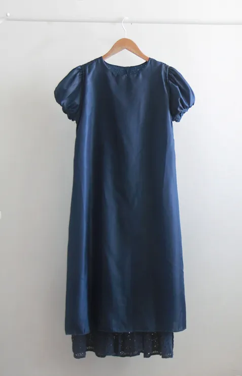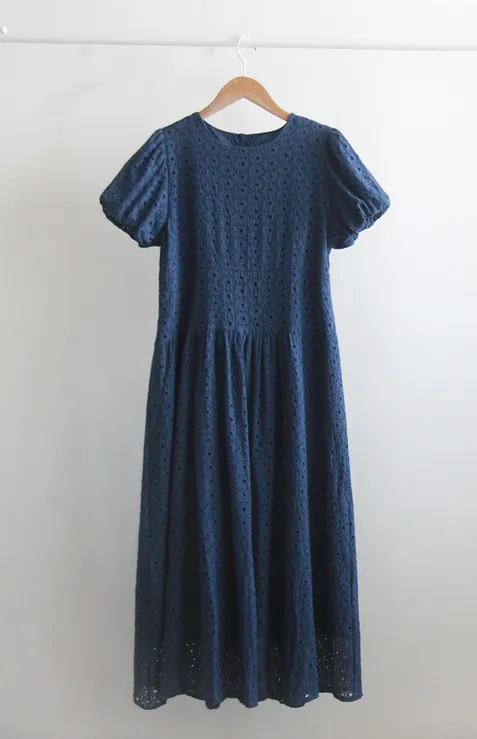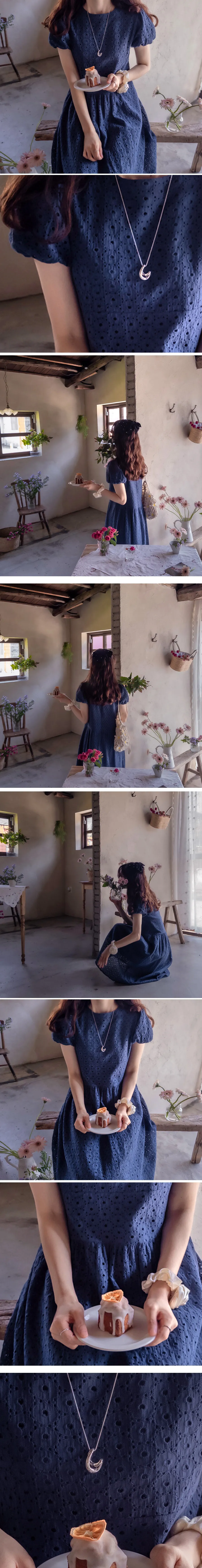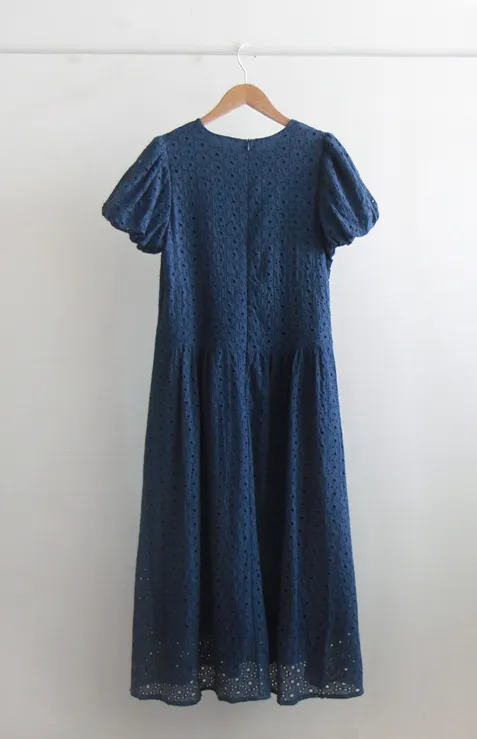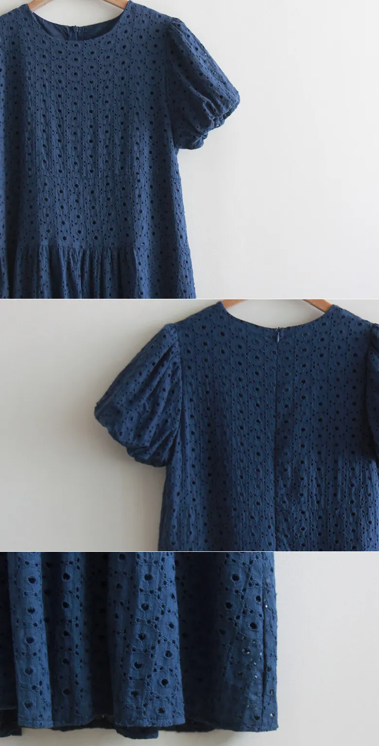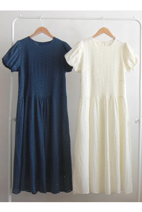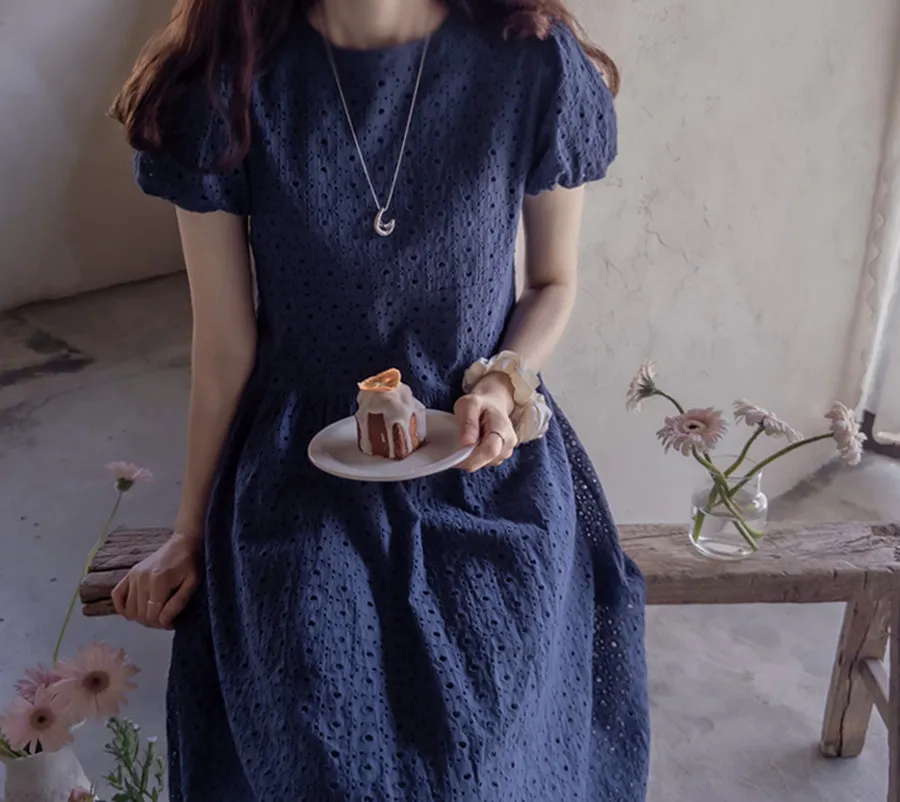 優雅可愛鏤空刺繡泡泡袖連身裙