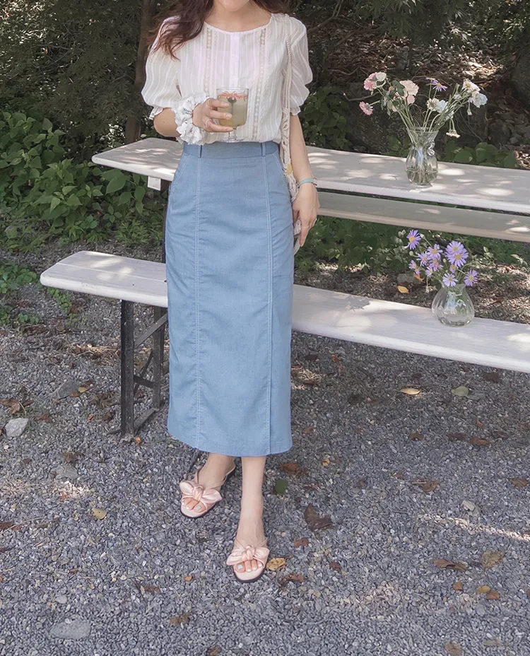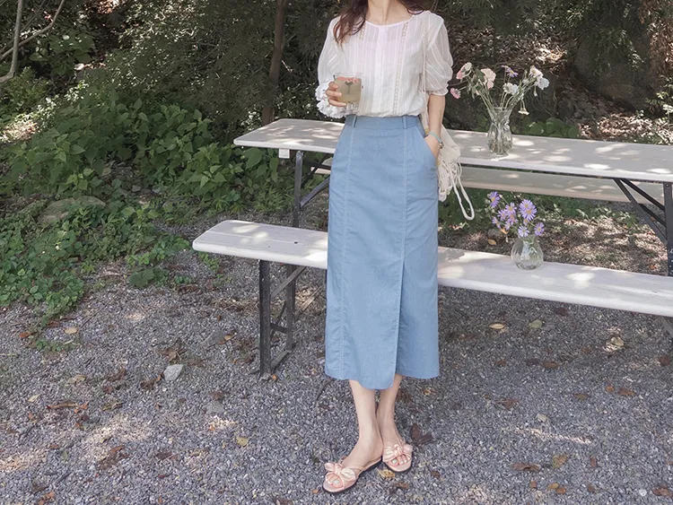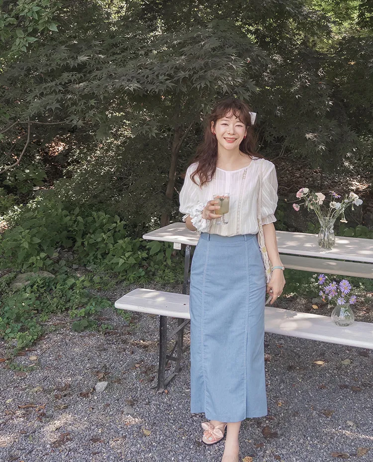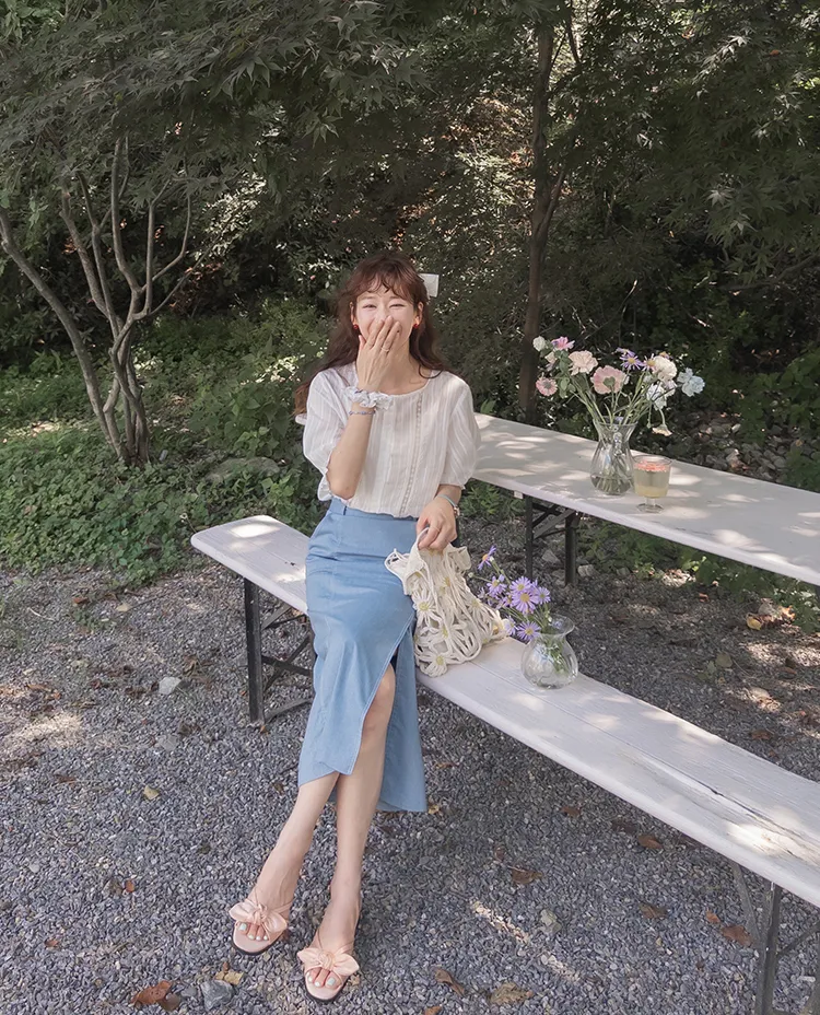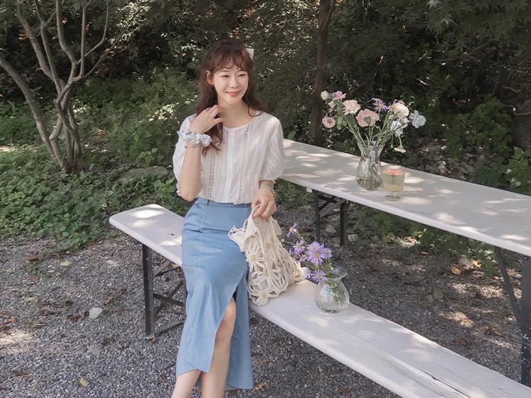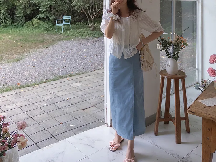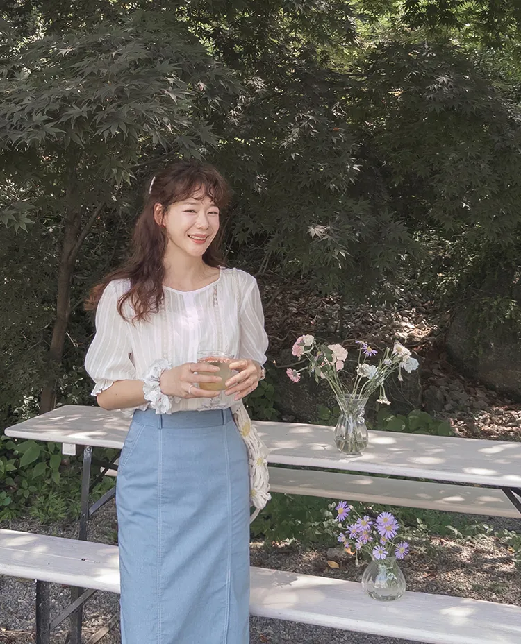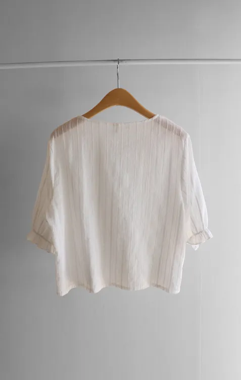 【精緻的蕾絲與浪漫的刺繡細節♥】【展現纖細身形的透膚排扣上衣】【輕盈清爽的棉質布料✿】【袖子修飾手臂線條~】