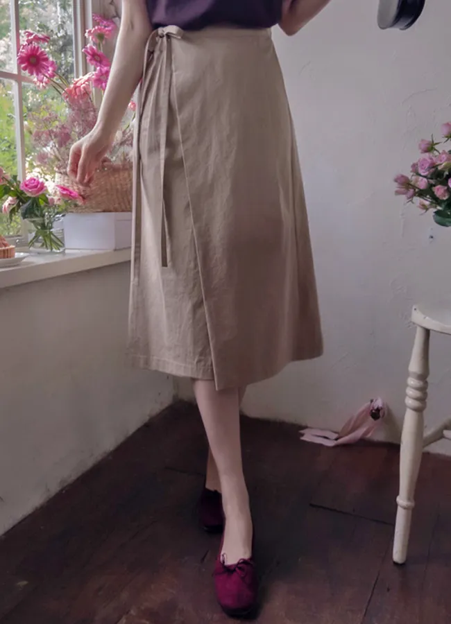 優雅腰側裹身綁帶內扣可調中長裙