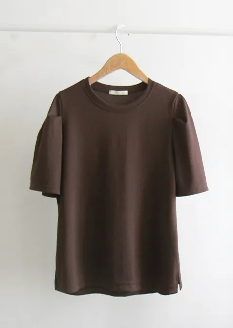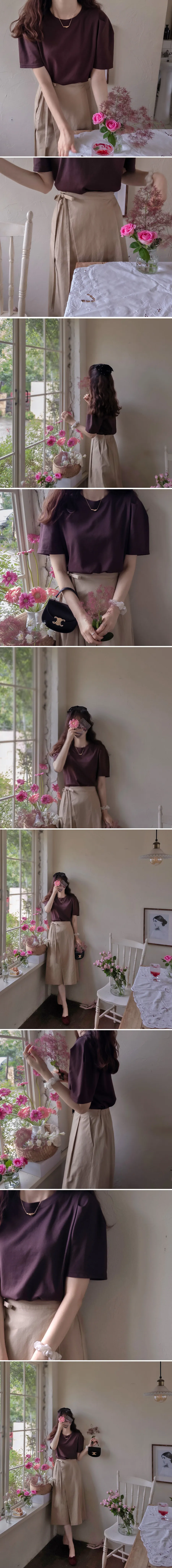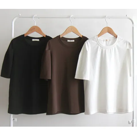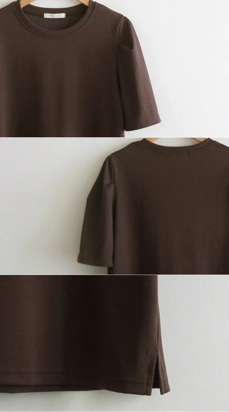 【秋季新品】【採用5%氨綸材質,舒適貼身的優質面料,適合初秋穿著】【袖子採用褶襉設計,增添蓬鬆感,散發獨特魅力】【下擺時尚線條】【色彩成熟,彰顯個性的T卹】【舒適秋季穿著】