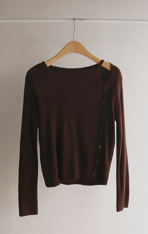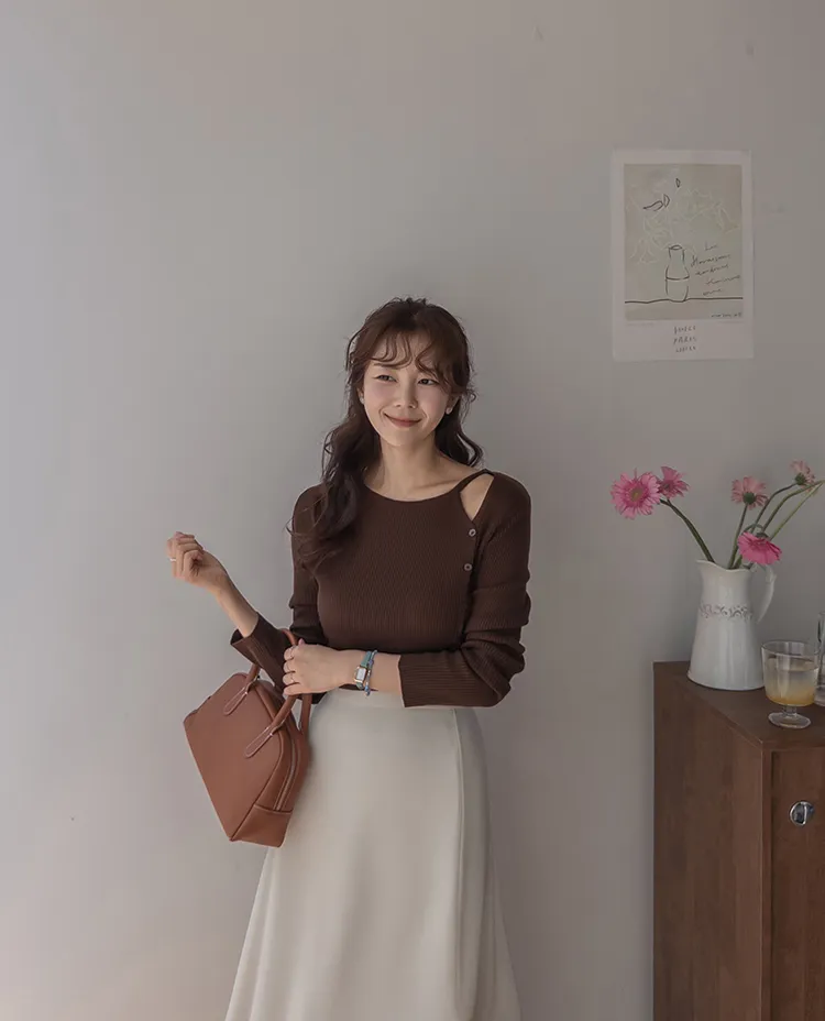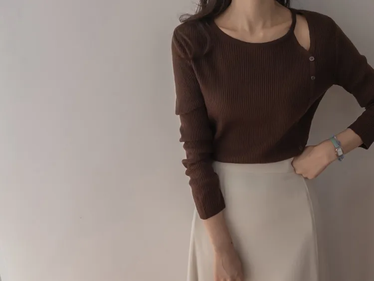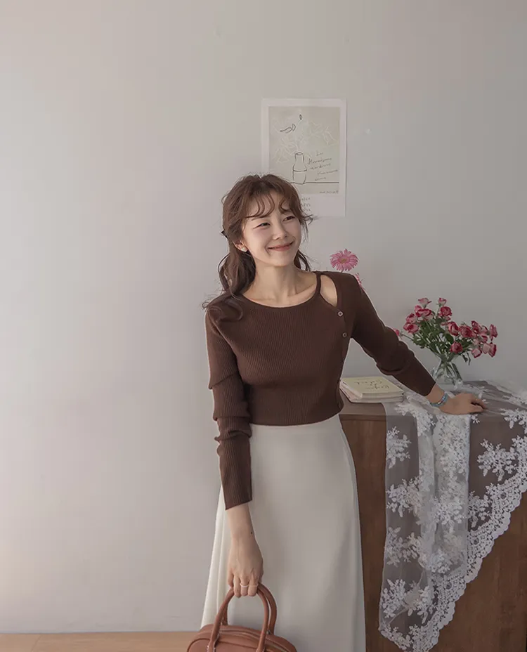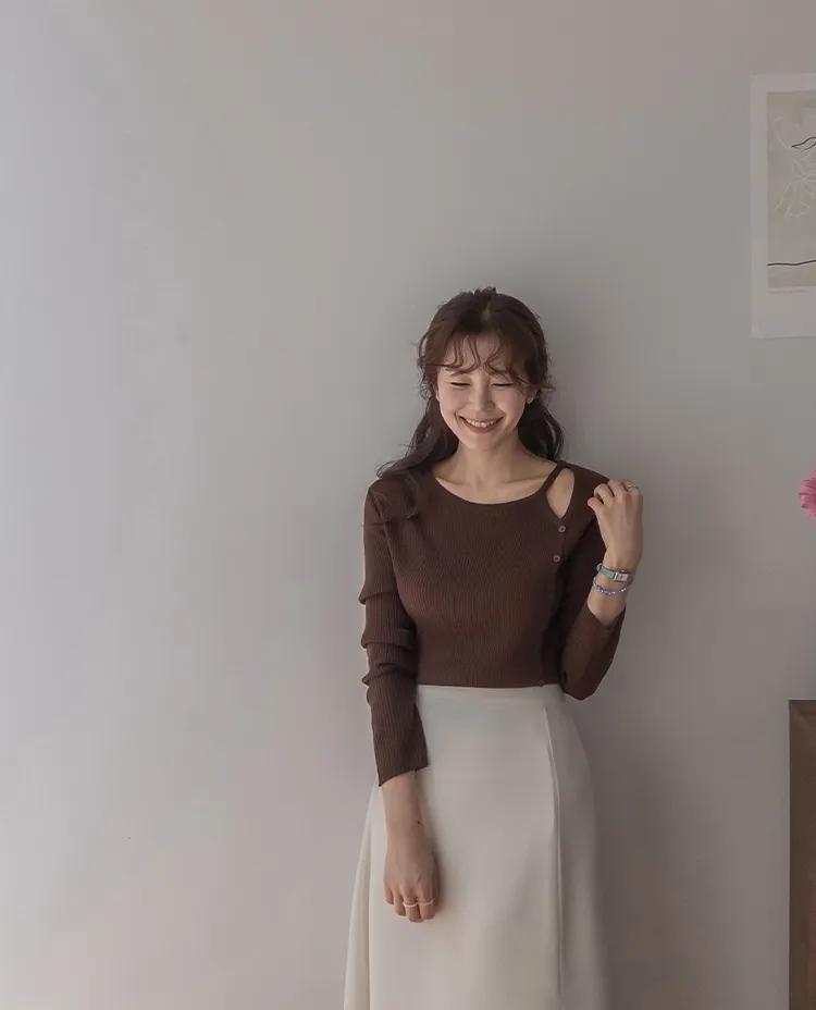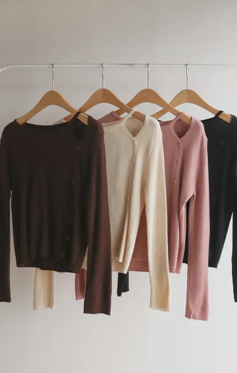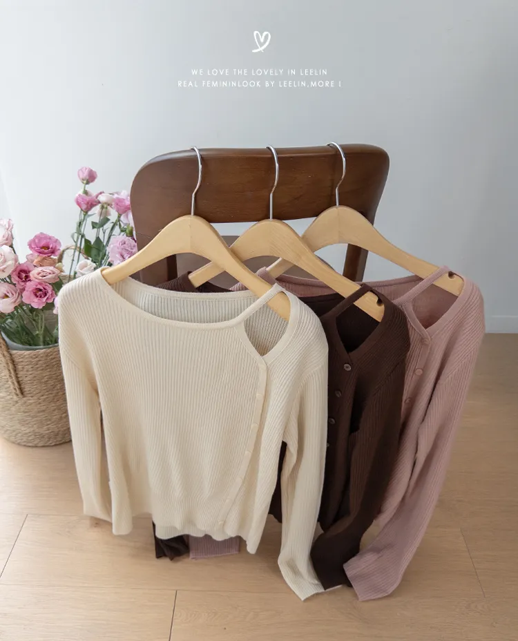 【修身氣質領口設計♥】 【側紐扣,自然魅力】 【修身~柔和垂直羅紋紋理】 【寬鬆版型穿著舒適~】