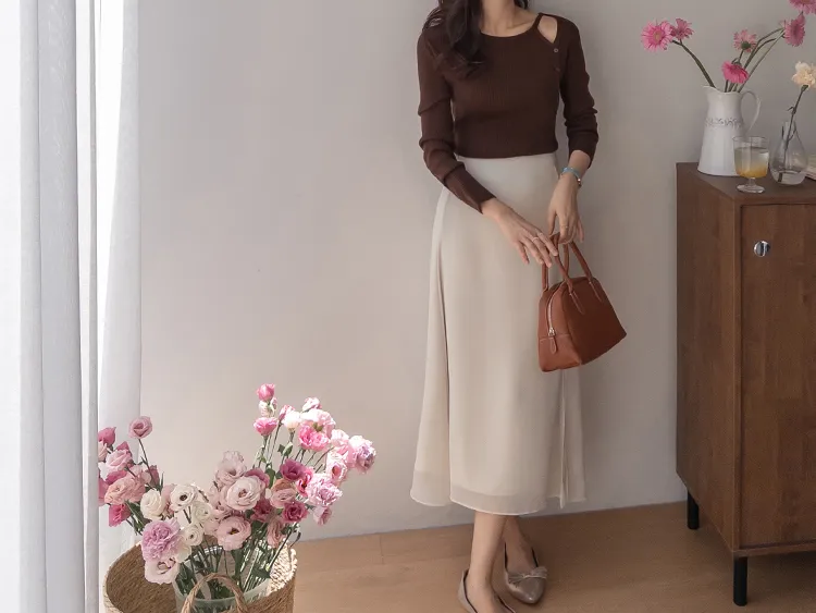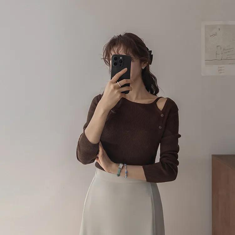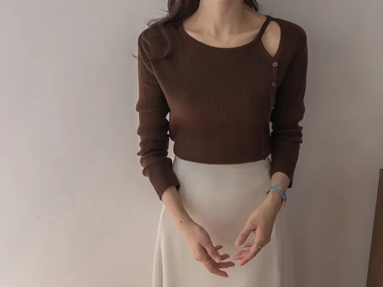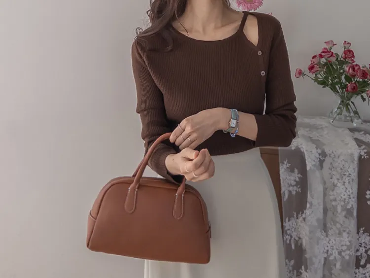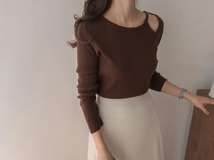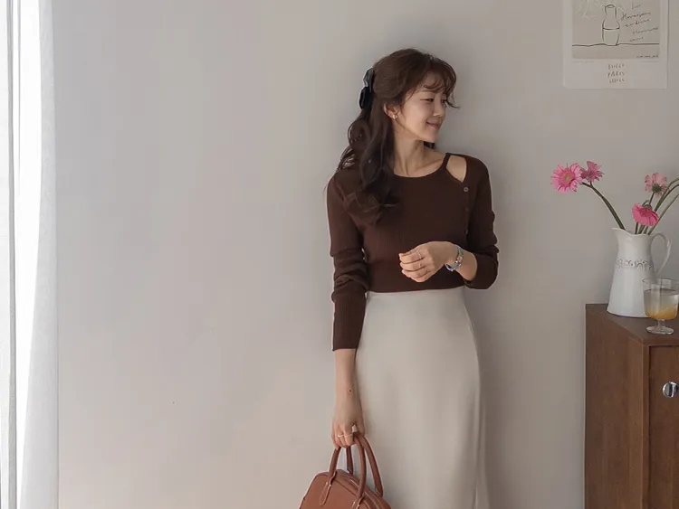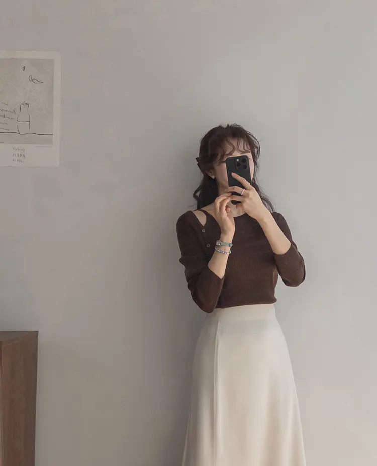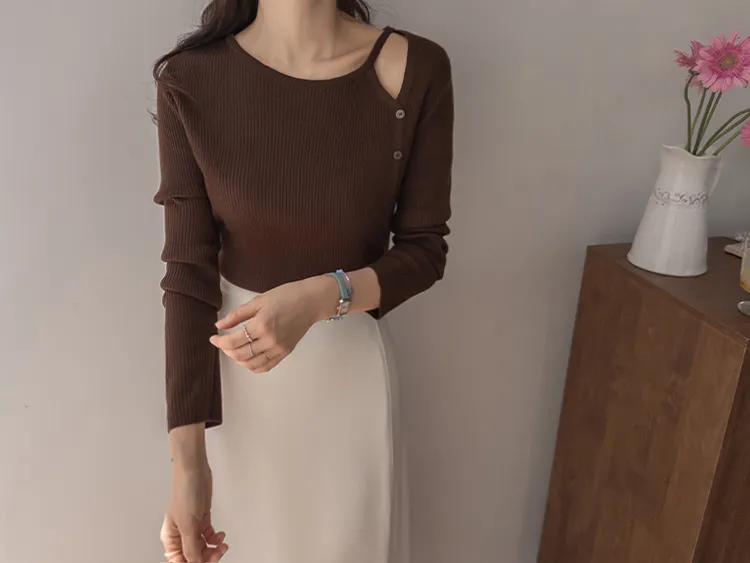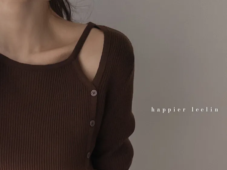 【修身氣質領口設計♥】 【側紐扣,自然魅力】 【修身~柔和垂直羅紋紋理】 【寬鬆版型穿著舒適~】