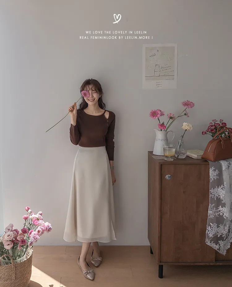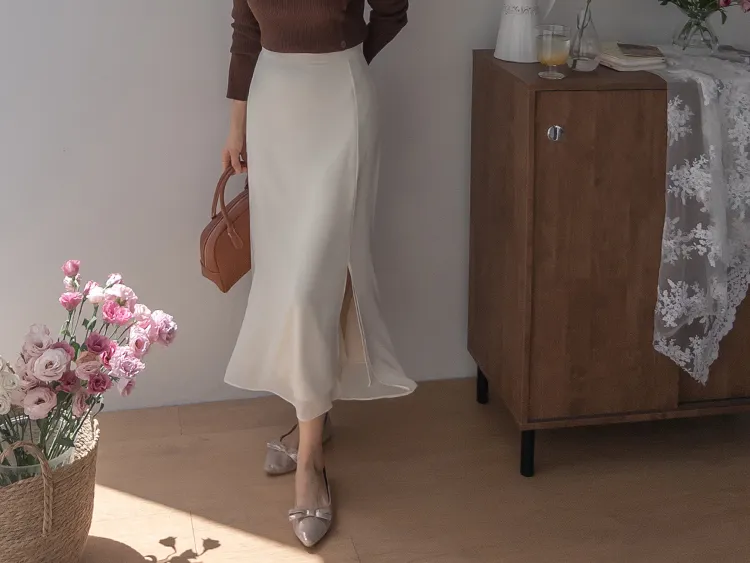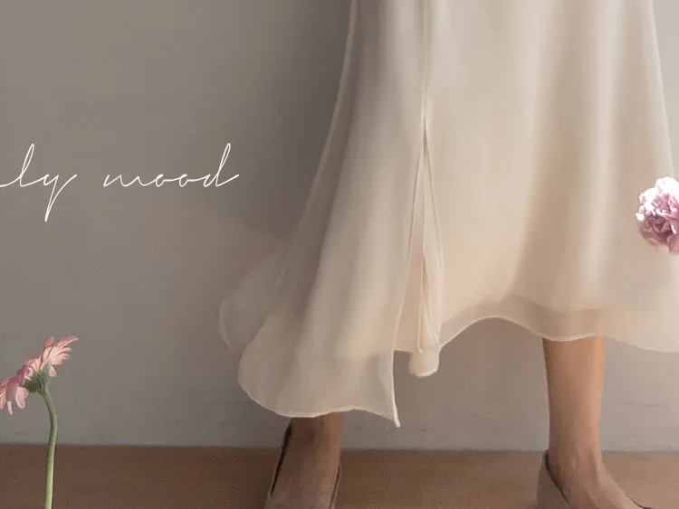 柔美輕柔飄逸側開衩雙層雪紡中長裙
