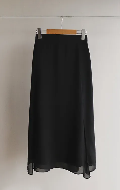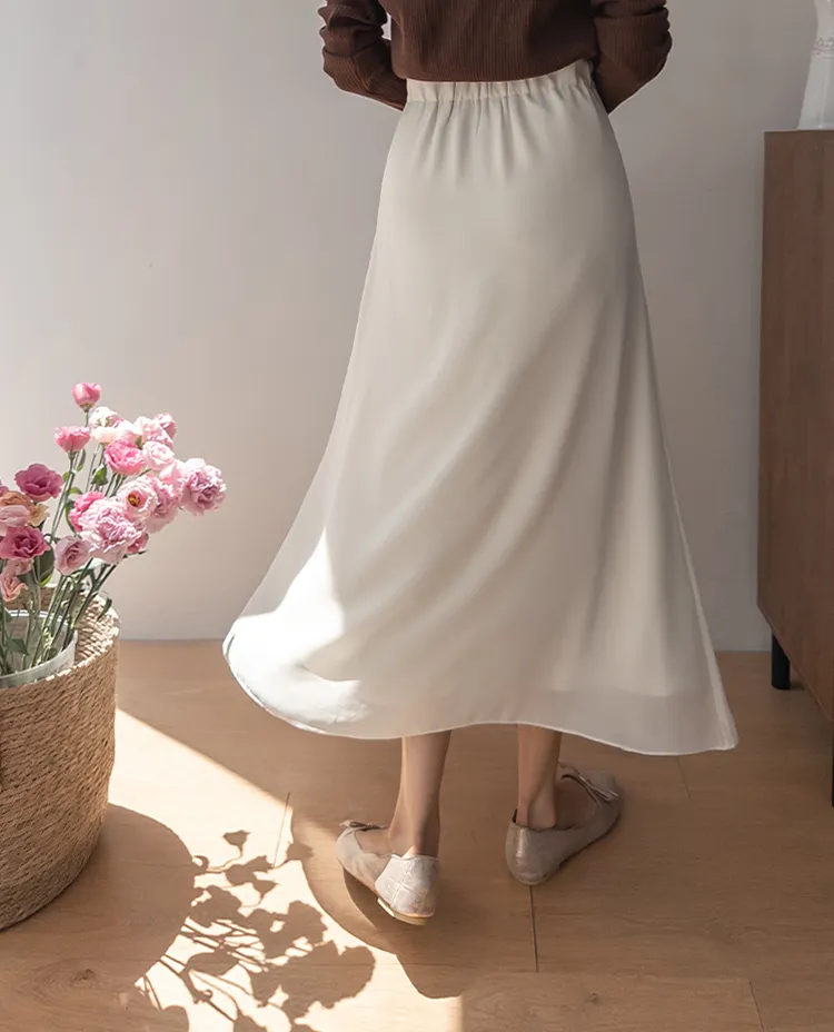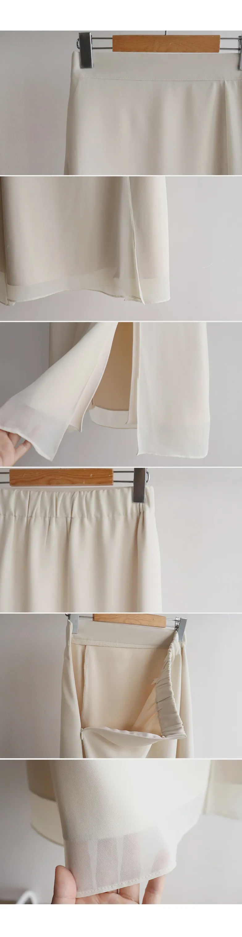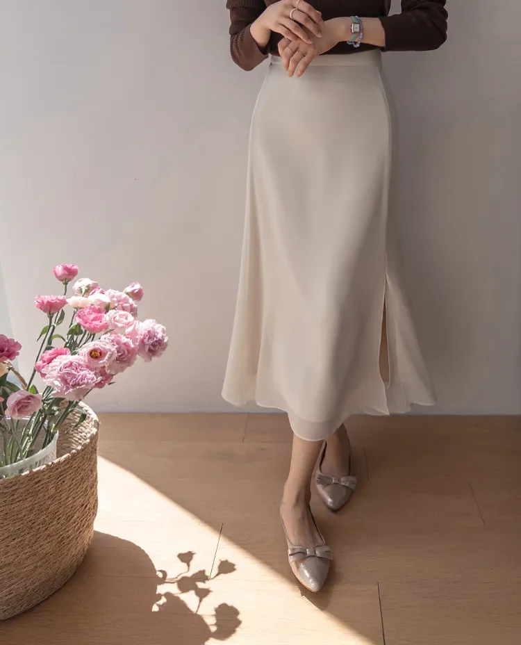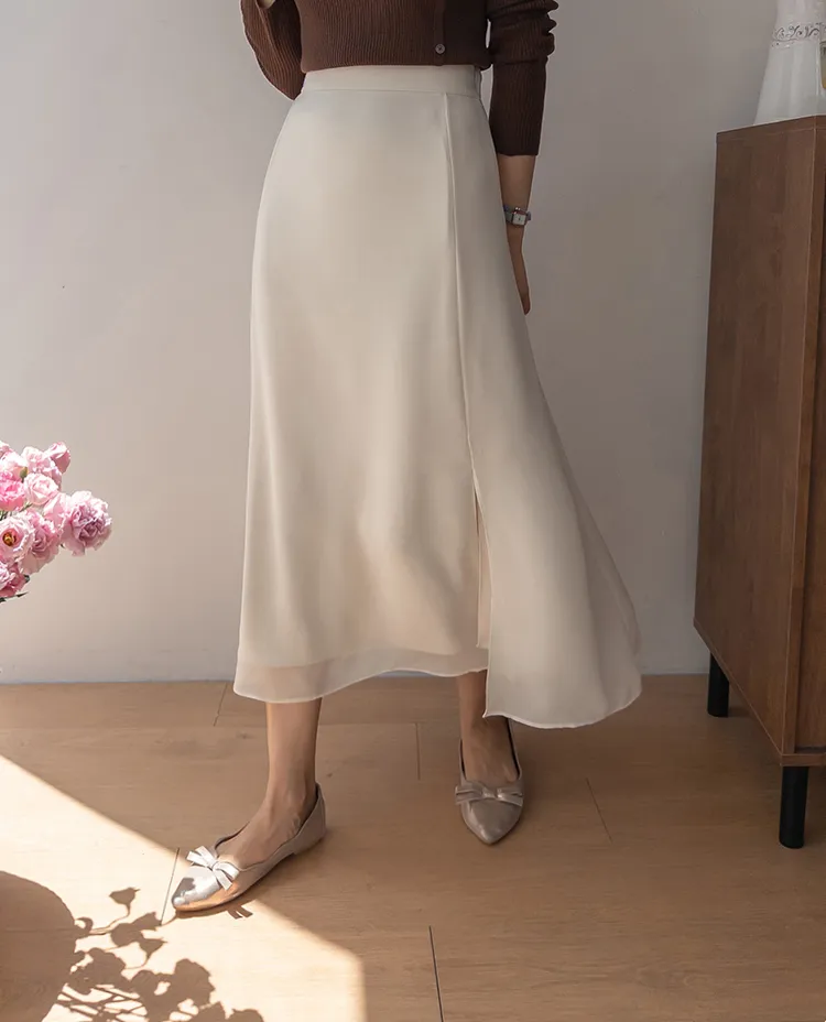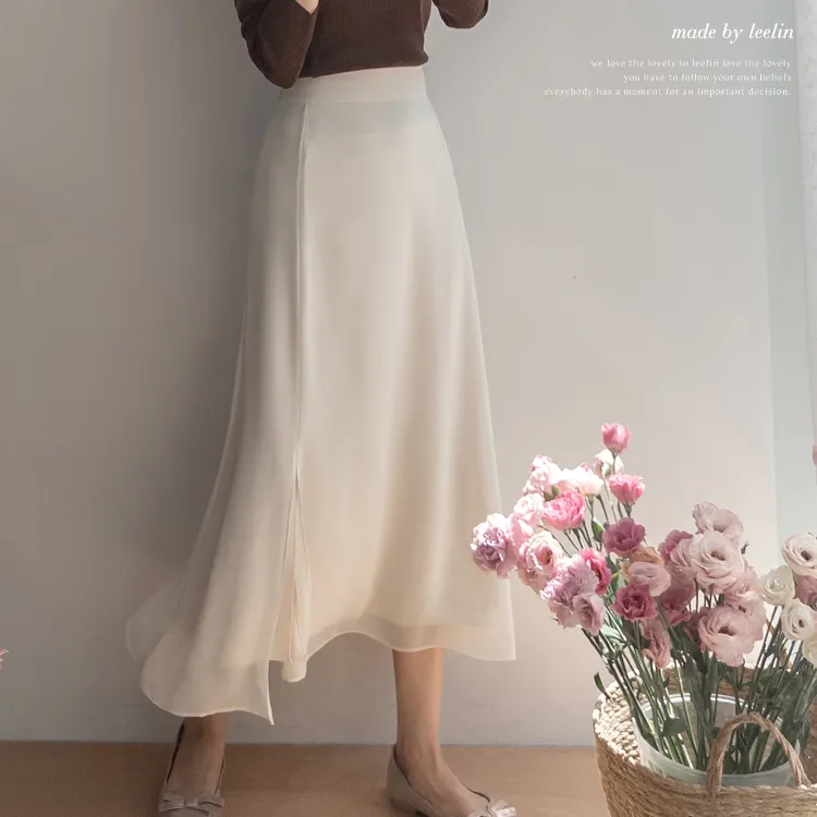 柔美輕柔飄逸側開衩雙層雪紡中長裙