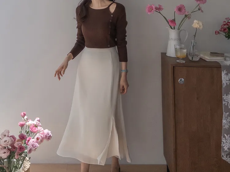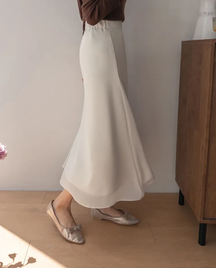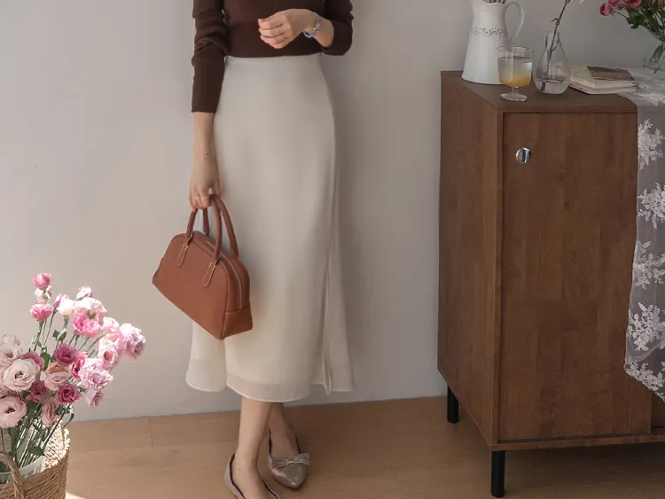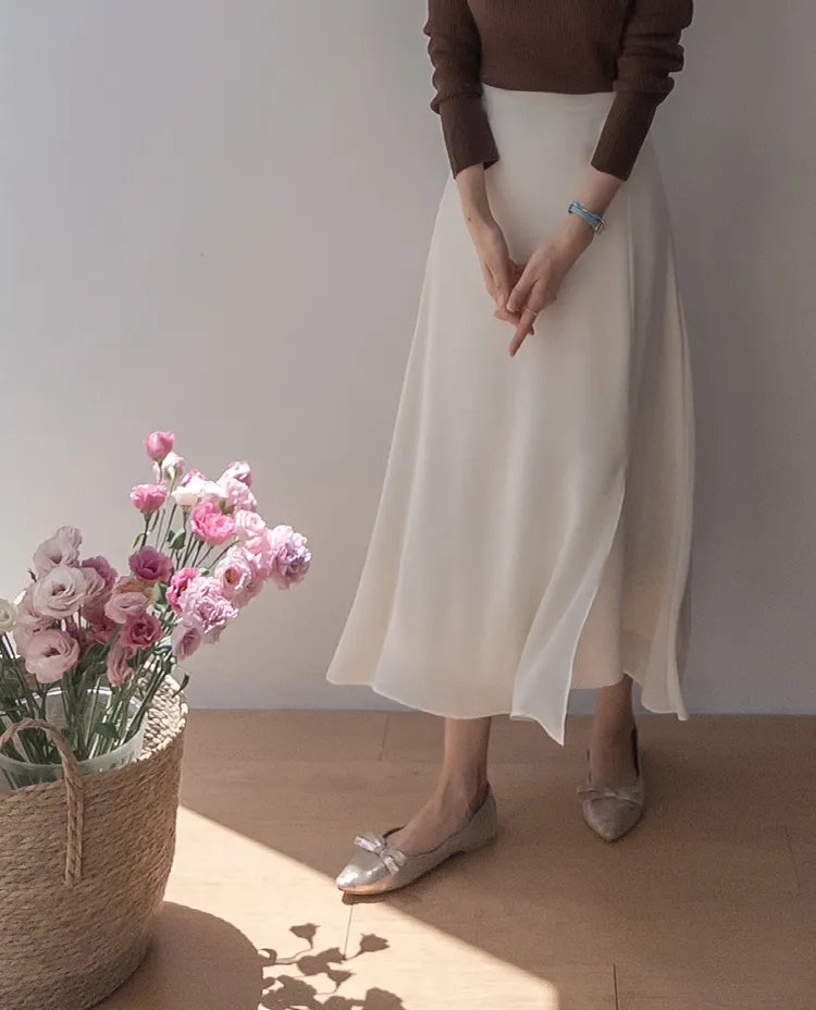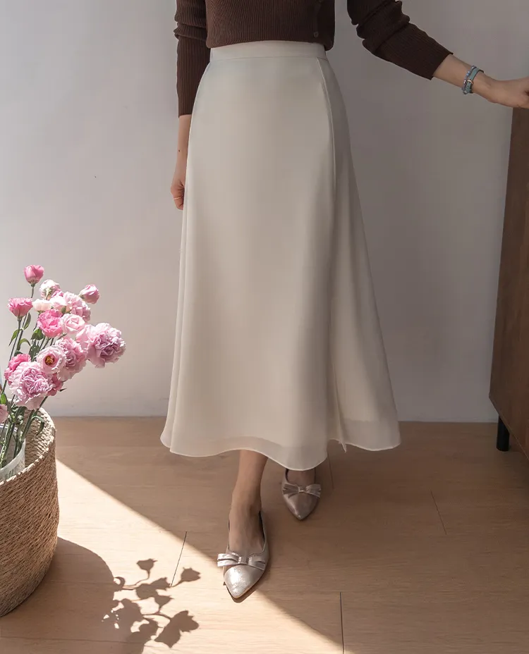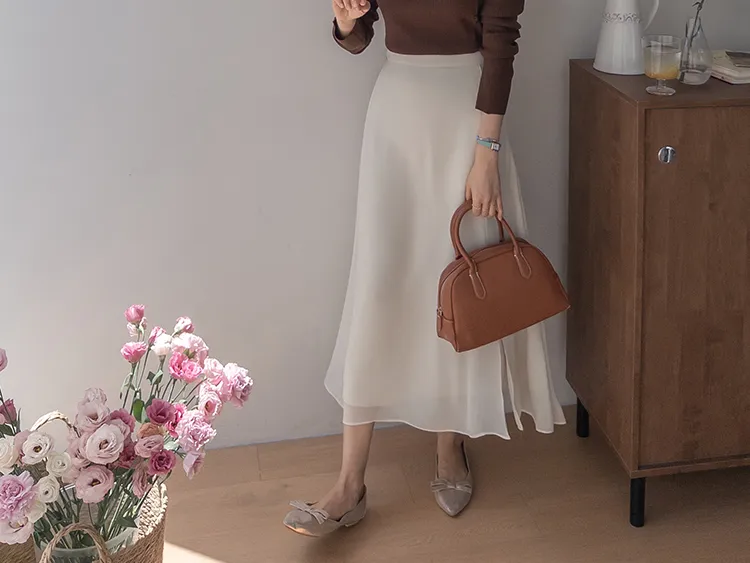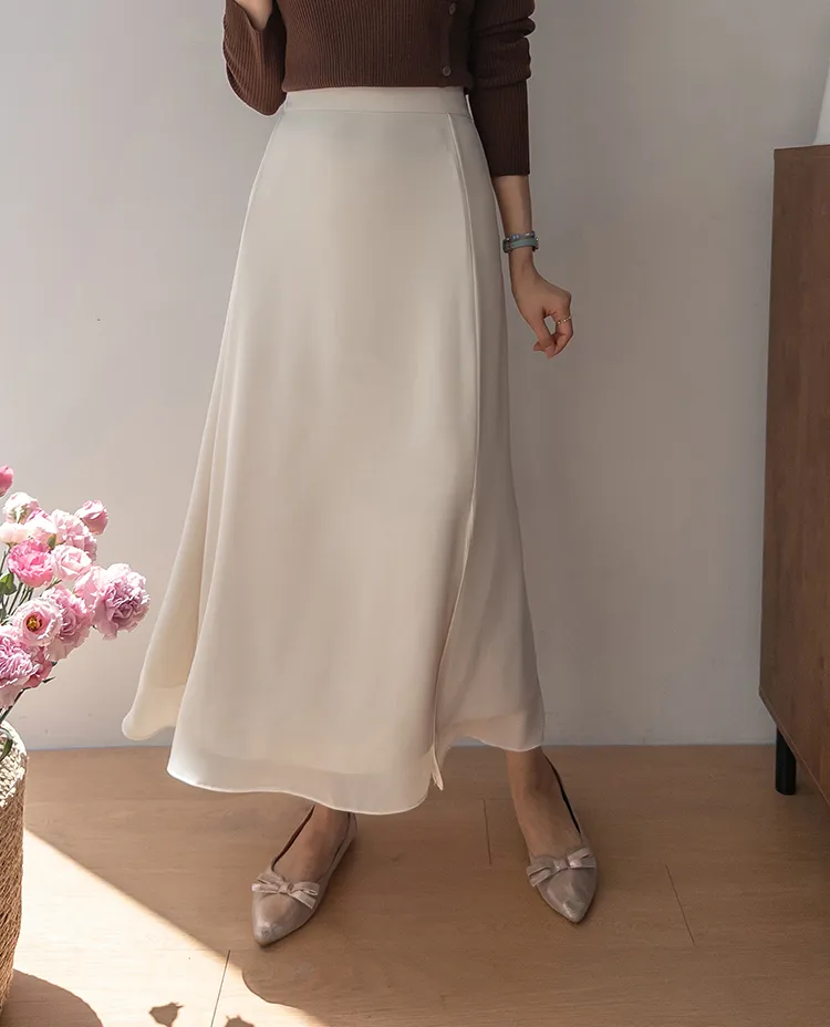 柔美輕柔飄逸側開衩雙層雪紡中長裙
