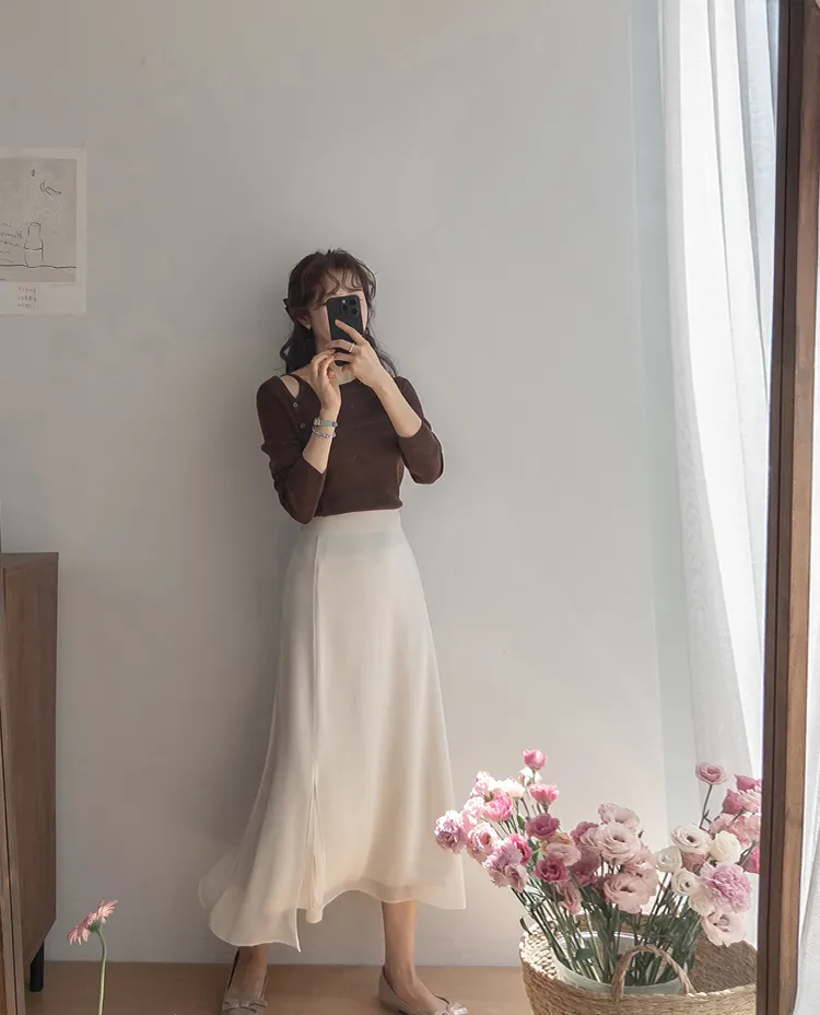 【雙層雪紡裙♥】【輕柔垂墜的飄逸廓形,更添女性魅力! 】【裙長,完美遮蓋腿部線條】【側開衩,展現精緻氣質! 】