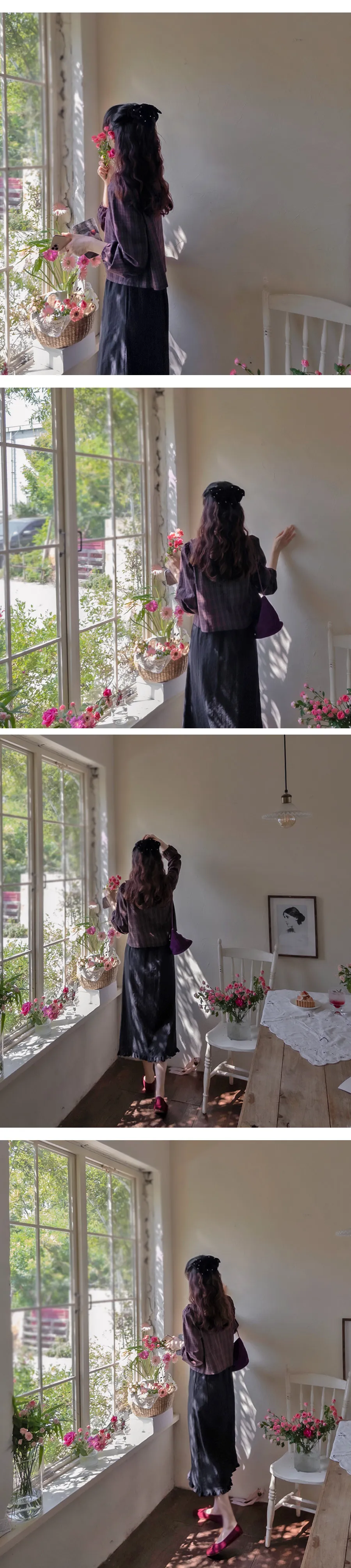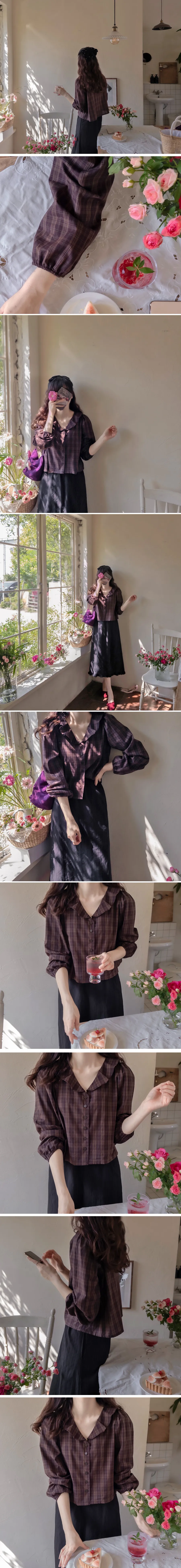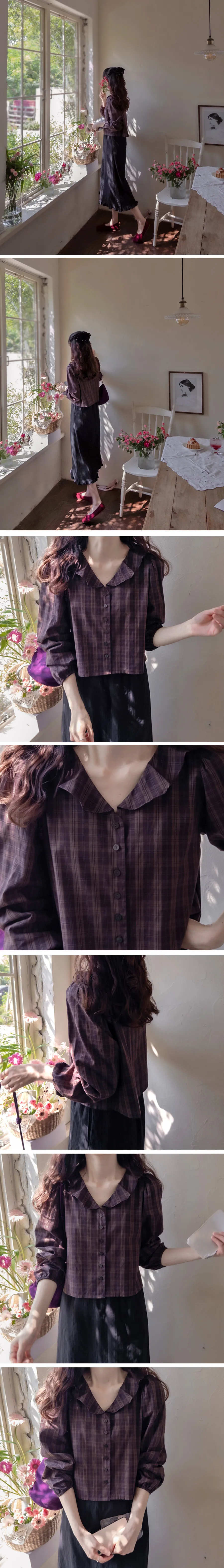 季節色彩感精緻領口剪裁格紋排扣上衣