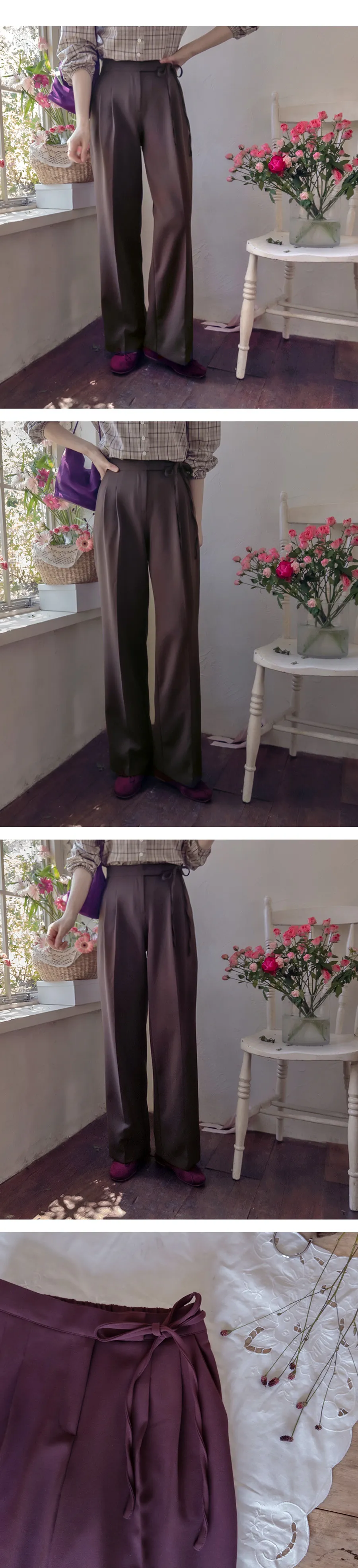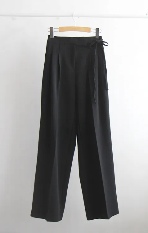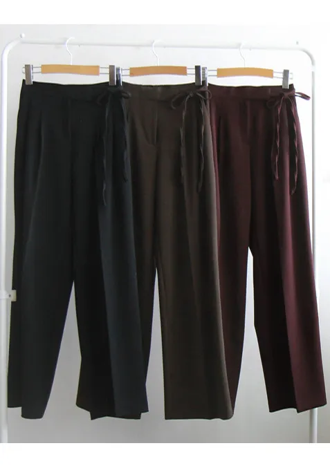 [秋季新品] [後腰帶] [柔軟有彈性的面料] [充滿秋季氣息的褲子,腰部綁帶蝴蝶結設計更顯時尚] [雙褶設計打造貼身效果] [推薦這款秋季流行色的褲子,適合即將到來的季節的日常穿著]